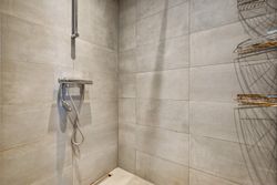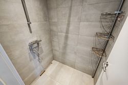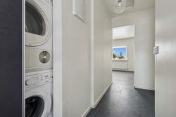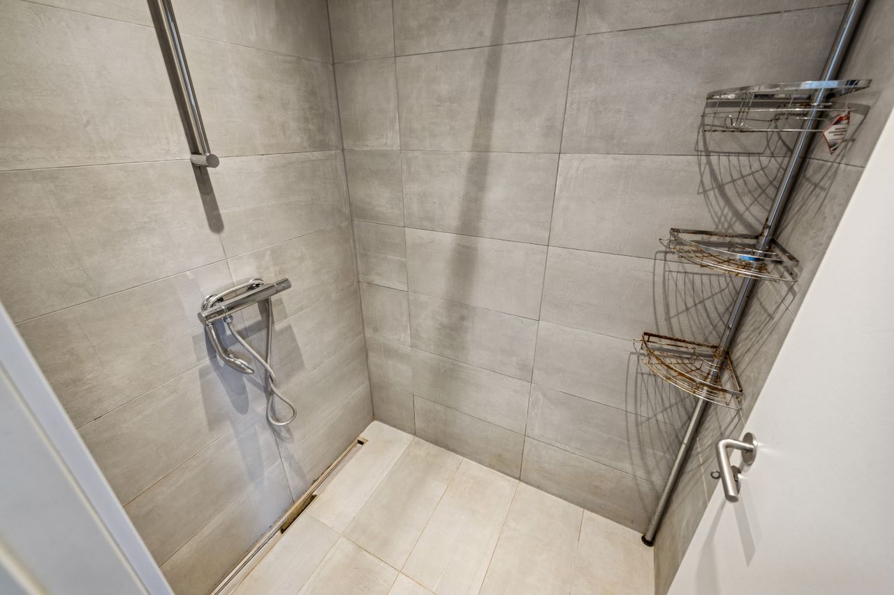 Soveværelset er lyst og luftigt med adgang til eget badeværelse, hvilket sikrer privatlivets fred og komfort. Dette hjems layout er gennemtænkt for at maksimere pladsudnyttelsen uden at gå på kompromis med æstetikken.