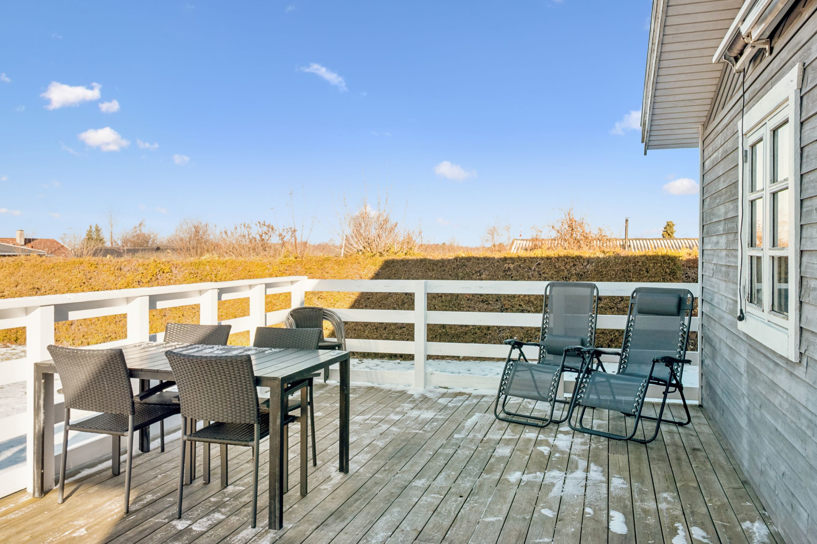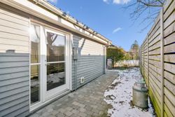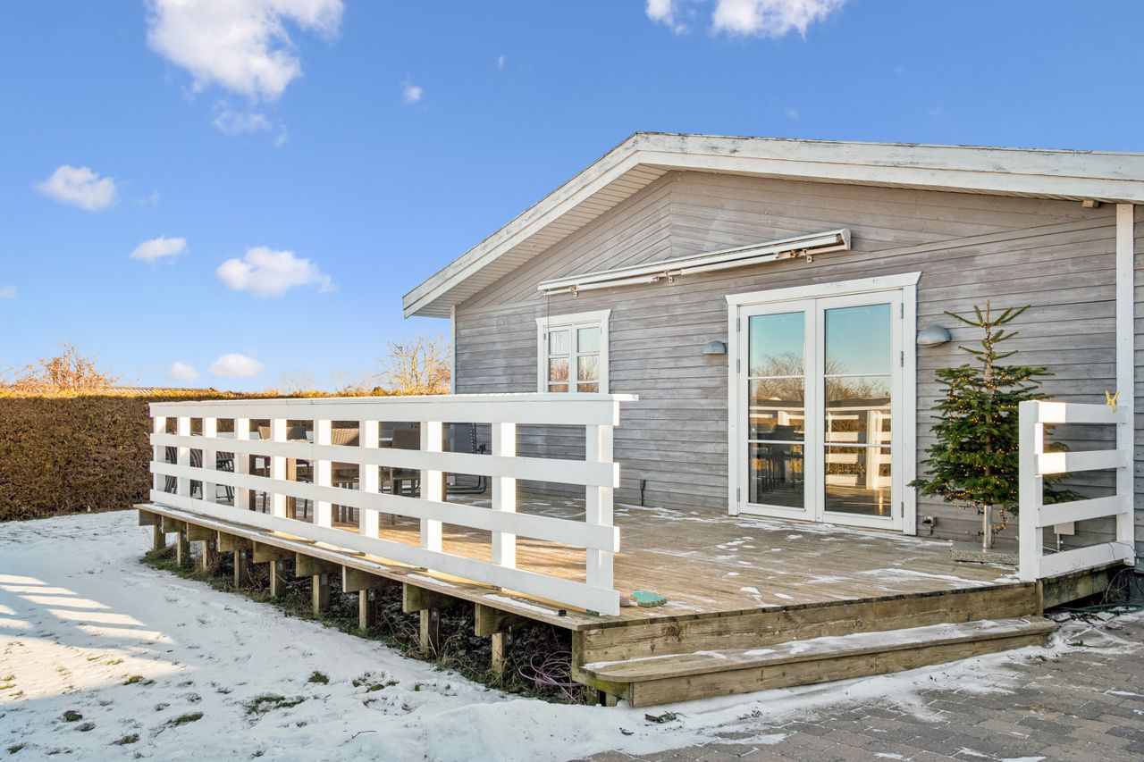 Fra opholdsrummet er der direkte udgang til en flot og rummelig træterrasse, som er orienteret mod vest – her kan solen nydes fra eftermiddag til aften i ugenerede omgivelser. Huset ligger bagerst i foreningen og grænser op til grønt område, hvilket giver en sjælden følelse af fred og privatliv.