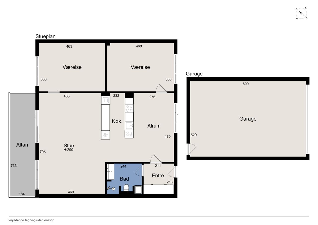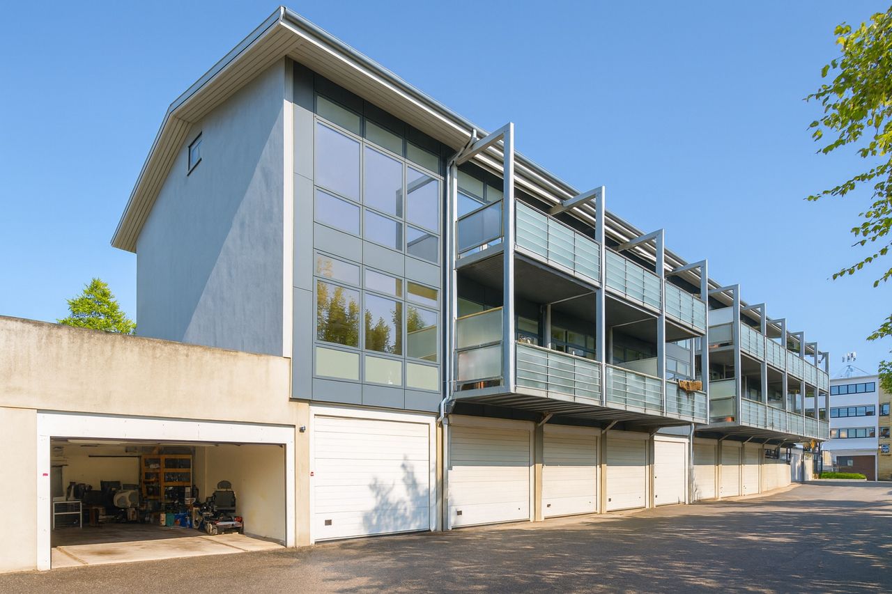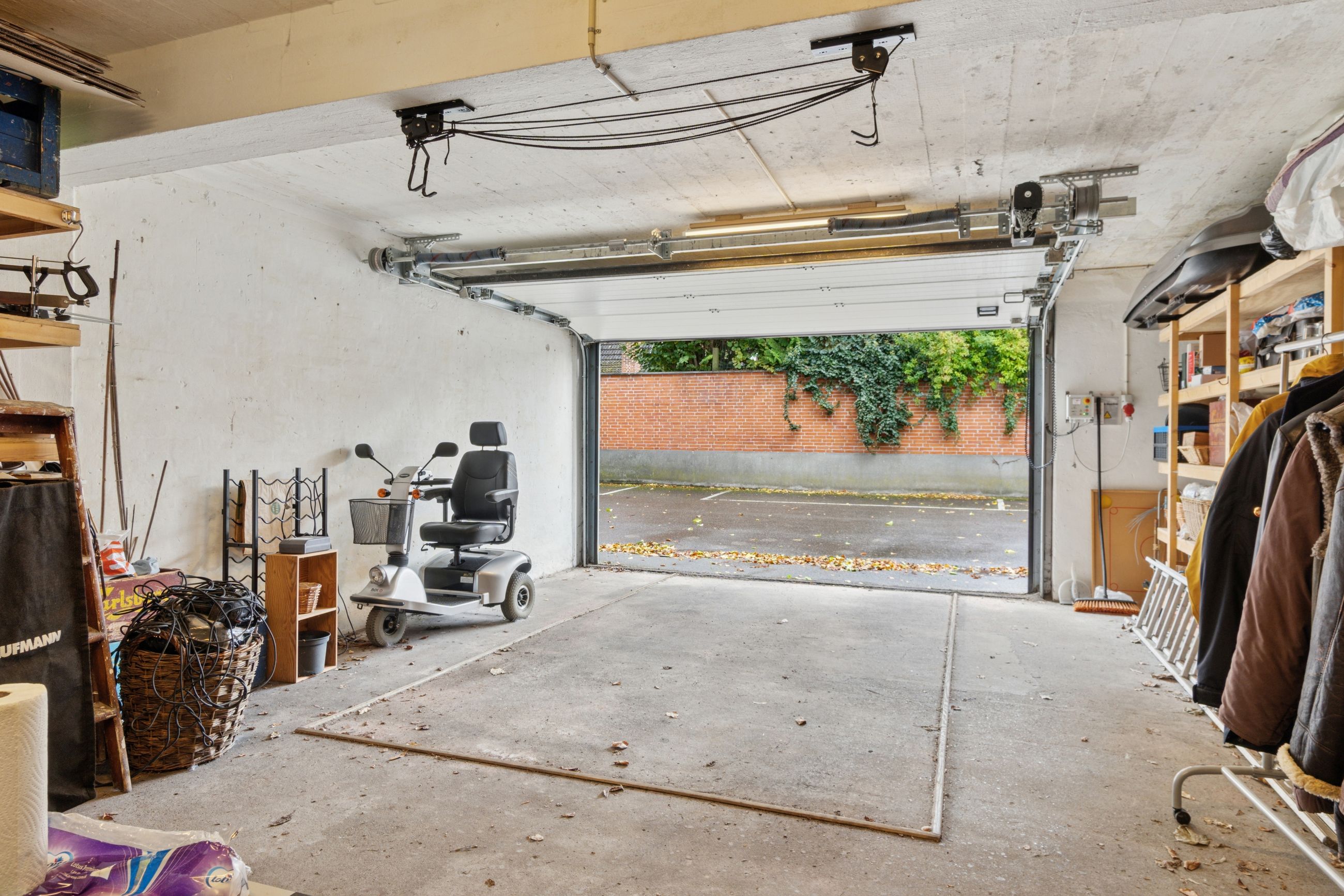 Til lejligheden hører en stor opvarmet garage, med fjernbetjent port med mulighed for ladestanderen til elbil.