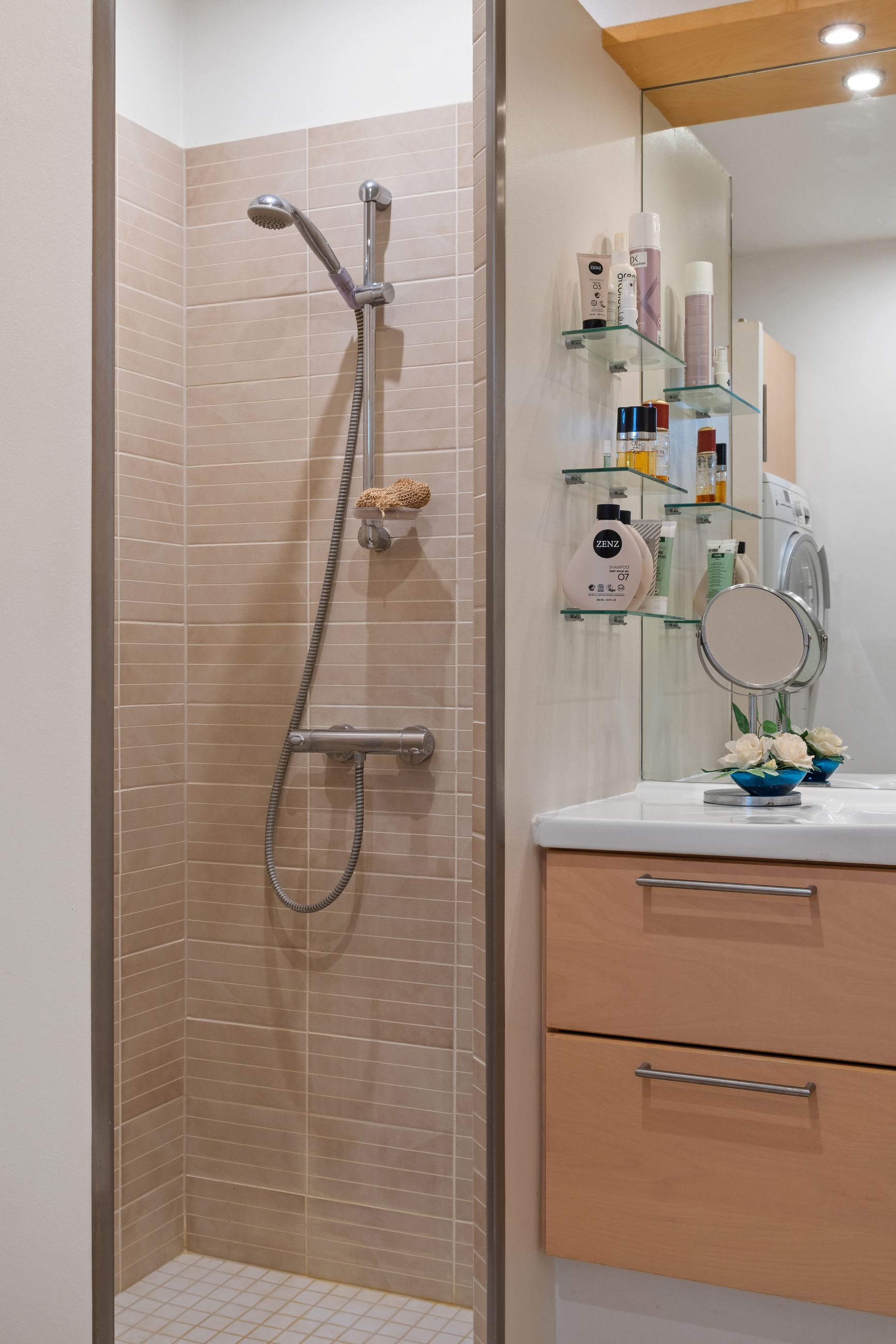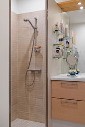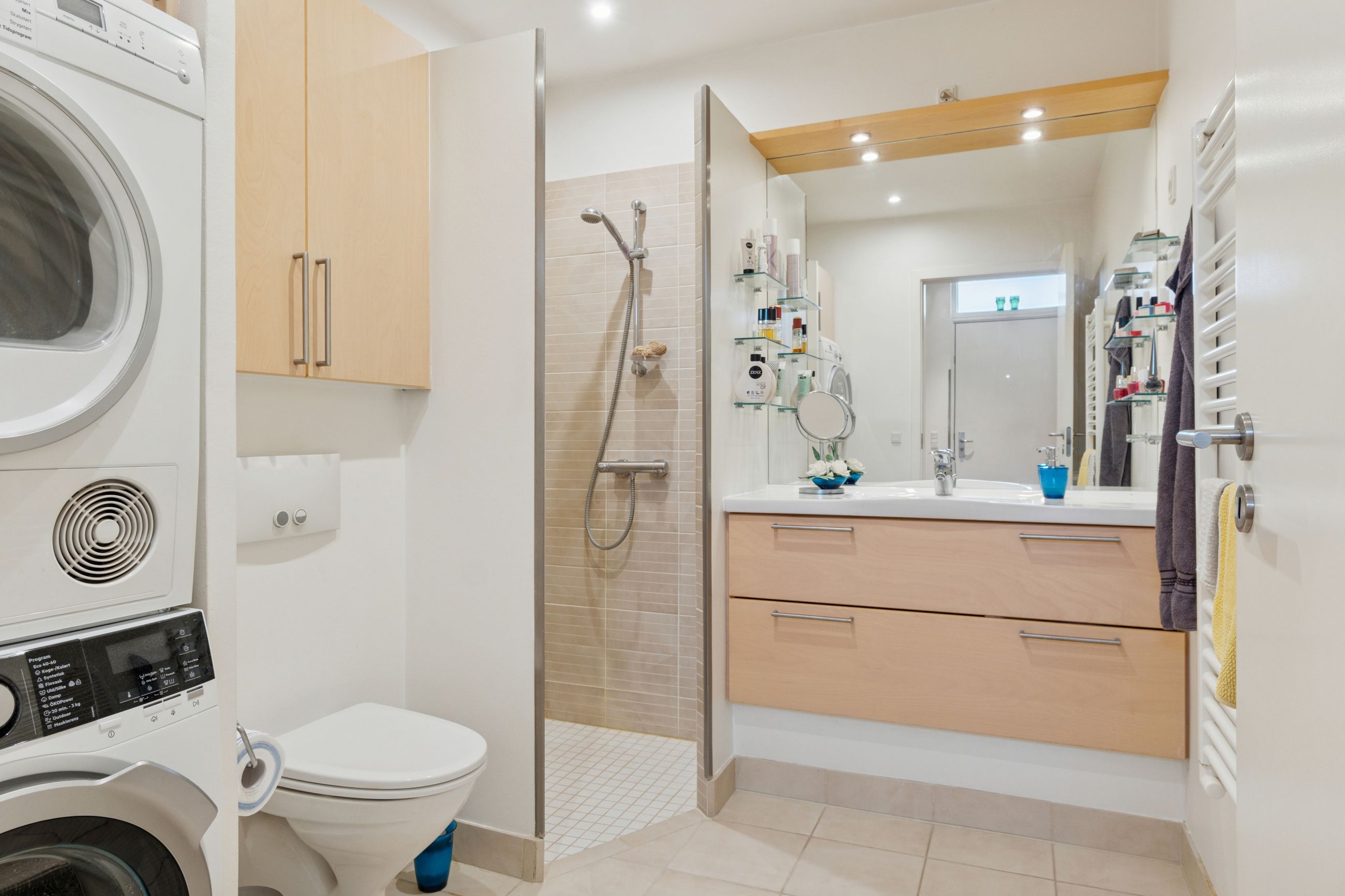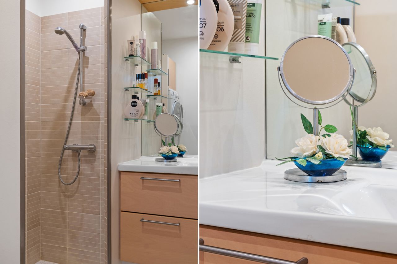 Lejligheden har et moderne og velindrettet badeværelse der er beliggende i forbindelse med entreen til lejligheden , 2 gode soveværelser og en skøn og stor lys stue med direkte udgang til den skønne altan/terrasse.