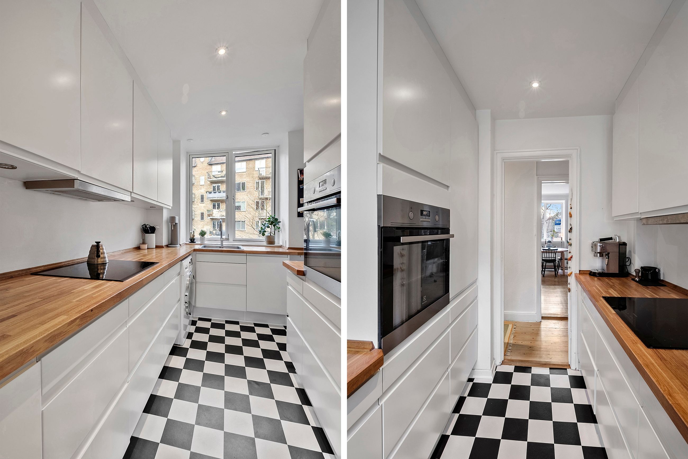 Lejligheden er opdateret med et nyere køkken, der kombinerer funktionalitet med et stilrent design. Her får du masser af opbevaringsplads og gode arbejdsforhold, som gør det til en fornøjelse at lave mad.