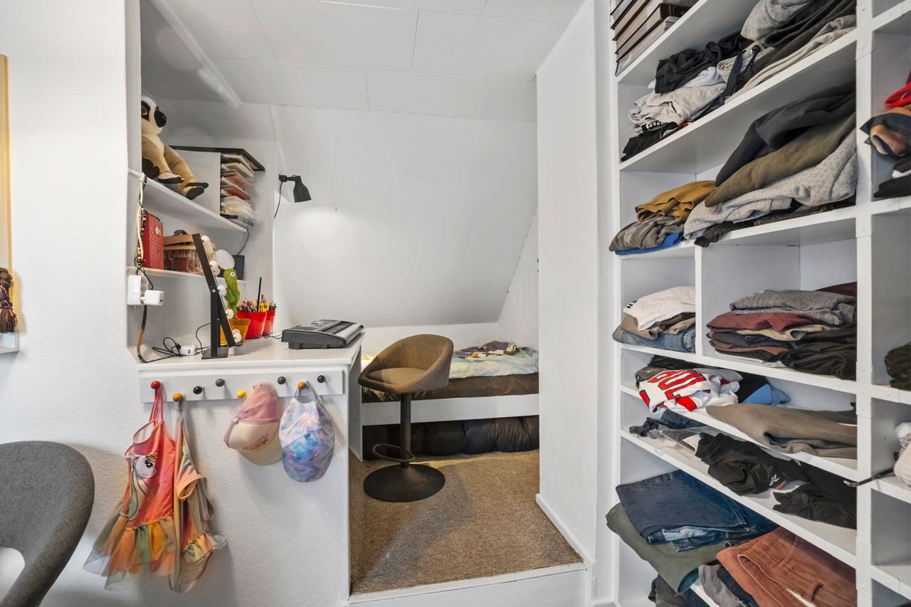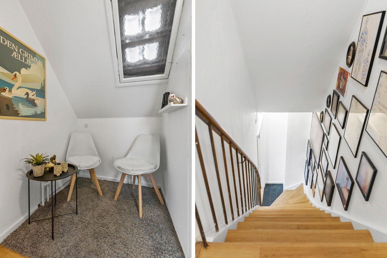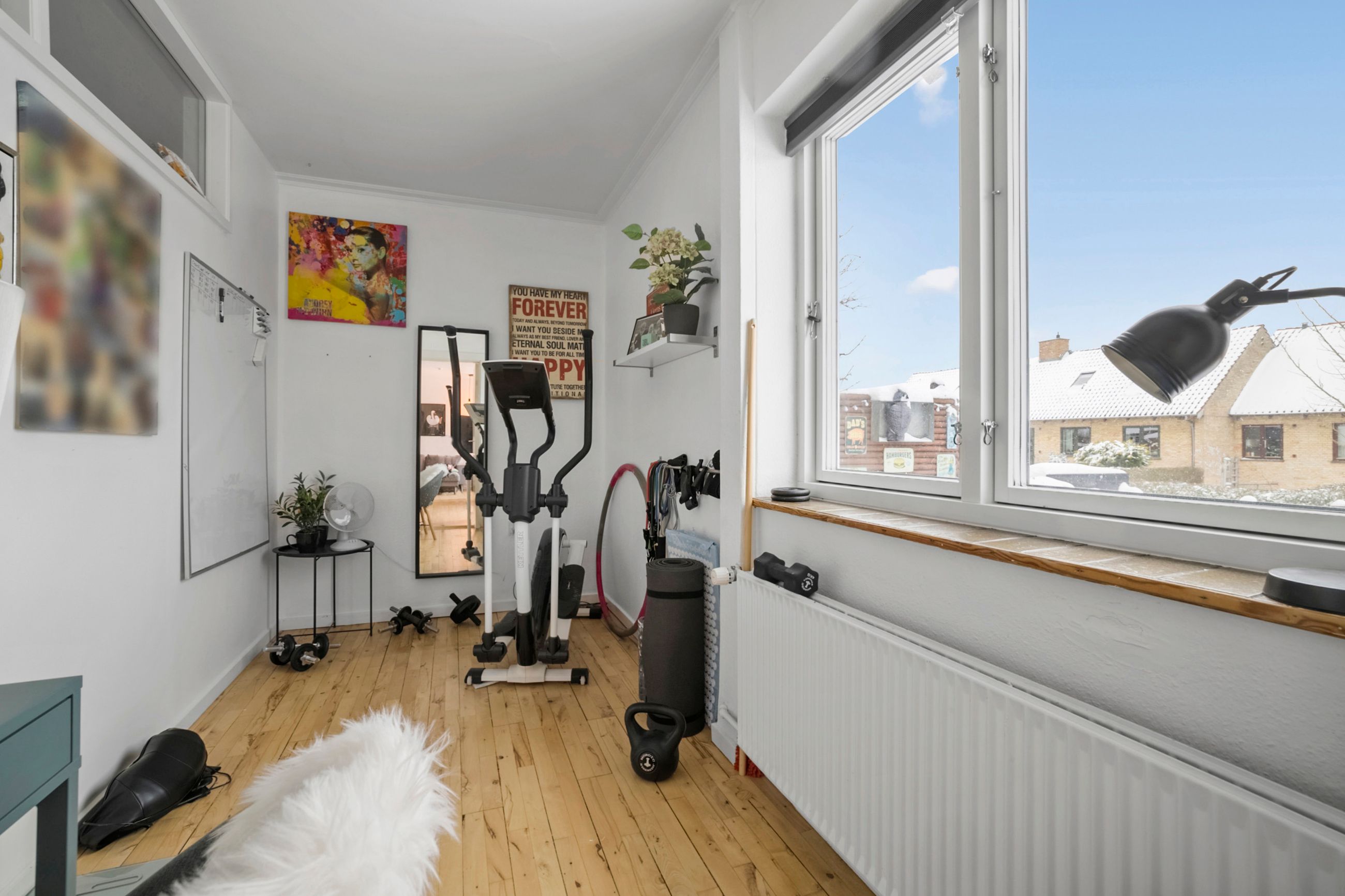 På 1. sal findes to værelser samt badeværelse. Planløsningen giver en klar opdeling mellem opholdsrum og værelsesafdeling og understøtter en praktisk hverdag.