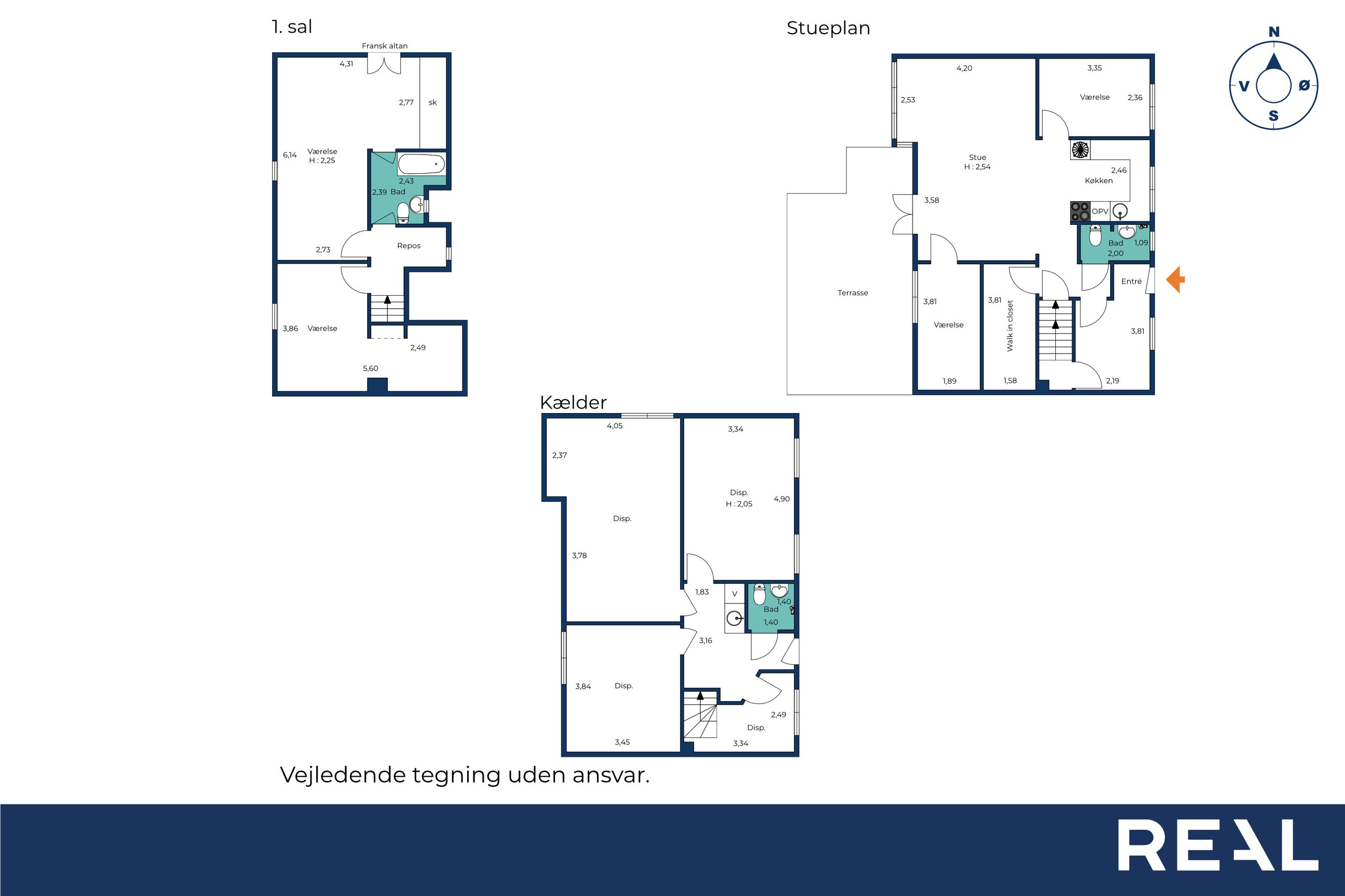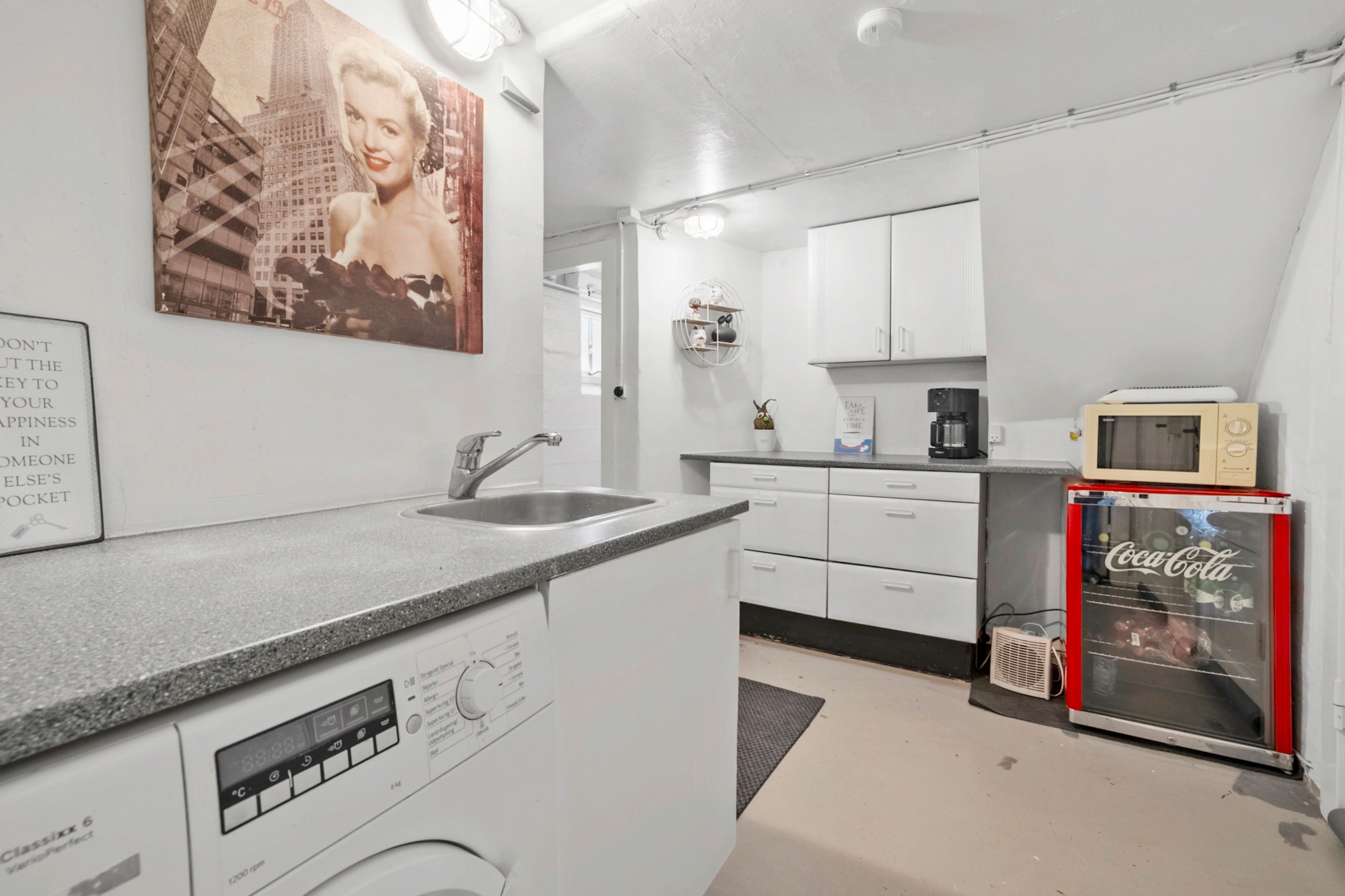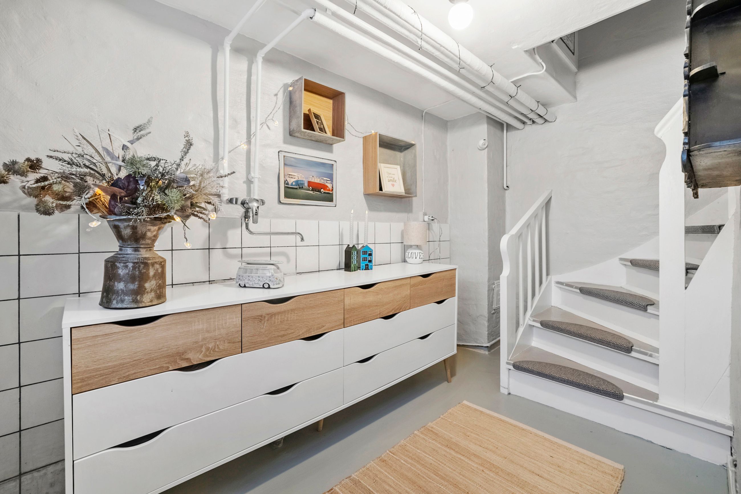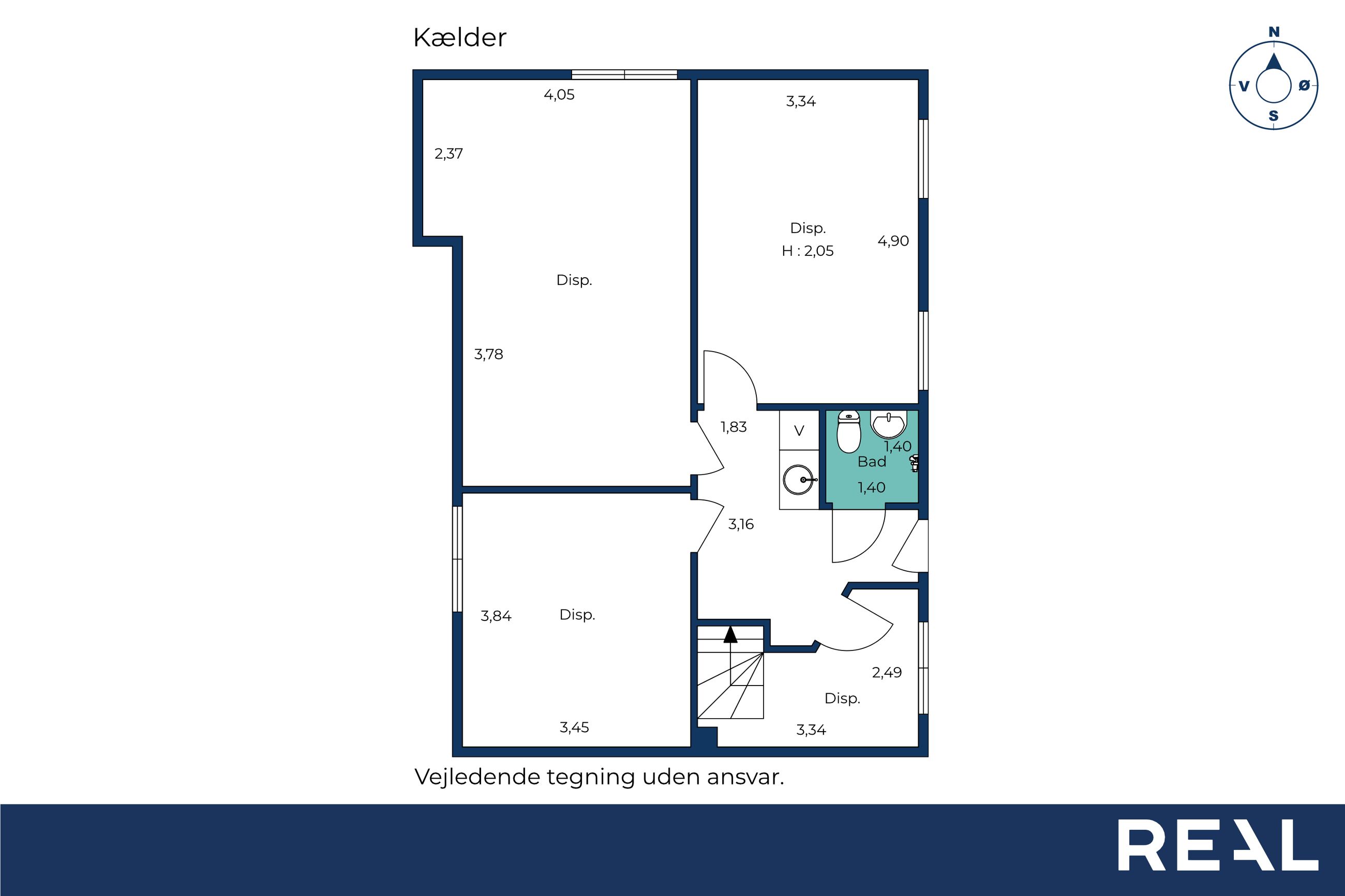 Kælderen udgør 81 m2 og er etableret med omfangsdræn. Her findes tre gode disponible rum samt badeværelse, hvilket giver mange anvendelsesmuligheder og udgør et væsentligt supplement til boligens øvrige kvadratmeter.