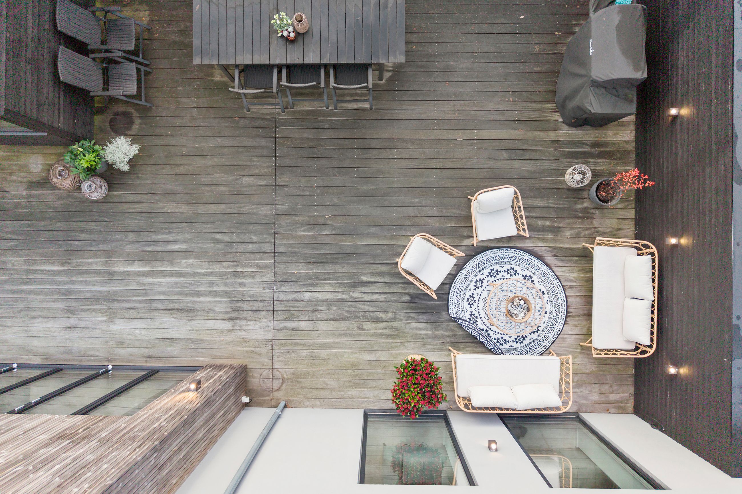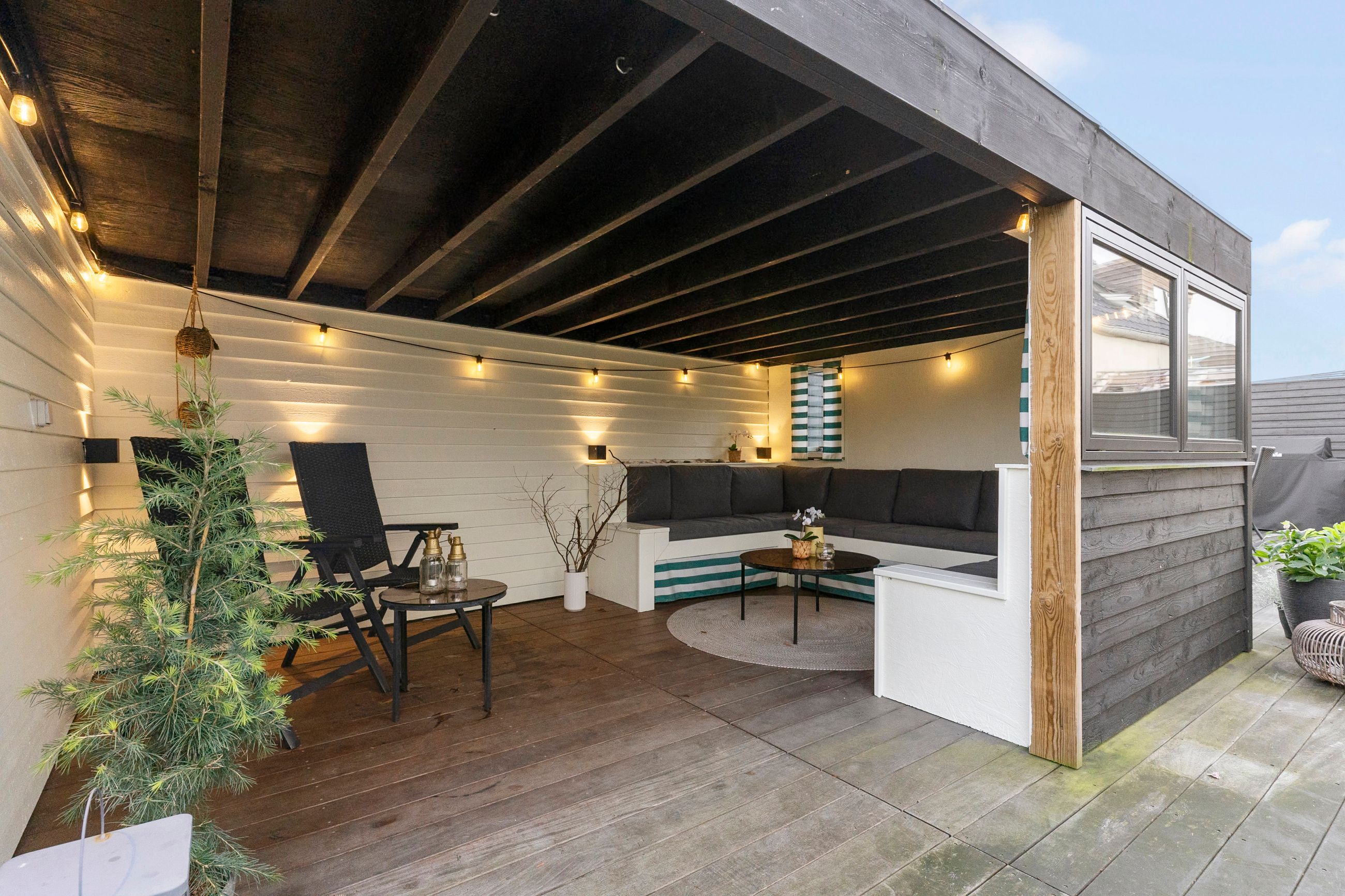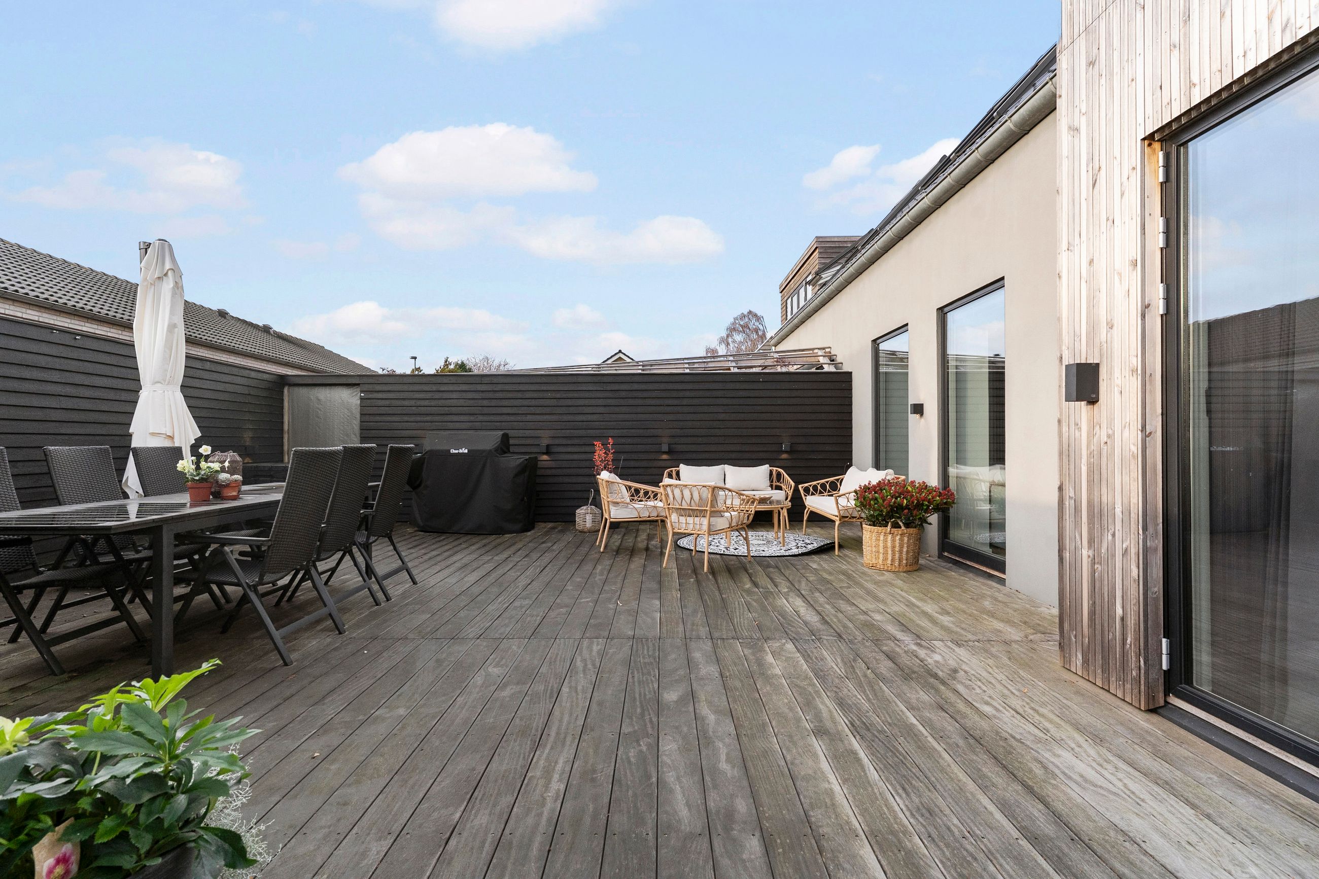 Fra alrummet er der udgang til den sydvestvendte have, som er nem at vedligeholde og giver mulighed for både leg og afslapning. Haven er praktisk, men stadig rummelig nok til at skabe et frirum.