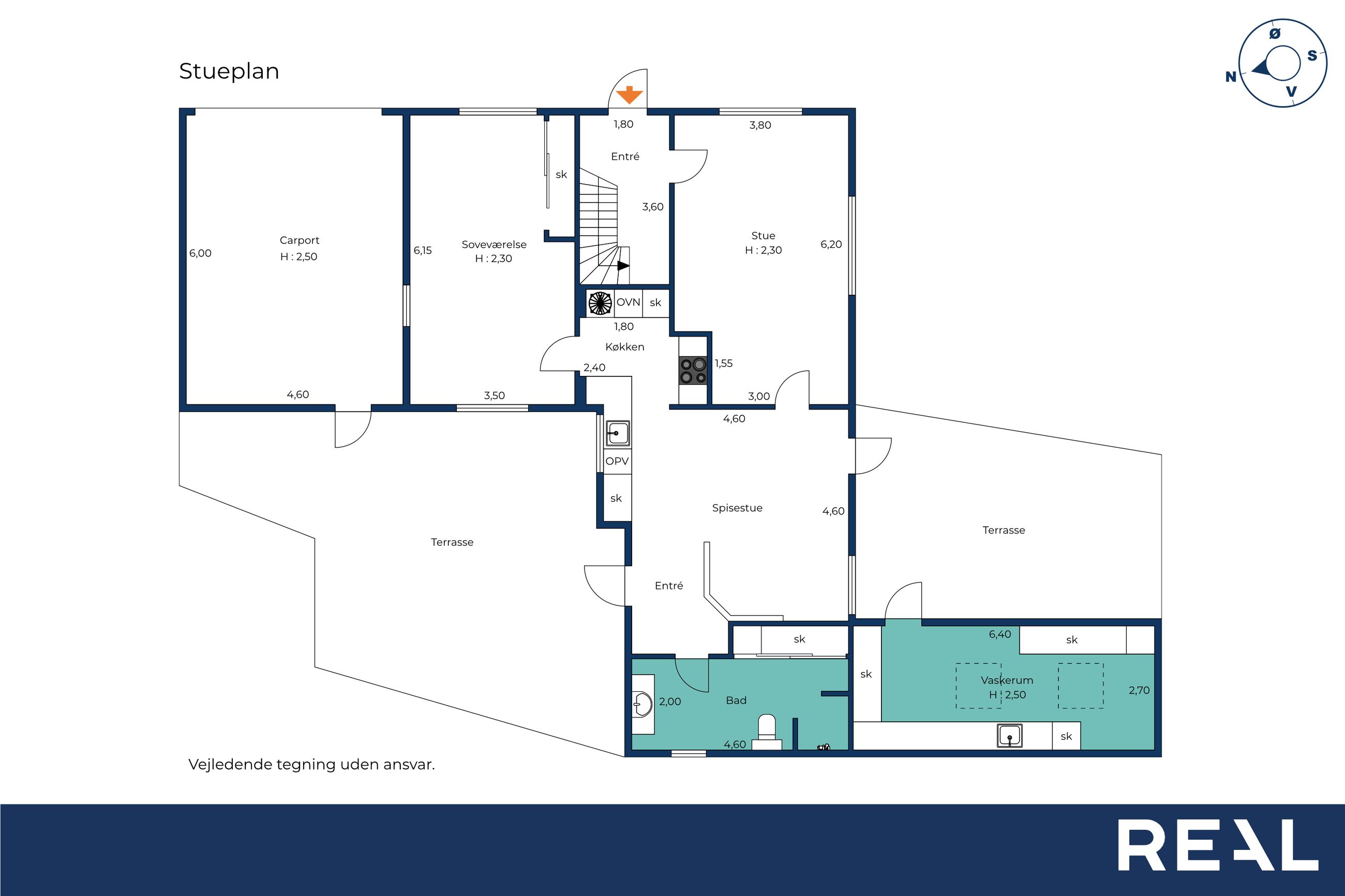 Stueplan – hjemmets hjerteHer bliver man mødt af et lyst og moderne køkken/alrum, der fungerer som hjemmets naturlige samlingspunkt. Her er god plads til både madlavning, samvær og hverdagens rytmer. Fra alrummet er der fin adgang til den hyggelige og lyse stue, som byder på et behageligt lysindfald og plads til både sofahygge og gæster.