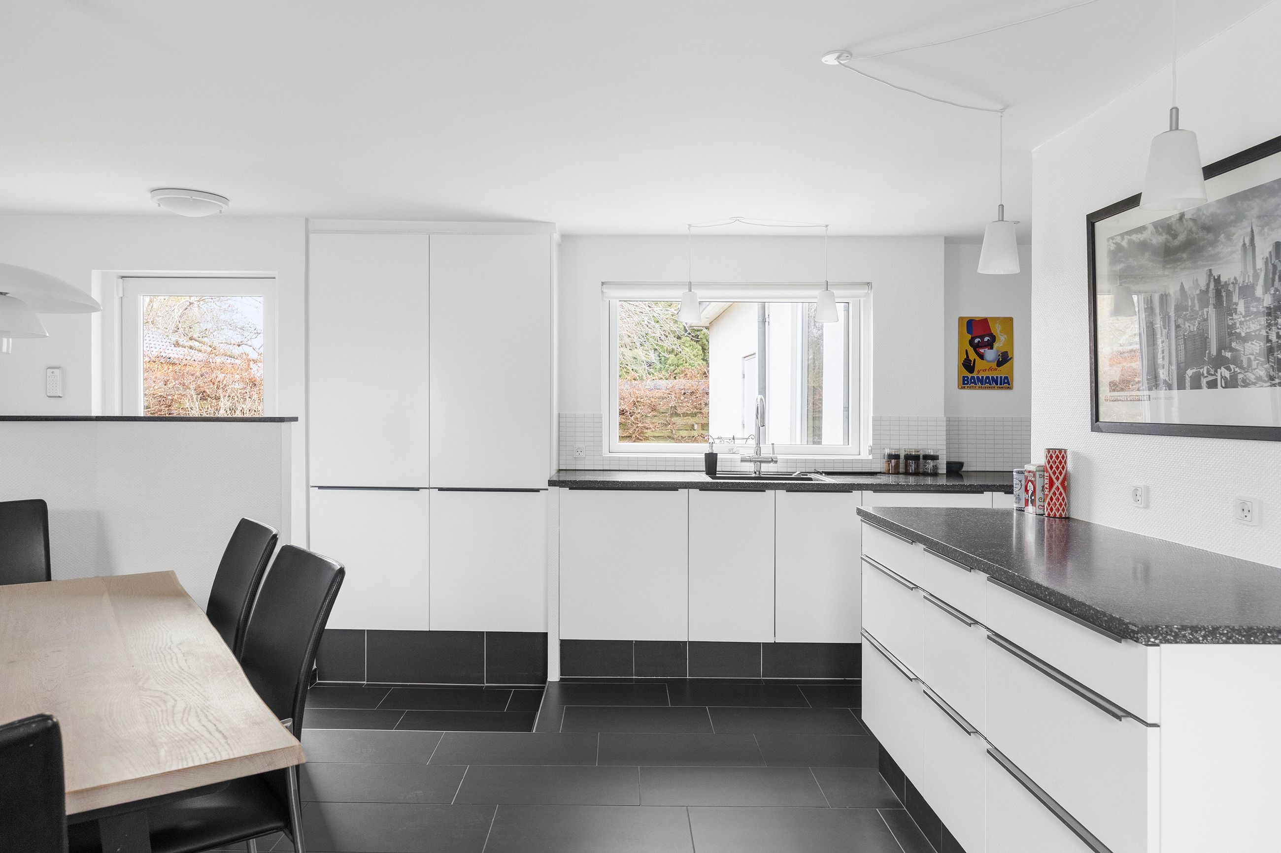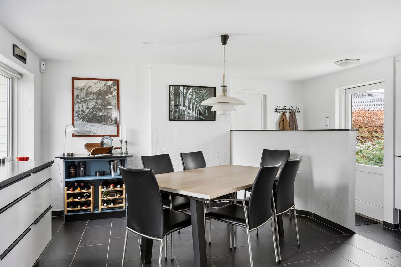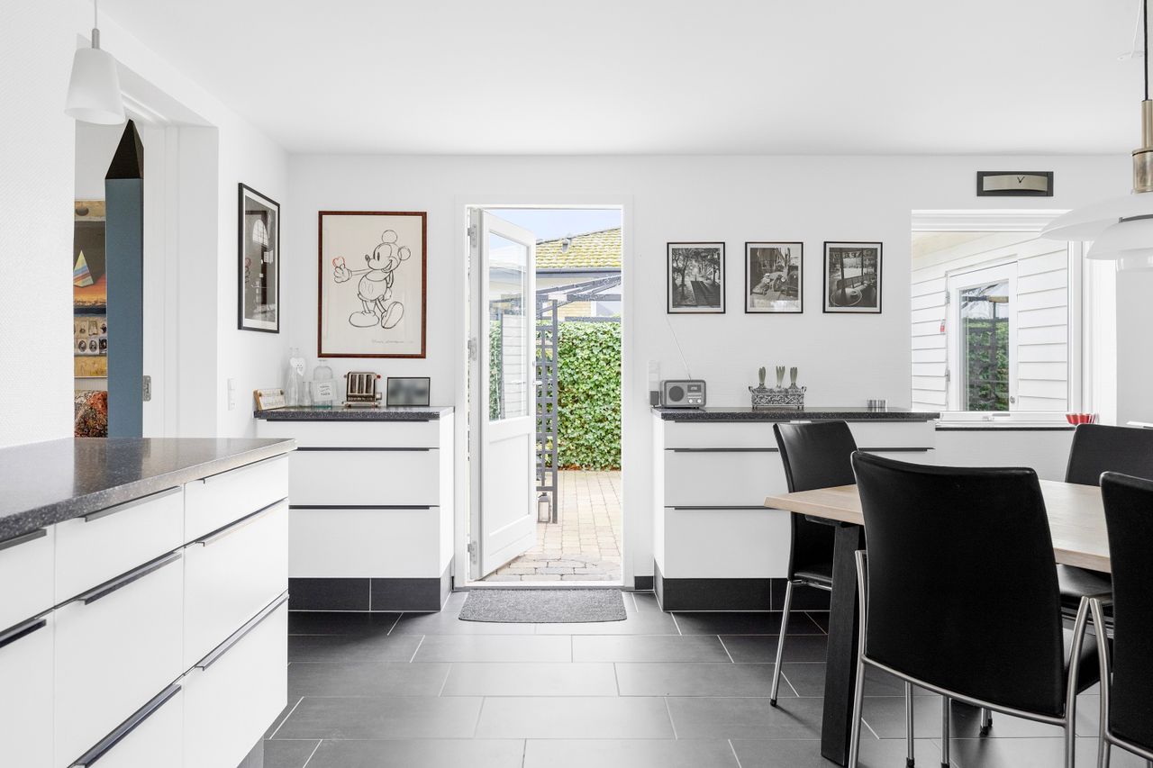 Moderne villa fra 2001 – lys, luft og gennemtænkte rumEjendommen er opført i 2001 og fremstår moderne, velholdt og særdeles indbydende. De 155 m2 er fordelt på 1½ plan, og indretningen giver en skøn balance mellem fællesrum og private zoner.