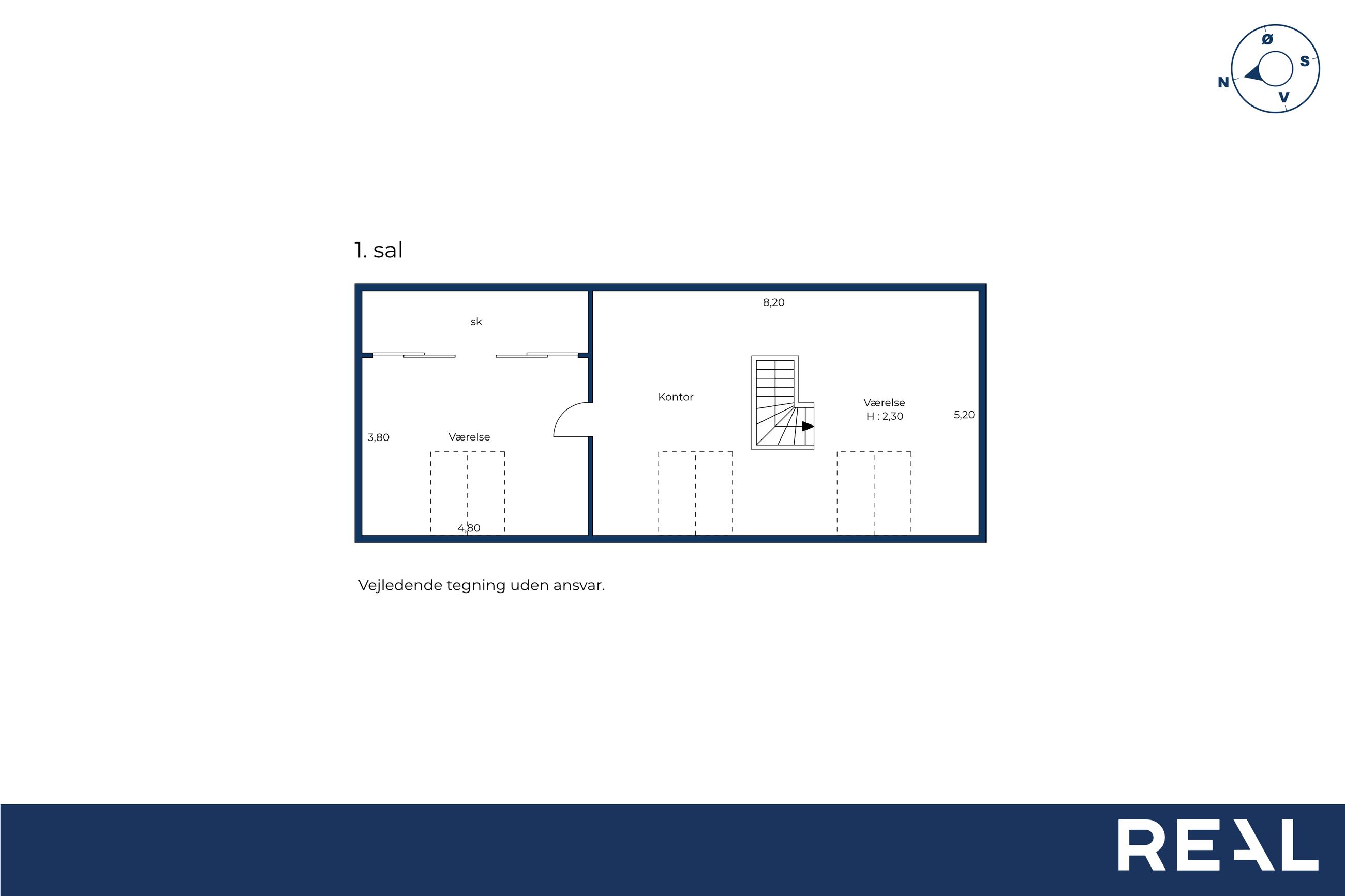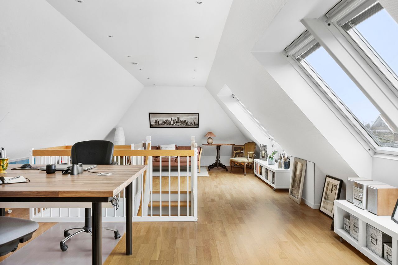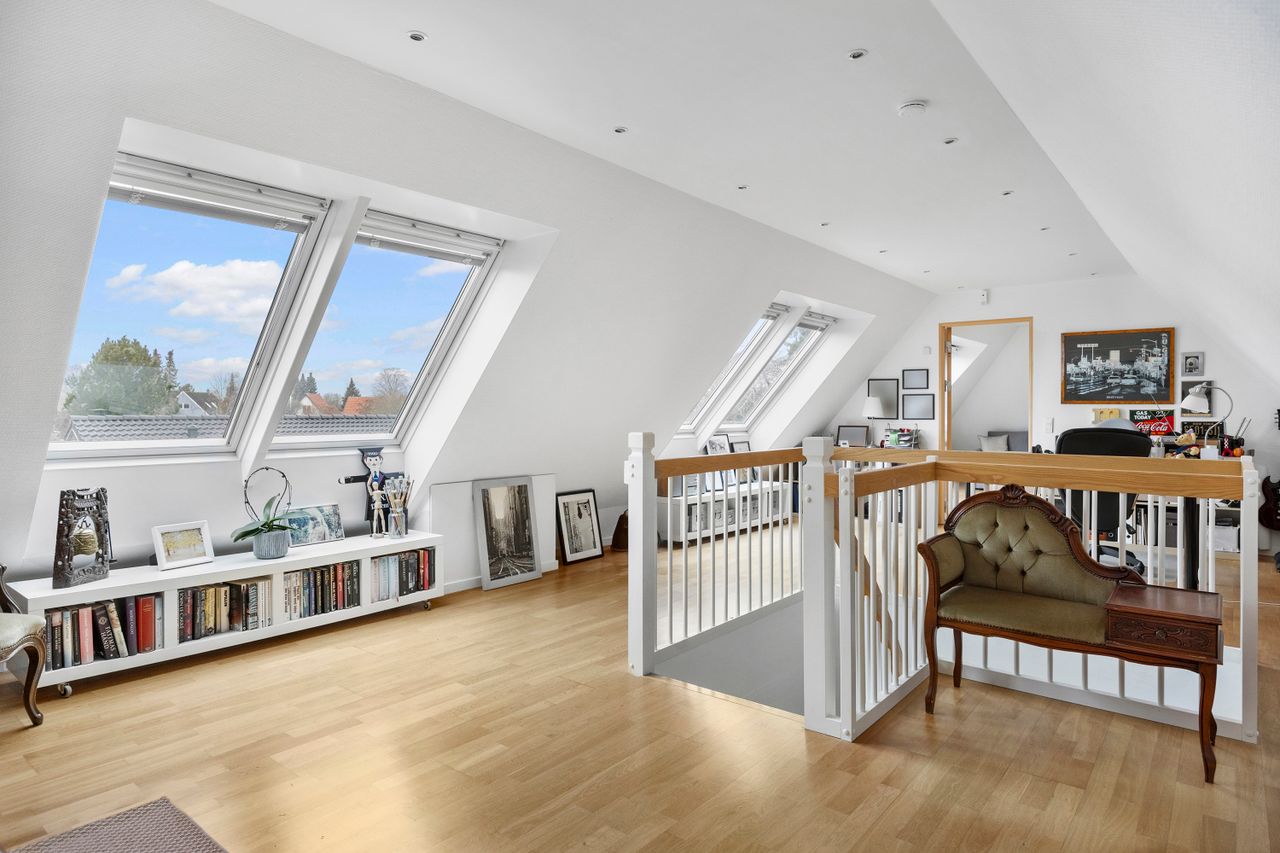 1. sal – multirum og stort værelsePå førstesalen får du yderligere et komfortabelt opholdsrum i form af en stue/multirum, der kan bruges til alt fra legerum til hjemmekontor. Hertil kommer et stort og rummeligt værelse, som fungerer perfekt som enten master bedroom, ungdomsafdeling eller gæsteafdeling.