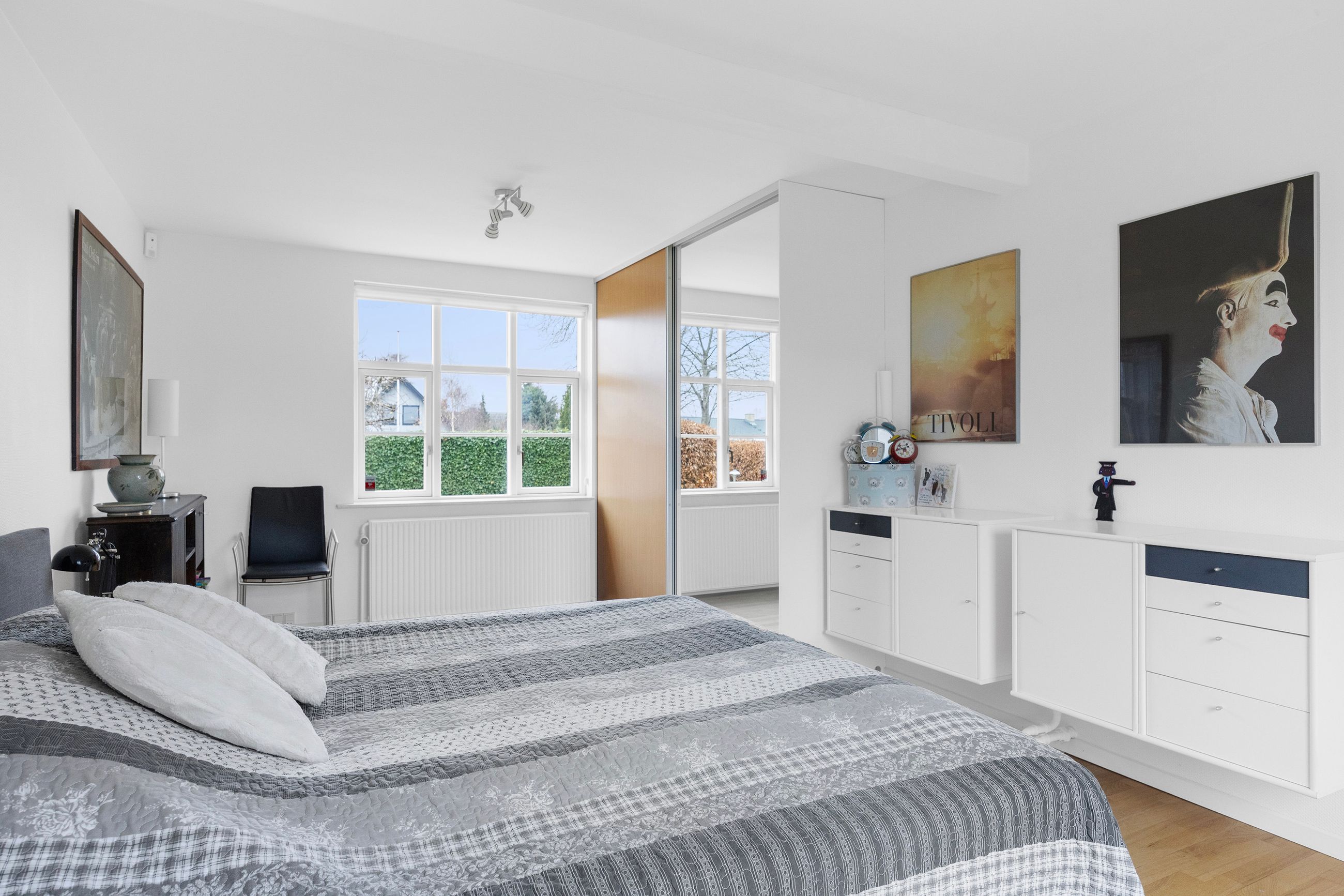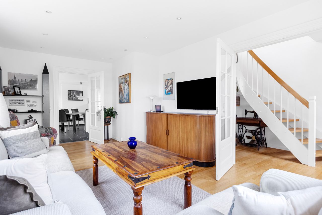 Ekstra fleksibilitet – hvis behovet opstårDer er flere muligheder for at tilpasse boligen efter dine ønsker. Soveværelset i stueplan har tidligere været opdelt i to værelser, og både stueplan og 1. sal rummer potentiale for yderligere værelser. Selv garagen kan efter behov inddrages som beboelse og skabe ekstra rum eller funktioner.