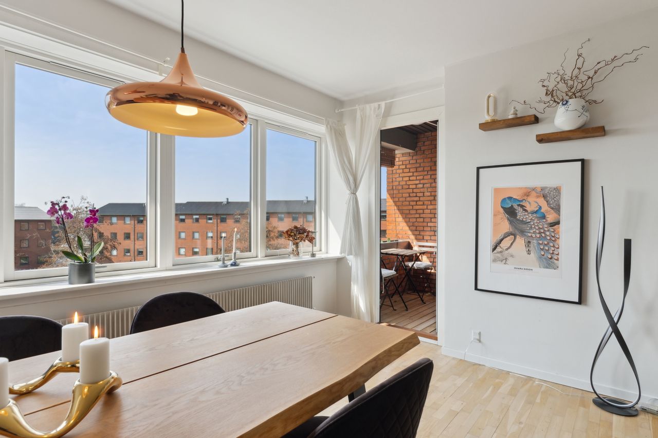 Drømmer du om en centralt beliggende lejlighed i Glostrup? Her får du en skøn 3-værelses bolig øverst på 2. sal – tæt på Glostrup Station og Shoppingcenter, hvor du kan nå København H på kun 17 minutter.
