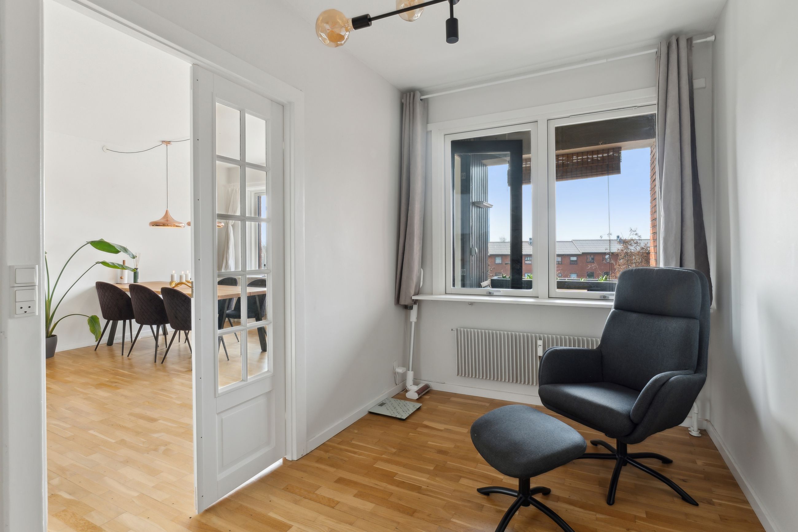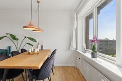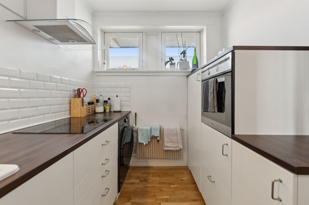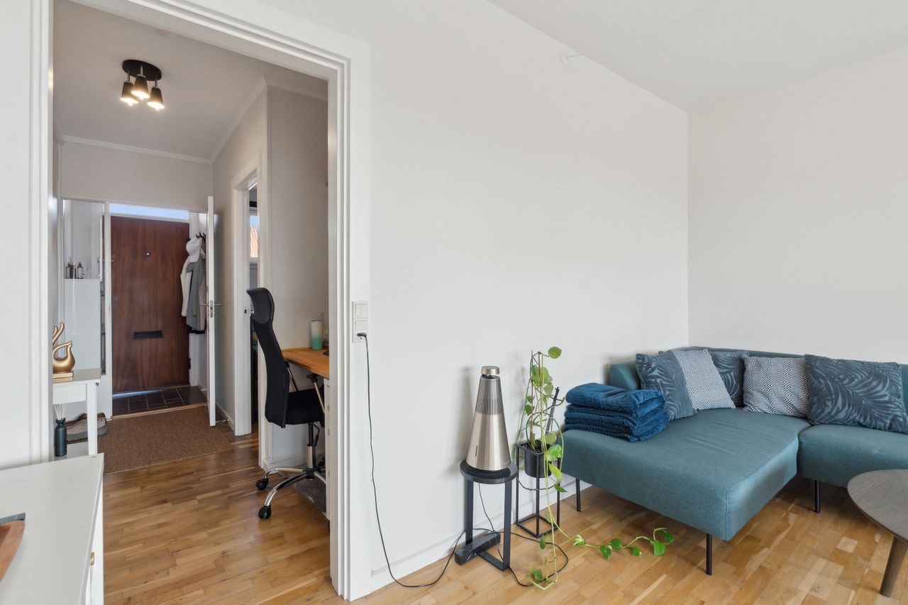 Velkommen til en lys og veldisponeret lejlighed! Du træder ind i en rummelig entré med plads til garderobe. Køkkenet og badeværelset er begge moderniseret i 2018, og lejligheden fremstår velholdt. Den hyggelige opholdsstue har et flot gulv og udgang til en indbygget altan. Fra stuen er der fløjdøre til et ekstra værelse/spisestue, som let kan benyttes efter behov. Derudover et godt soveværelse med stor skabsvæg.