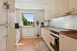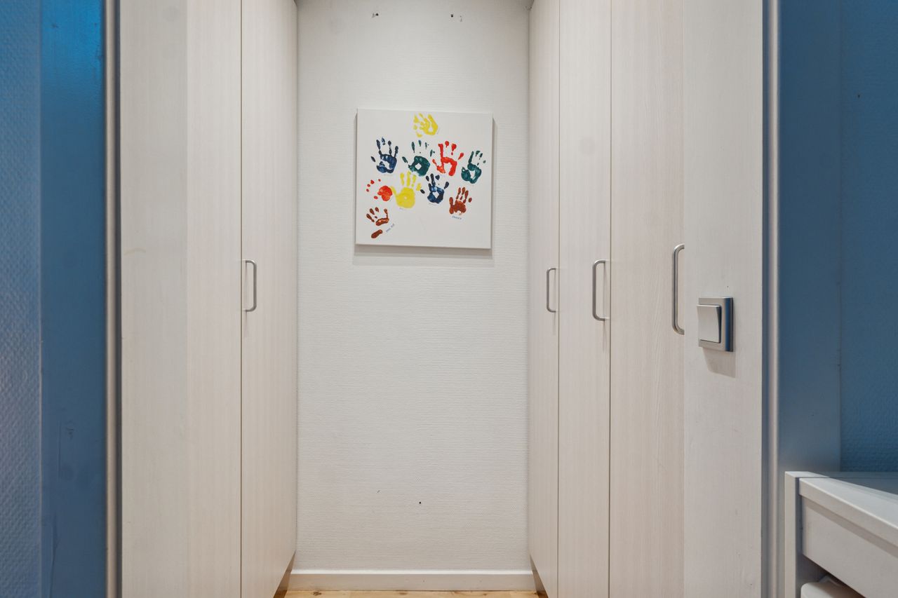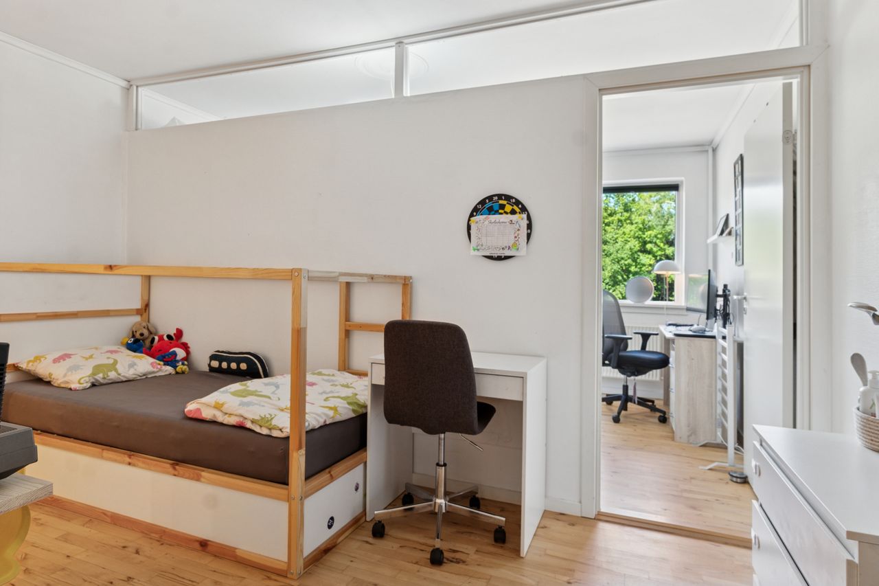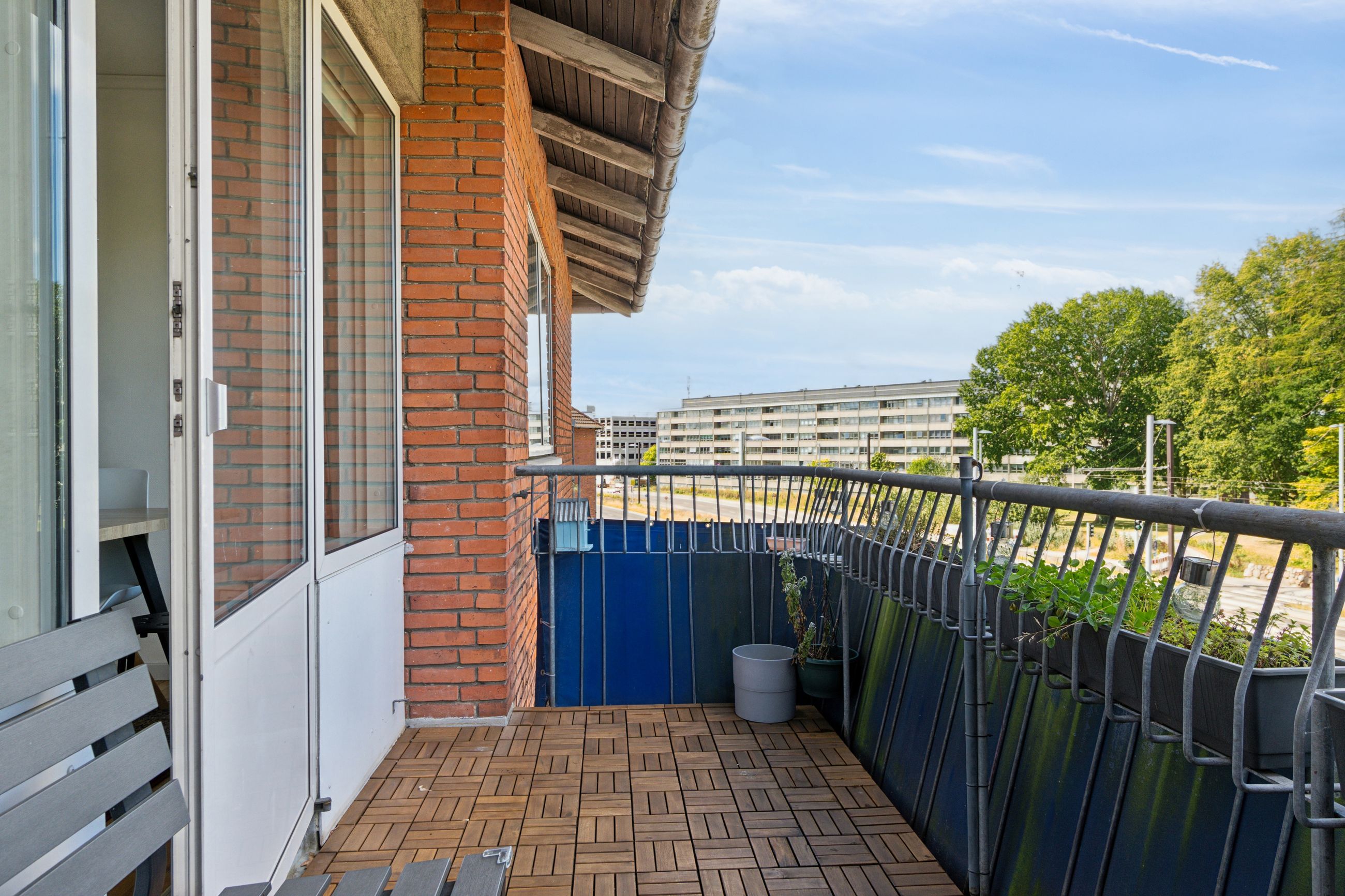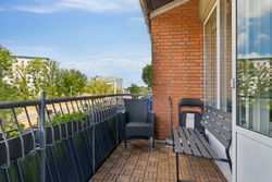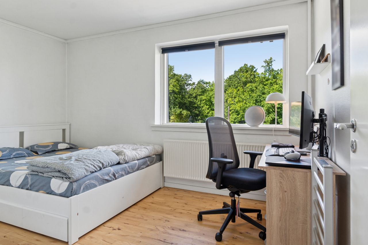 Lejligheden byder på en stor og solrig altan med skøn udsigt over byens tage og liv, hvor du kan nyde både morgenkaffen og de lune sommeraftener. Selvom boligen officielt er registreret som en 2-værelses, er der opsat en praktisk skillevæg i soveværelset, hvilket giver mulighed for et ekstra værelse – perfekt som børneværelse, kontor eller gæsterum.
