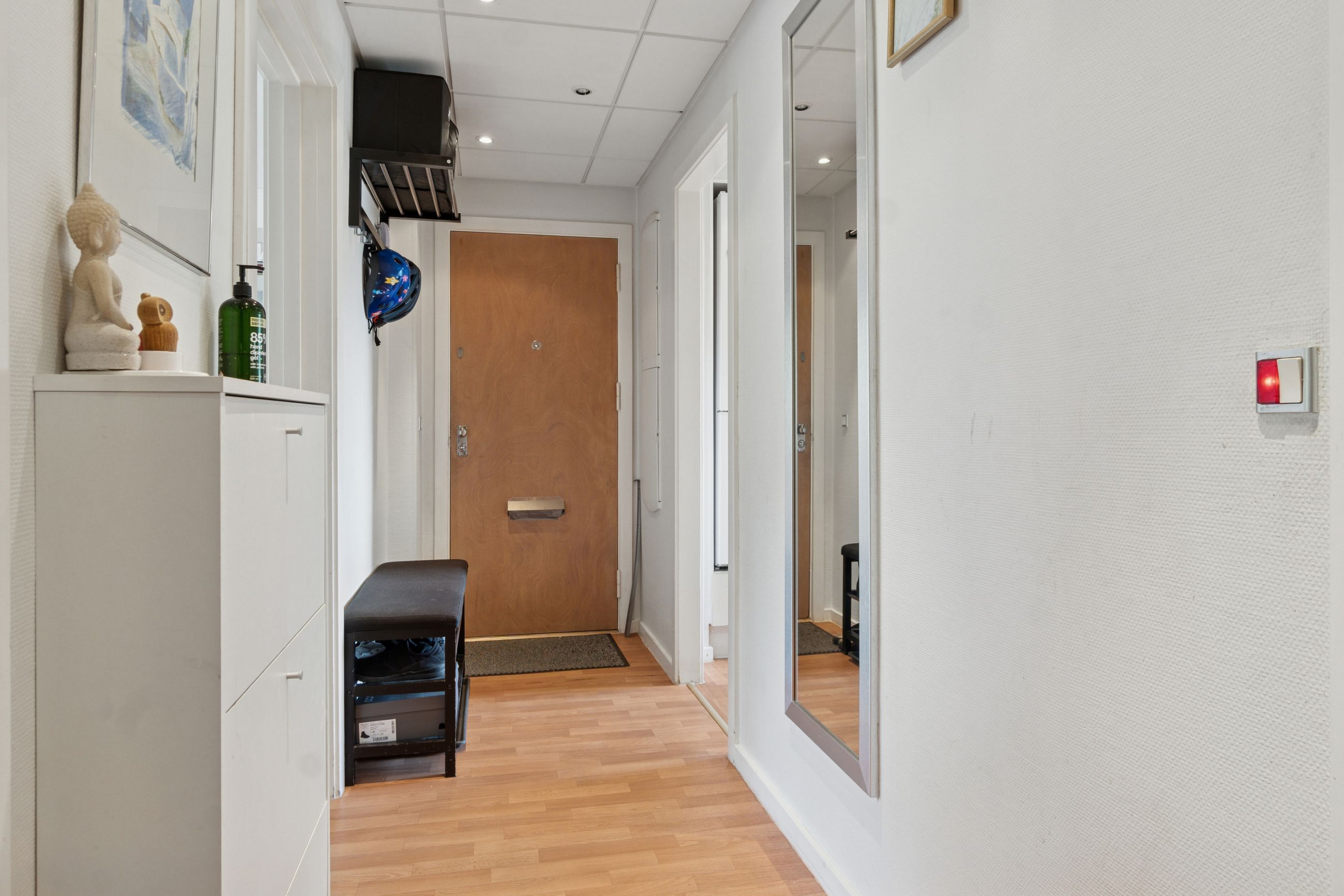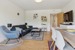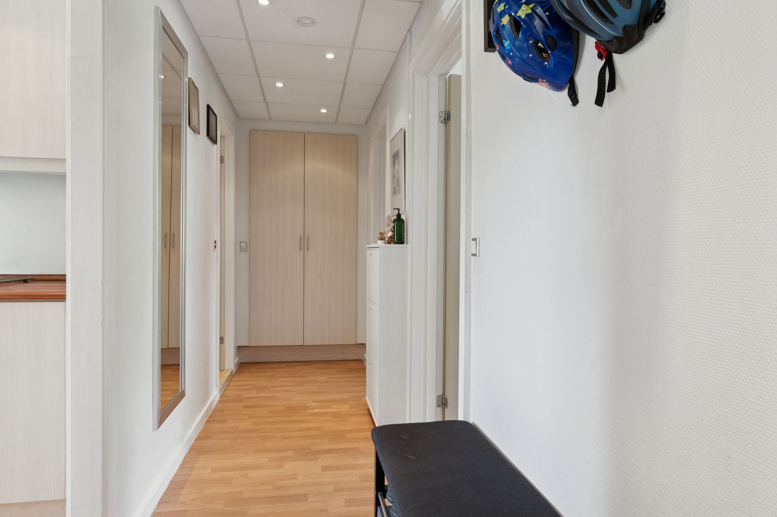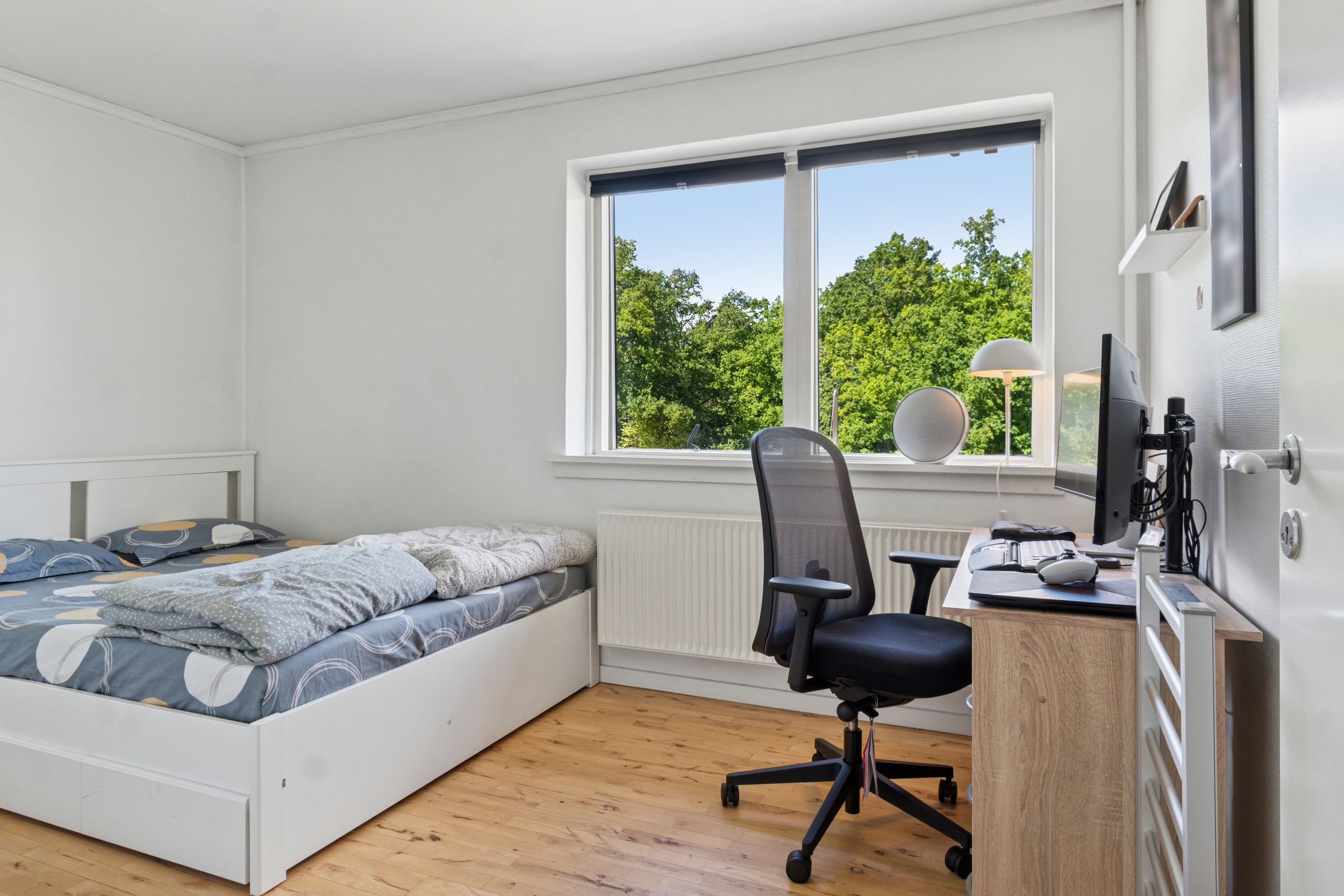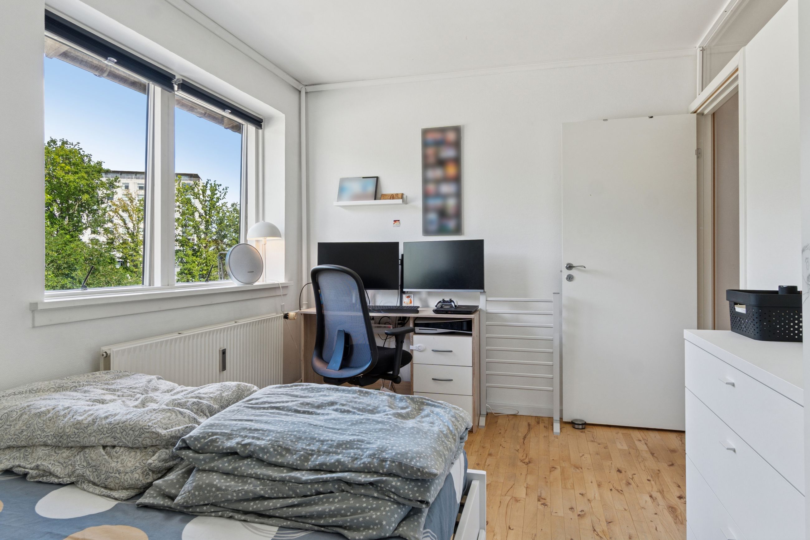 Lejligheden byder på en stor og solrig altan med skøn udsigt over byens tage og liv, hvor du kan nyde både morgenkaffen og de lune sommeraftener. Selvom boligen officielt er registreret som en 2-værelses, er der opsat en praktisk skillevæg i soveværelset, hvilket giver mulighed for et ekstra værelse – perfekt som børneværelse, kontor eller gæsterum.