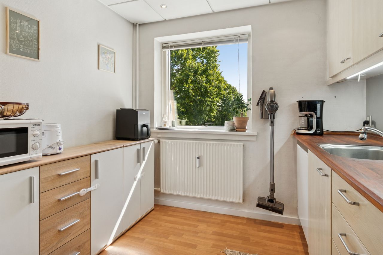 Indretningen er funktionel med et lyst og rummeligt opholdsrum, et dejligt køkken med kig til den hyggelige gård samt et stort badeværelse med plads til både vaskemaskine og tørretumbler. Derudover finder du et walk-in closet i soveværelset og en rummelig entré, som giver en god velkomst til boligen.