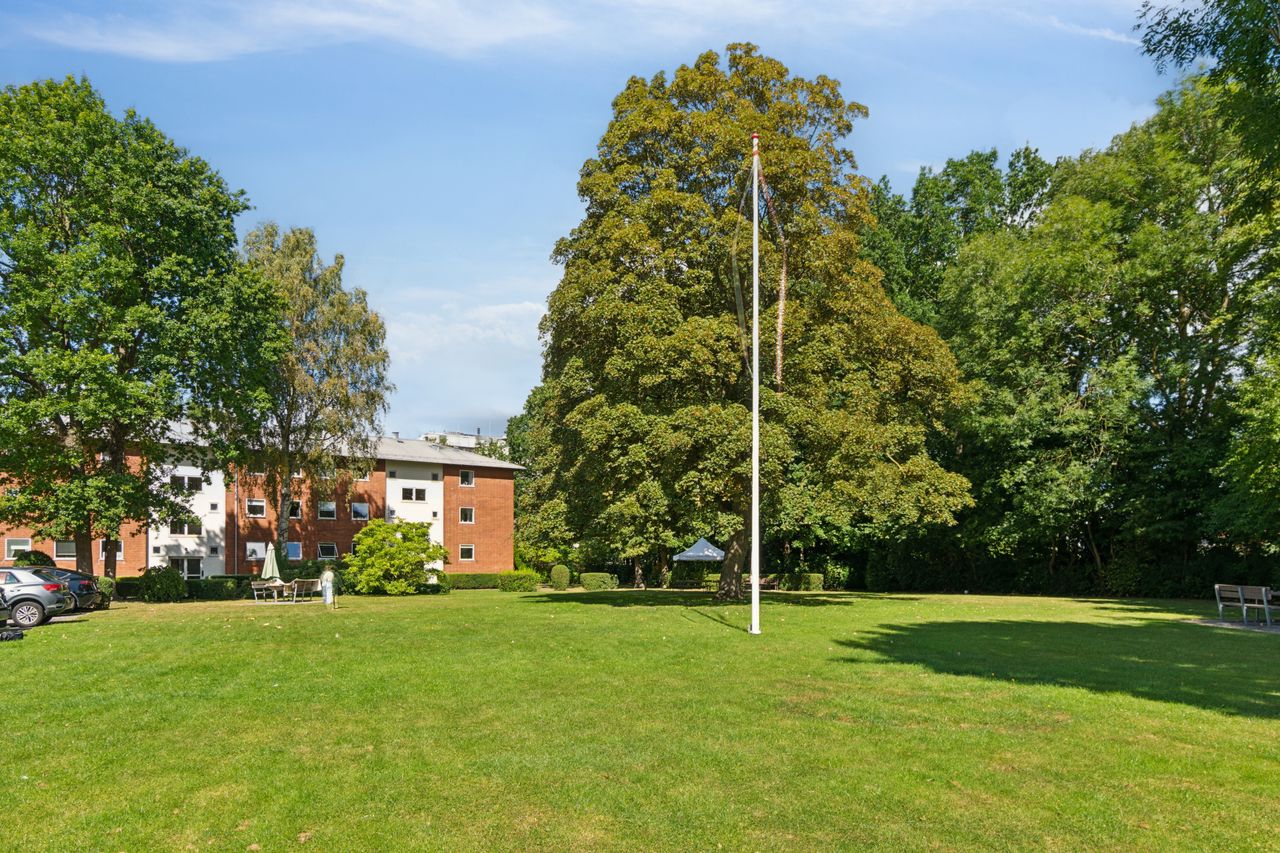 Beliggenheden er central med kort afstand til alt, hvad hverdagen kræver. Den nye letbane løber forbi ejendommen, men da den er elektrisk og støjfri, mærker du intet til den – tværtimod giver den en markant bekvemmelighed med hurtig adgang til offentlig transport. Indkøbsmuligheder, institutioner og grønne områder findes ligeledes tæt på.