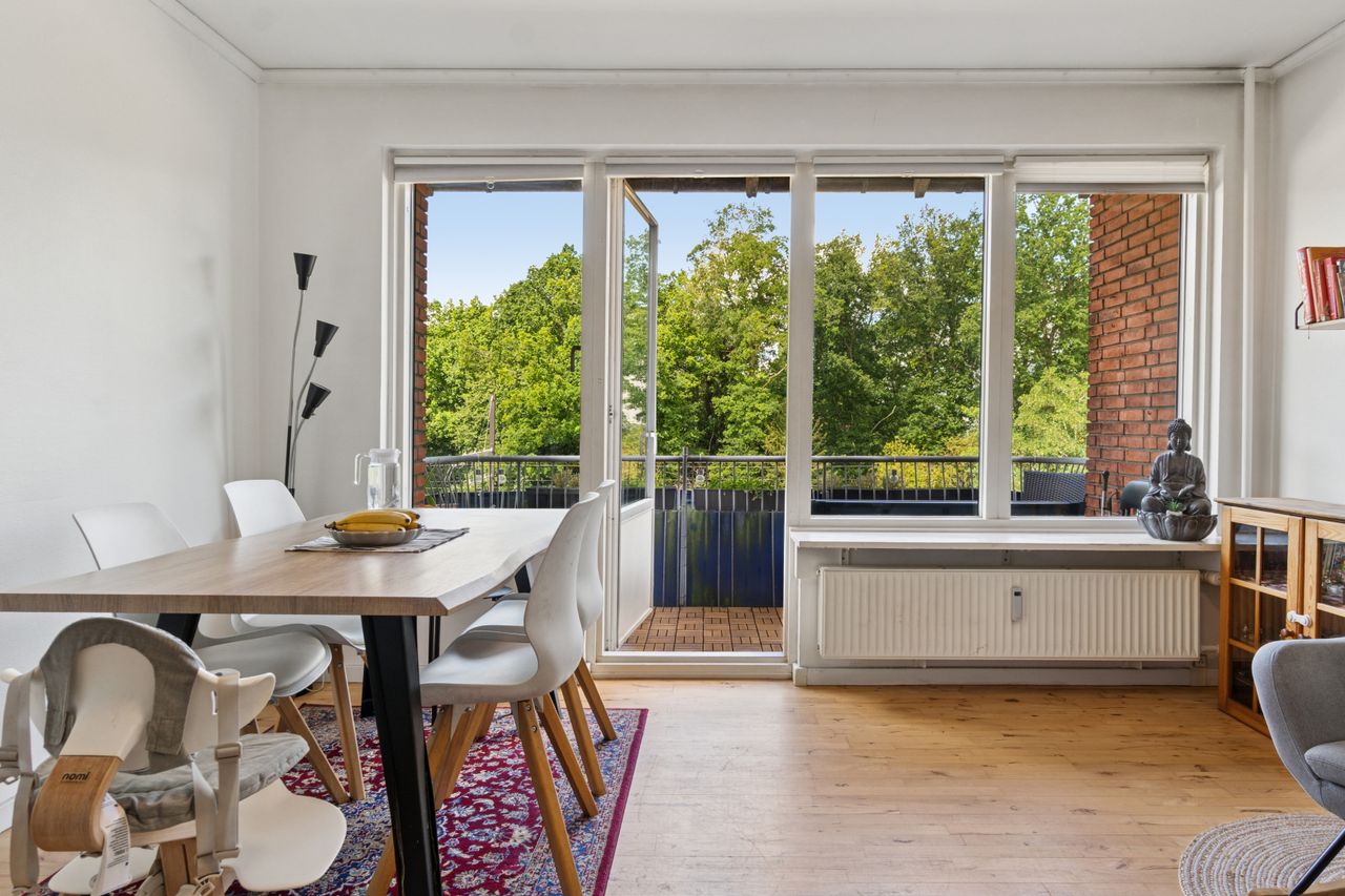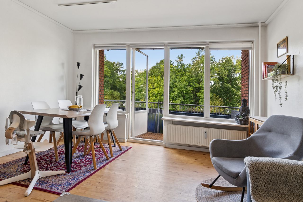En lys, rummelig og veldisponeret bolig i en sund ejerforening – med altan og central beliggenhed i Glostrup.