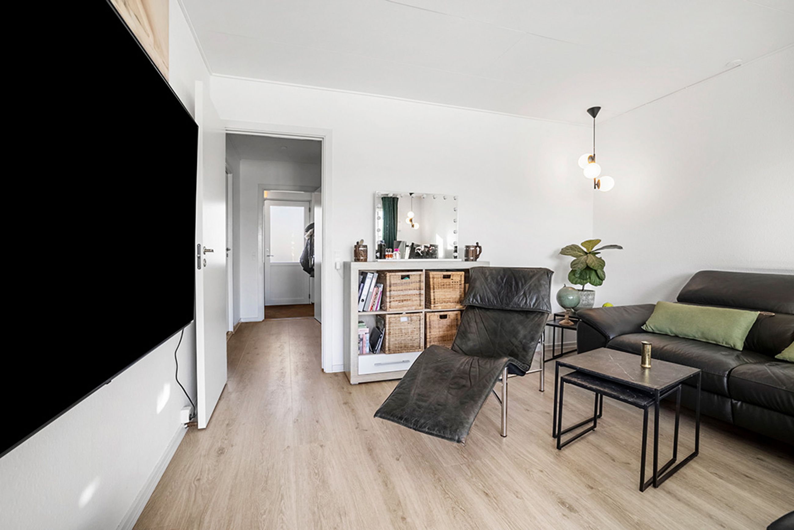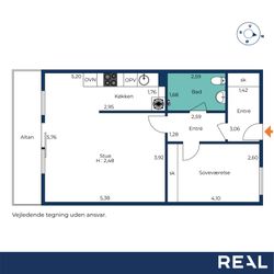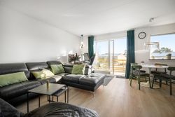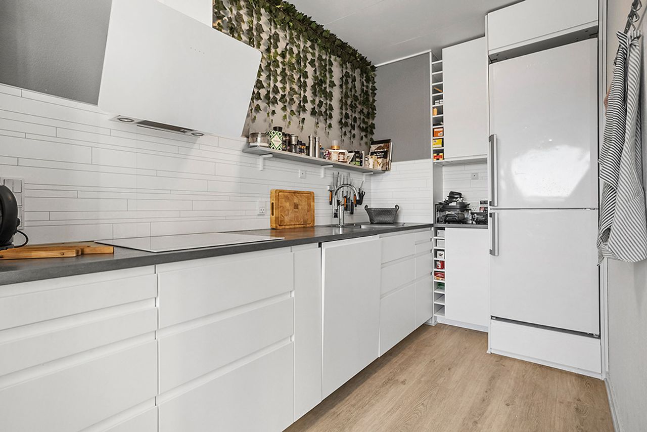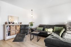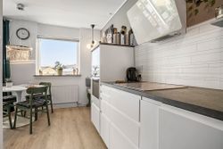 Fra trappen som fører dig op til lejlighedens rummelige entré med et 3-fløjet garderobeskab, er der endvidere adgang til et fint soveværelse med en rummelig skabsvæg. Lejlighedens store brusebadeværelse er pænt og er tillige forberedt til vaskesøjle i form af EL-installation, afløb og udsugning. - Fra entreen kommer du ind i den lyse opholdsstue, som har udgang til balkonen og også er i åben forbindelse med lejlighedens nyere køkken (2021).