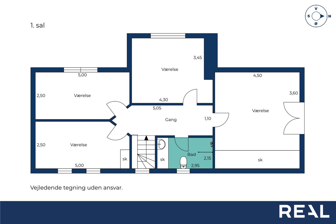 Første sal: repos, stort badeværelse, 3 rigtig gode børneværelser og stort soveværelse.