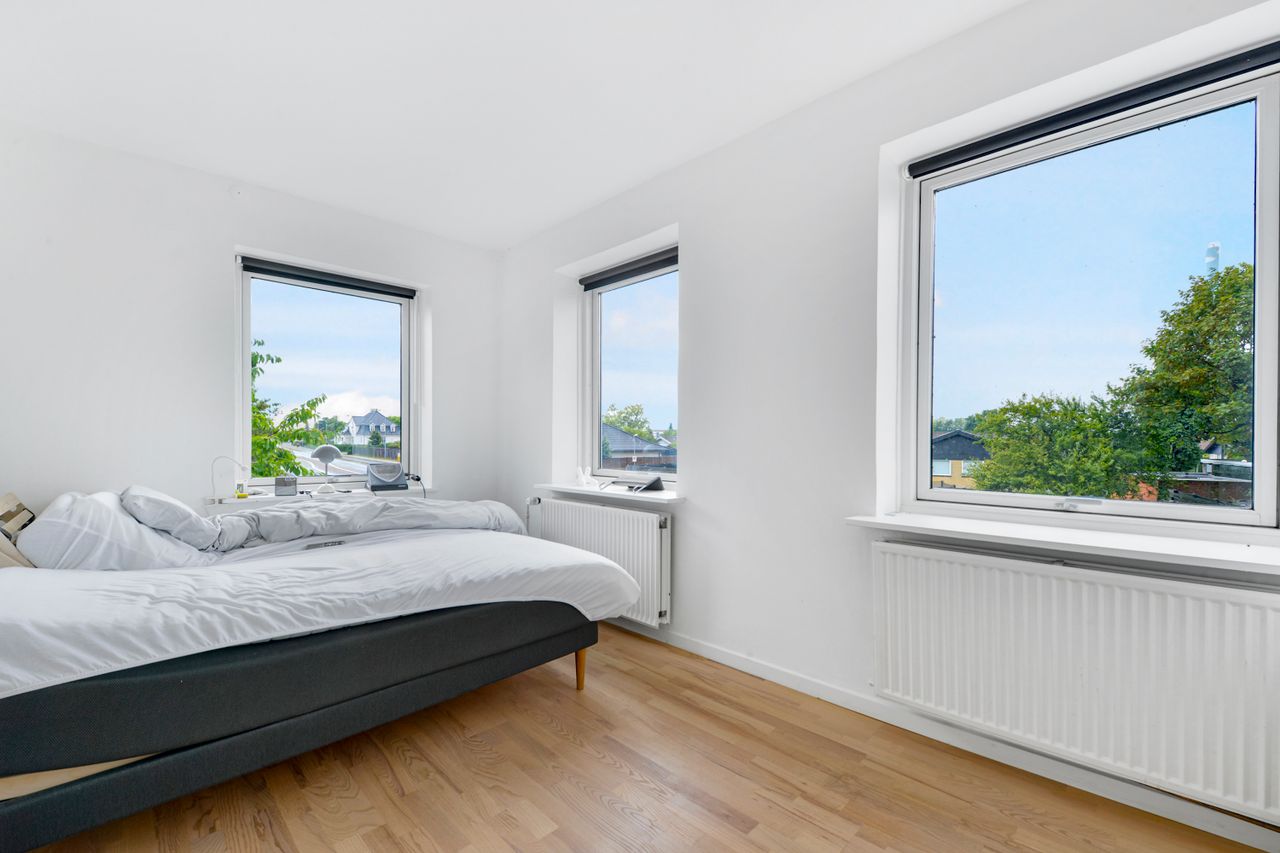Udelivet kan nydes på den solrige terrasse, og villaens beliggenhed tæt på søerne byder på smukke naturoplevelser og mange muligheder for udendørs aktiviteter. Den centrale placering giver desuden nem adgang til motorvejsnettet, og København nås på kun 20 minutter.