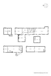 Boligen er fordelt på en lys stueetage med entré, en rummelig stue med flotte synlige hanebånd, køkken, to soveværelser, to badeværelser og adgang til en hyggelig hems. Derudover er der en selvstændig afdeling med egen indgang, et stort åbent køkken-alrum, badeværelse og soveværelse. Der er toiletter både i stueetagen og på første sal, hvilket bidrager til den funktionelle opdeling af huset. På første sal findes to værelser, der dog ikke er godkendte til beboelse.