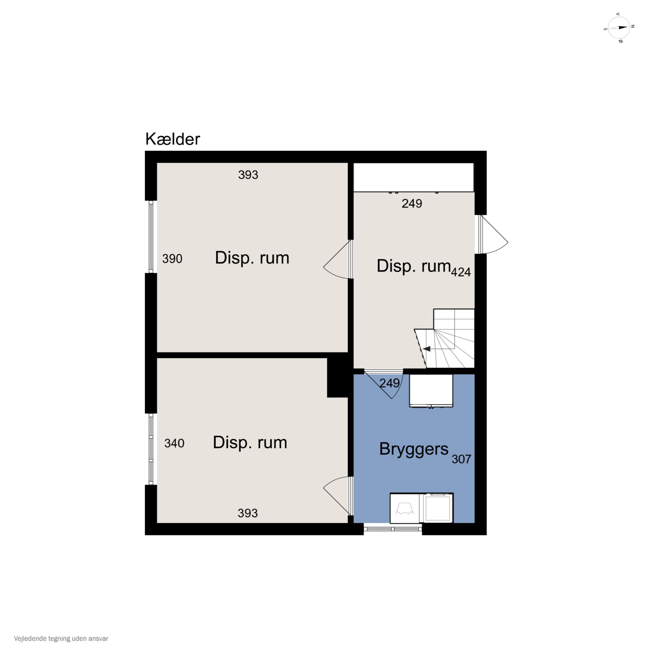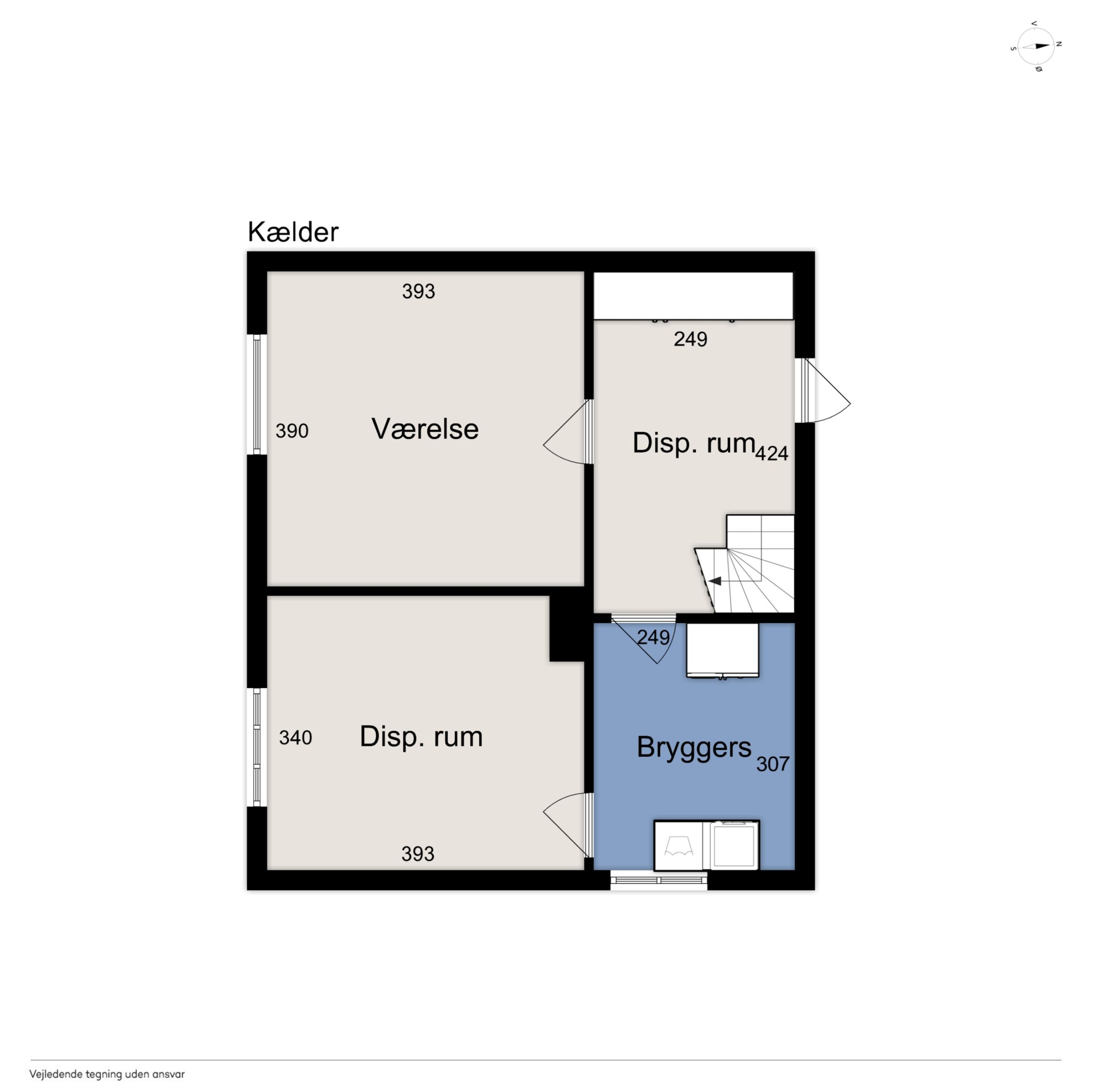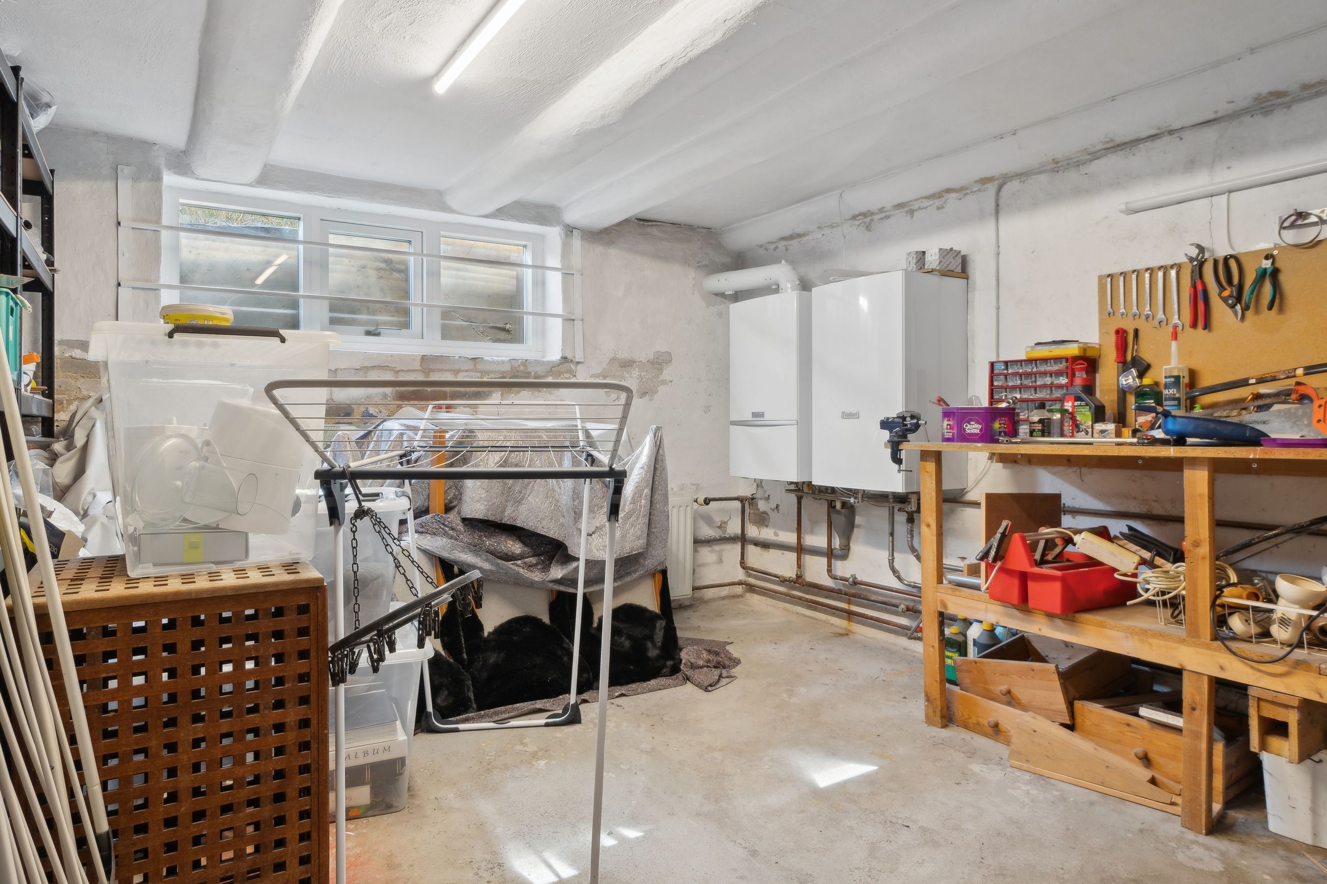 Kælder: Her finder du et bryggers / vaskerum, fyrrum med nyinstalleret fjernvarmeunit samt flere gode disponible rum.