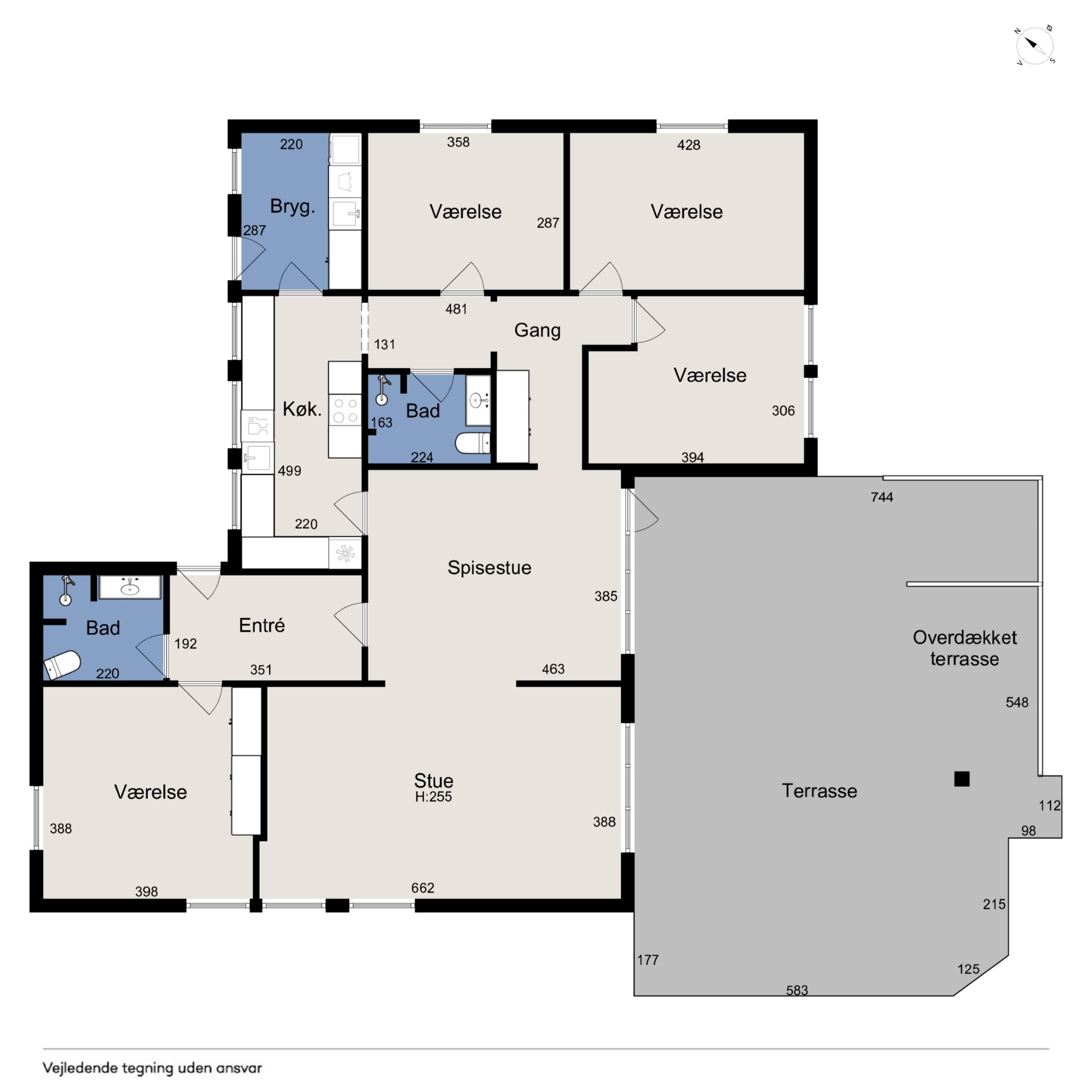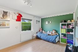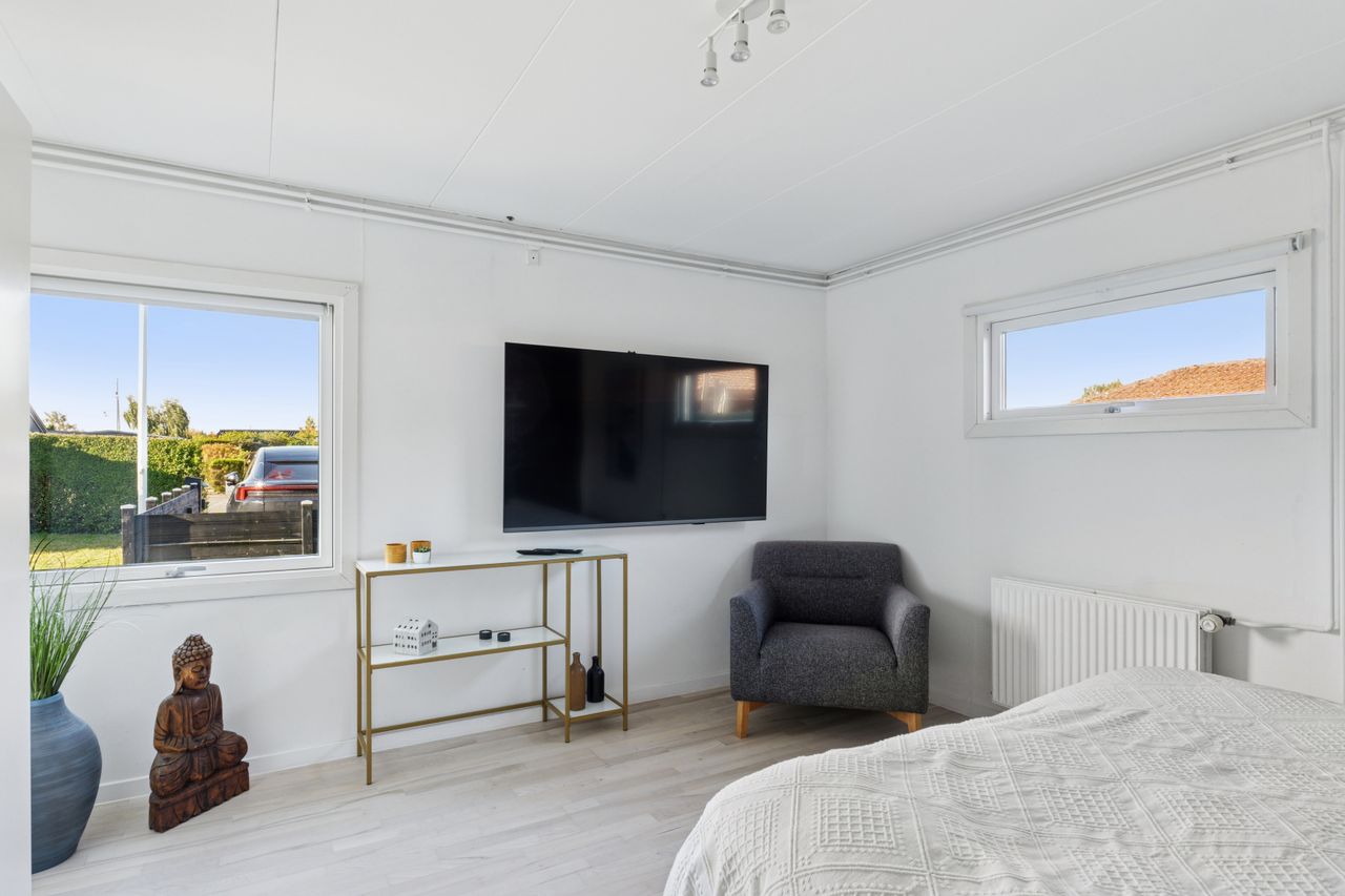 Villaen byder på hele fire rummelige værelser, som giver mange indretningsmuligheder – uanset om I har brug for børneværelser, kontor eller gæsteværelse. Hertil kommer to pæne badeværelser, begge med moderne flisevalg og god plads, så morgenrutinerne kan forløbe gnidningsfrit.