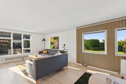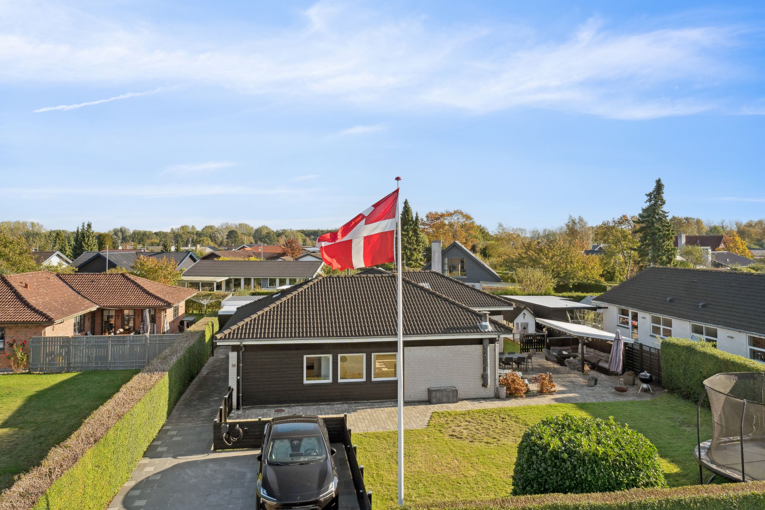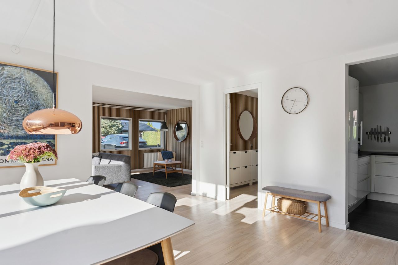 Velholdt og moderne villa, der kombinerer funktionalitet, stil og en rolig beliggenhed i et attraktivt villakvarter. Her får I et hjem, der er lige til at flytte ind i – perfekt til den pladskrævende familie, der ønsker et lyst og indbydende hjem med god plads både inde og ude.