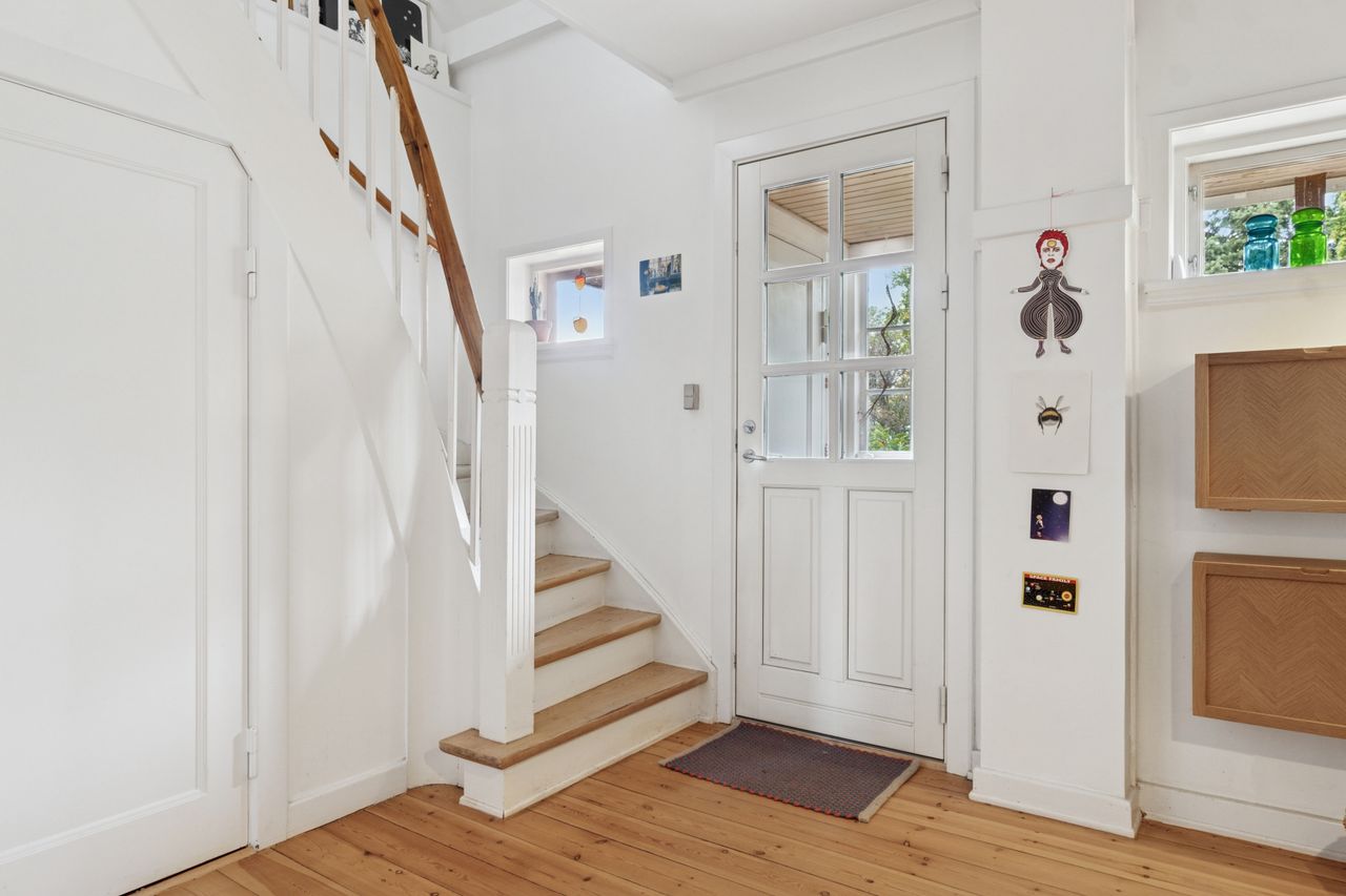 Boligen byder på 6 værelser, heraf 4 gode soveværelser på 1. sal og 3 stuer en suite i stueplan – perfekt til både familieliv og hyggelige sammenkomster. Køkkenet er flot renoveret i 2018 med en tidløs stil, og badeværelset ligger på 1. sal. Der er desuden mulighed for at genetablere et gæstetoilet i entréen.