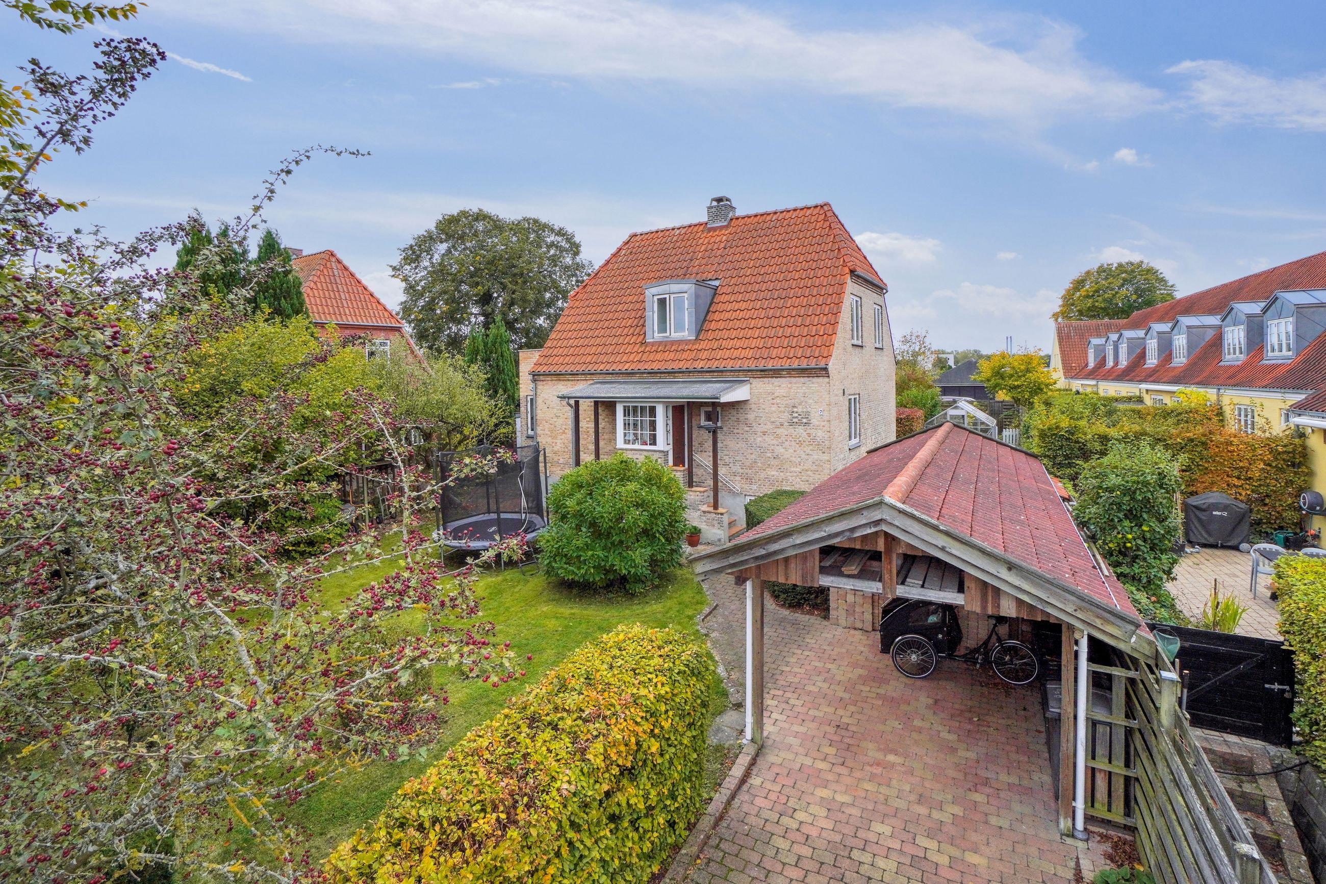 Beliggenheden er ideel – fredeligt, grønt og familievenligt med kort afstand til skole, institutioner, indkøb og transport. Samtidig når du København på under 30 minutter.