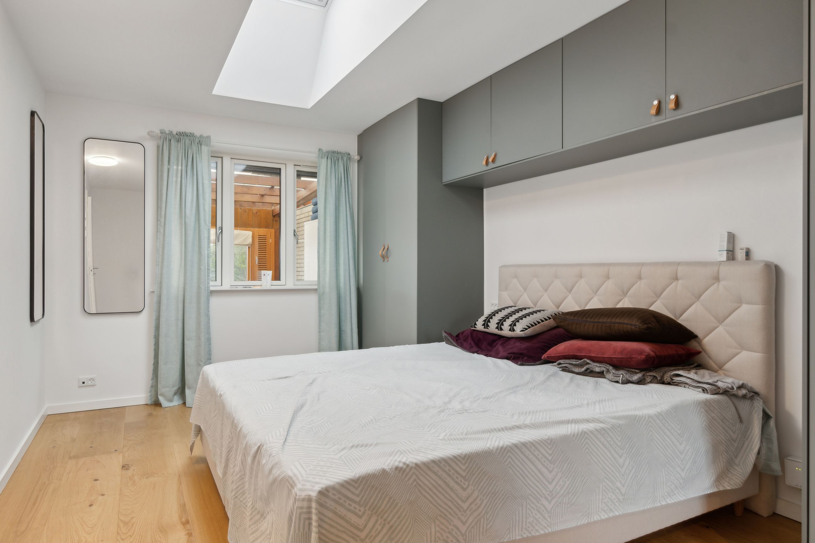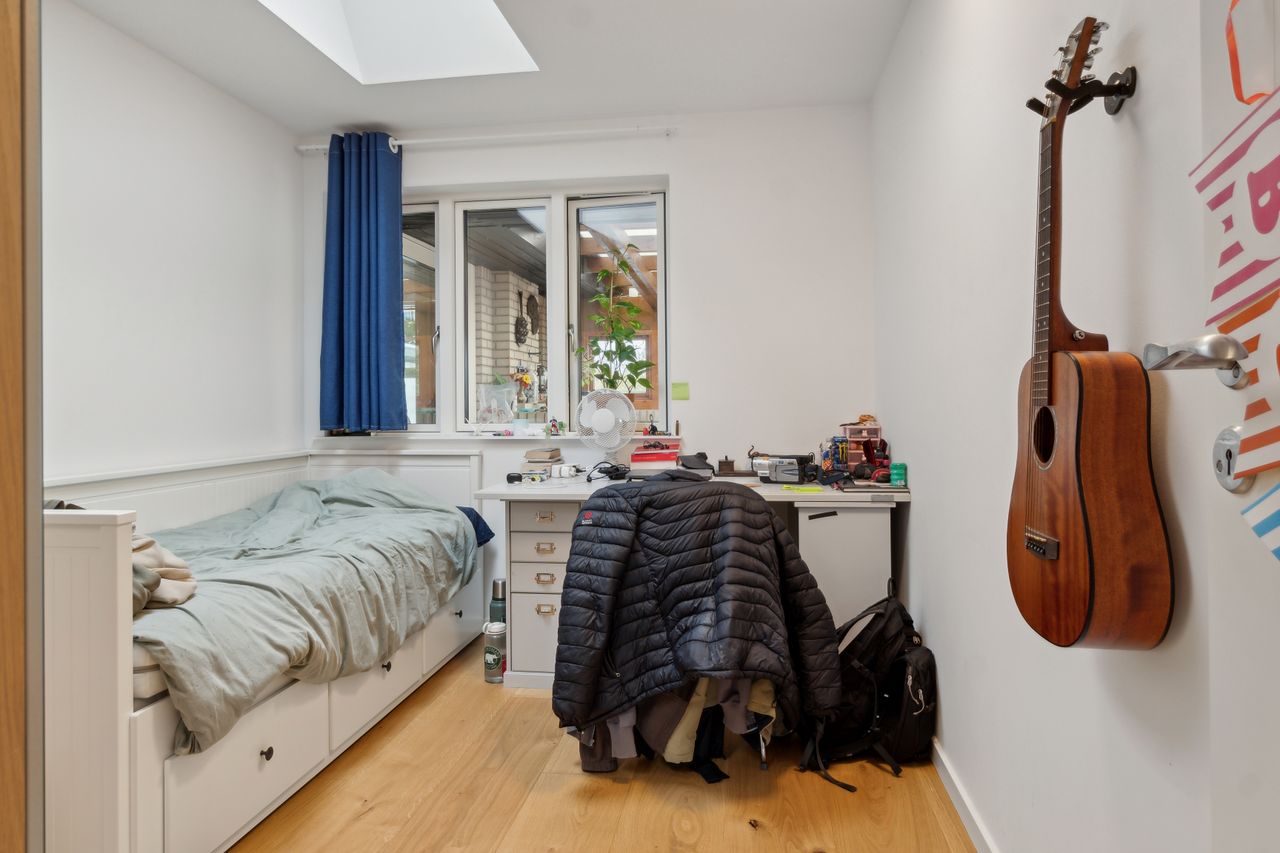 Her er tre rummelige soveværelser, alle med ovenlysvinduer, der lukker masser af naturligt lys ind og skaber