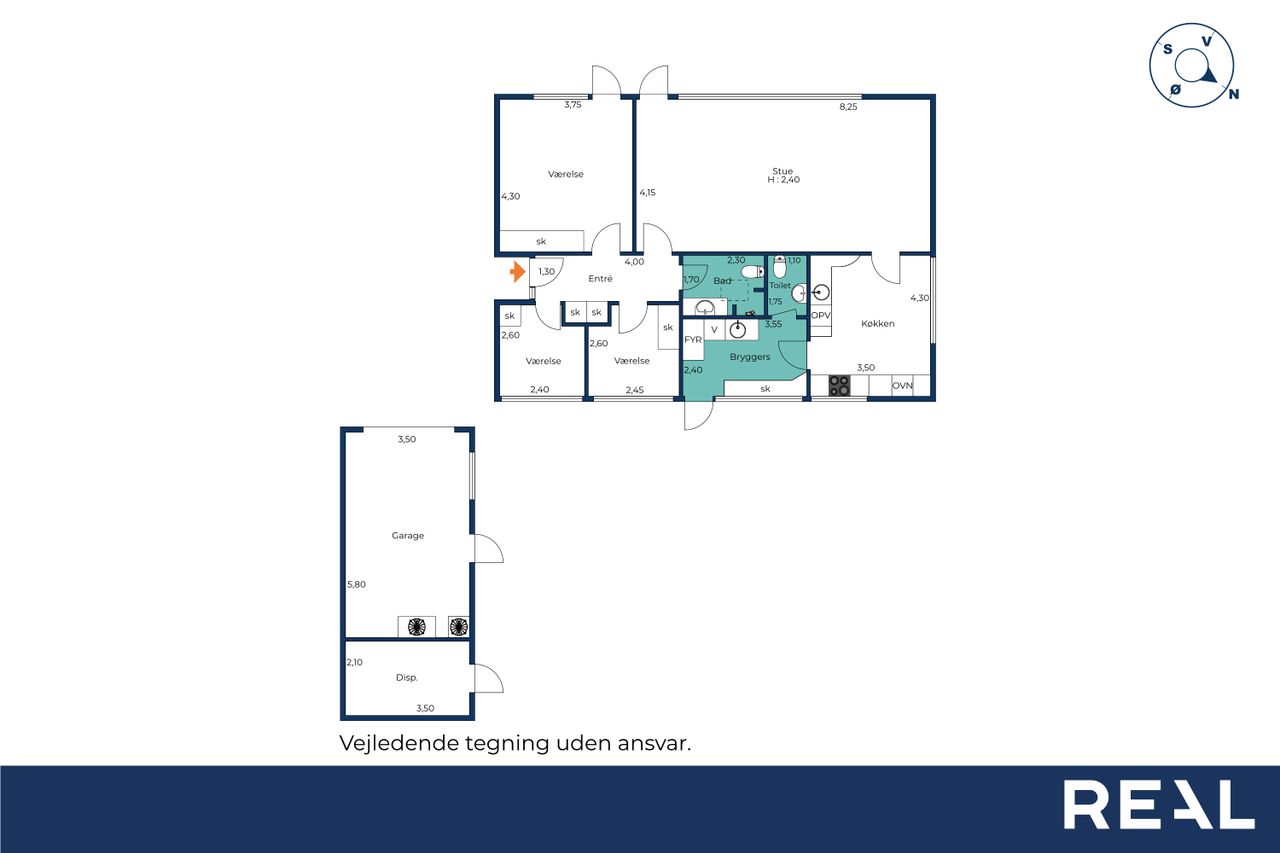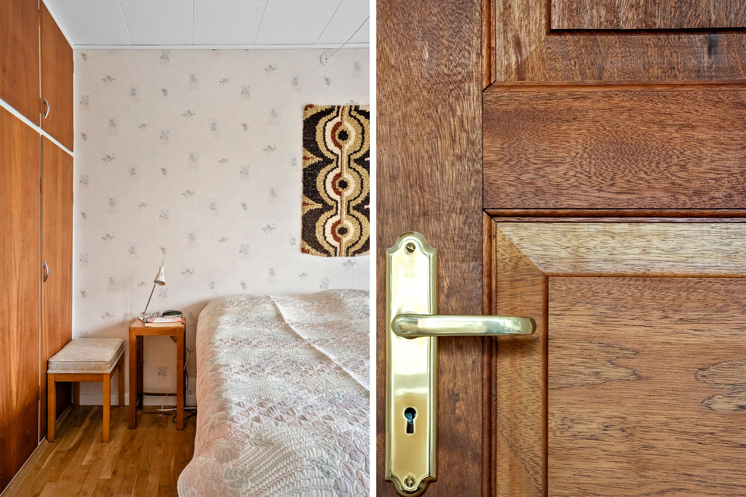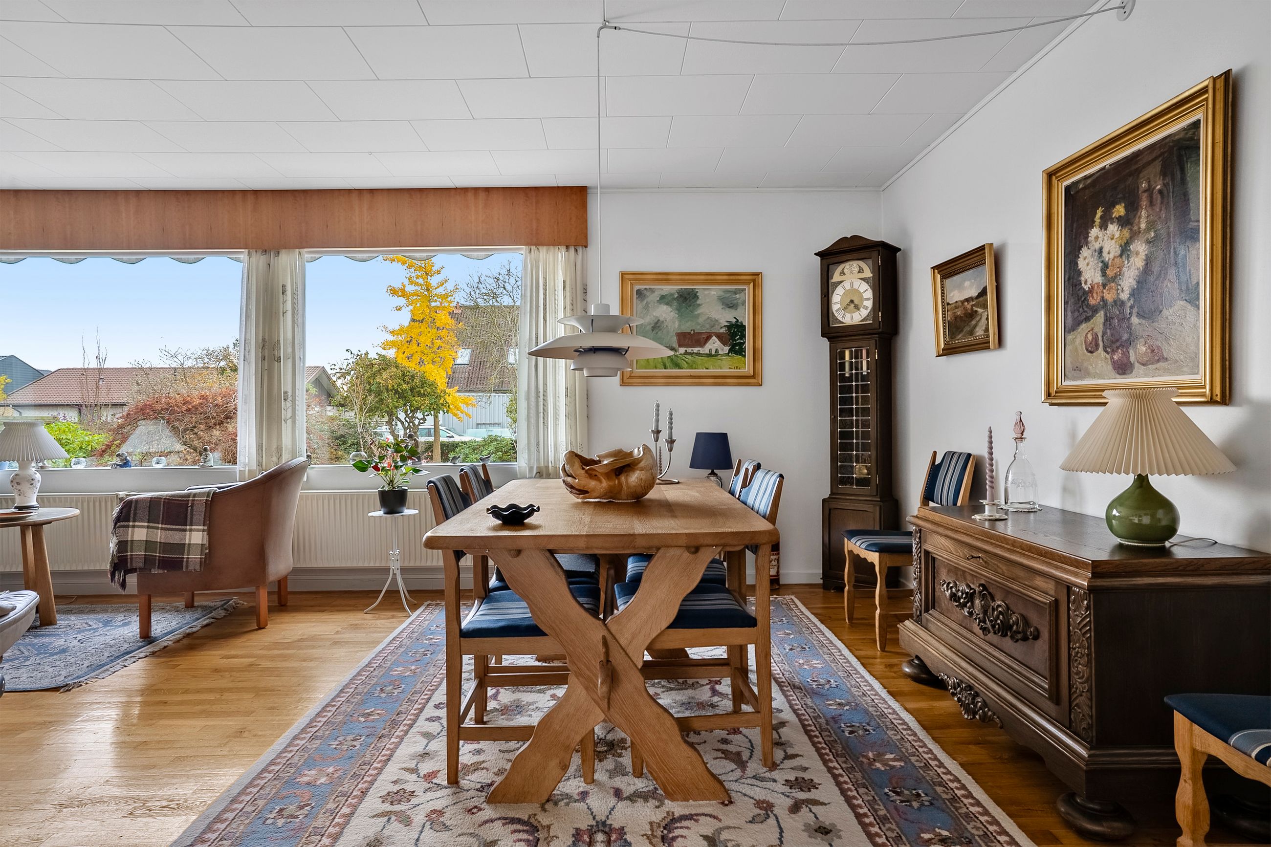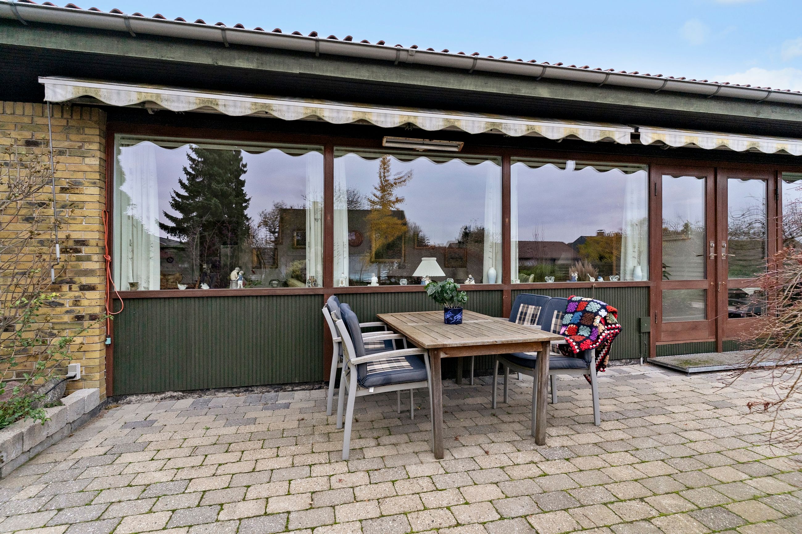 Når du træder ind i den lyse entré, mødes du af tre indretningsvenlige soveværelser samt et badeværelse med ovenlysvindue, der giver et behageligt, naturligt lys. Videre ind åbner boligen sig mod en lys og rummelig stue i åben forbindelse med spisestuen. Her strømmer eftermiddagslyset ind gennem de store vinduespartier, og både stuen, master-bedroom og bryggers har direkte udgang til haven, hvilket skaber en fin sammenhæng mellem inde- og udeliv. Fra stuen er der adgang til køkkenet, der rummer en hyggelig spiseplads og med en unik detalje, en emhætte udført i kobber. Boligen bærer i det hele taget præg af kvalitet og gedigne materialer, vinduer og døre i mahogni - både indvendigt og udvendigt, samt massivt plankegulv, hvilket giver en varm og klassisk atmosfære. I forlængelse af køkkenet findes bryggerset med udgang til den sydvendte have samt et toilet med afløb, som giver mulighed for at etablere et ekstra badeværelse, hvis behovet opstår.