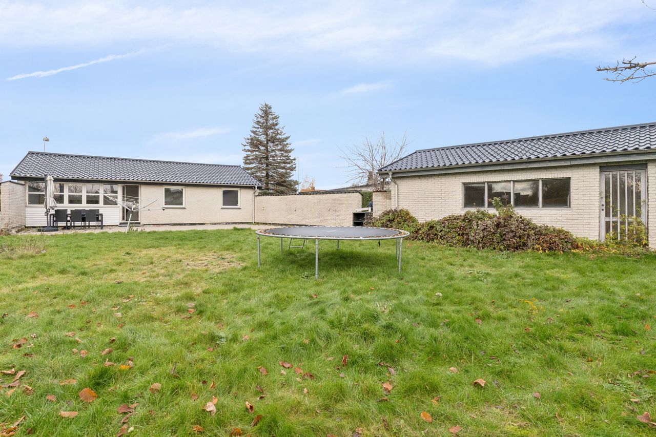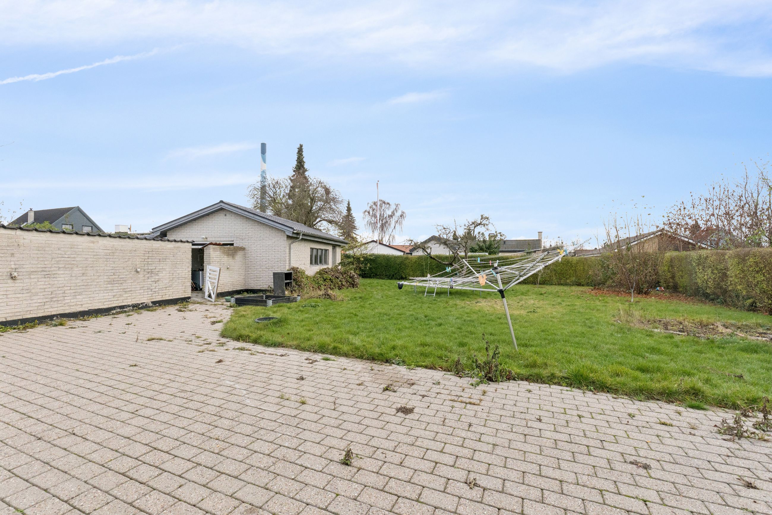 Villaen er beliggende på en rummelig grund på over 900 m2, hvilket giver gode muligheder for tilbygning eller andre boligudvidelser. Placeringen på grunden er optimal med en sydvendt have, minimal indkig og et fredeligt miljø, da huset er trukket godt tilbage fra vejen. Den lange indkørsel giver rigelig plads til parkering, og dertil kommer en garage.