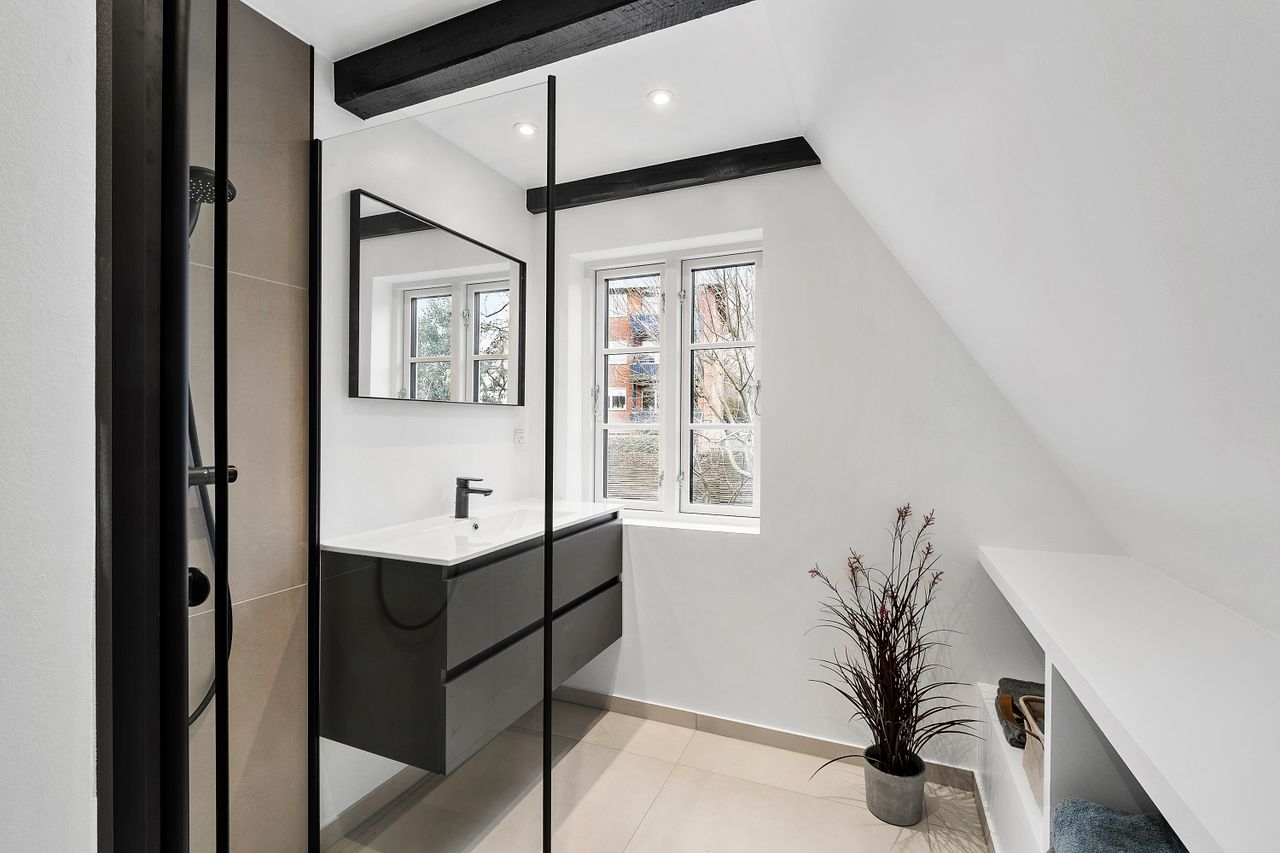 Hjemmet er gennemgribende renoveret med sans for detaljen og materialevalg, hvilket betyder, at boligen fremstår indflytningsklar uden behov for større istandsættelser. De to badeværelser gør hverdagen nem – både for familien og for gæster.