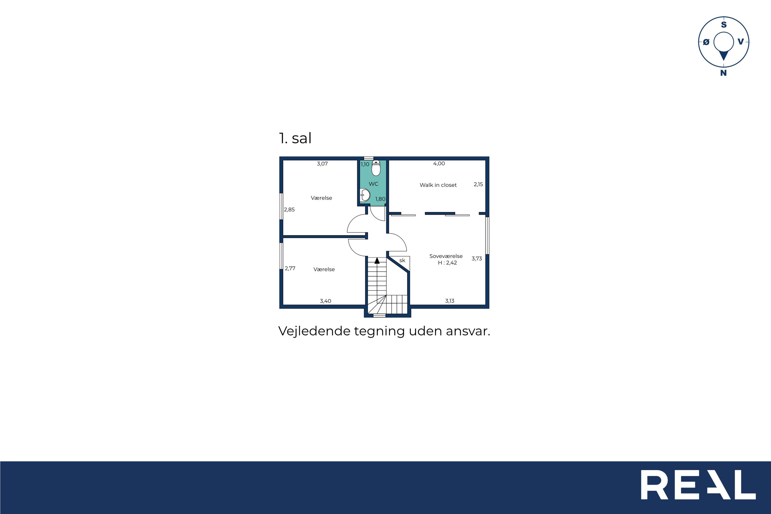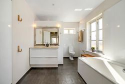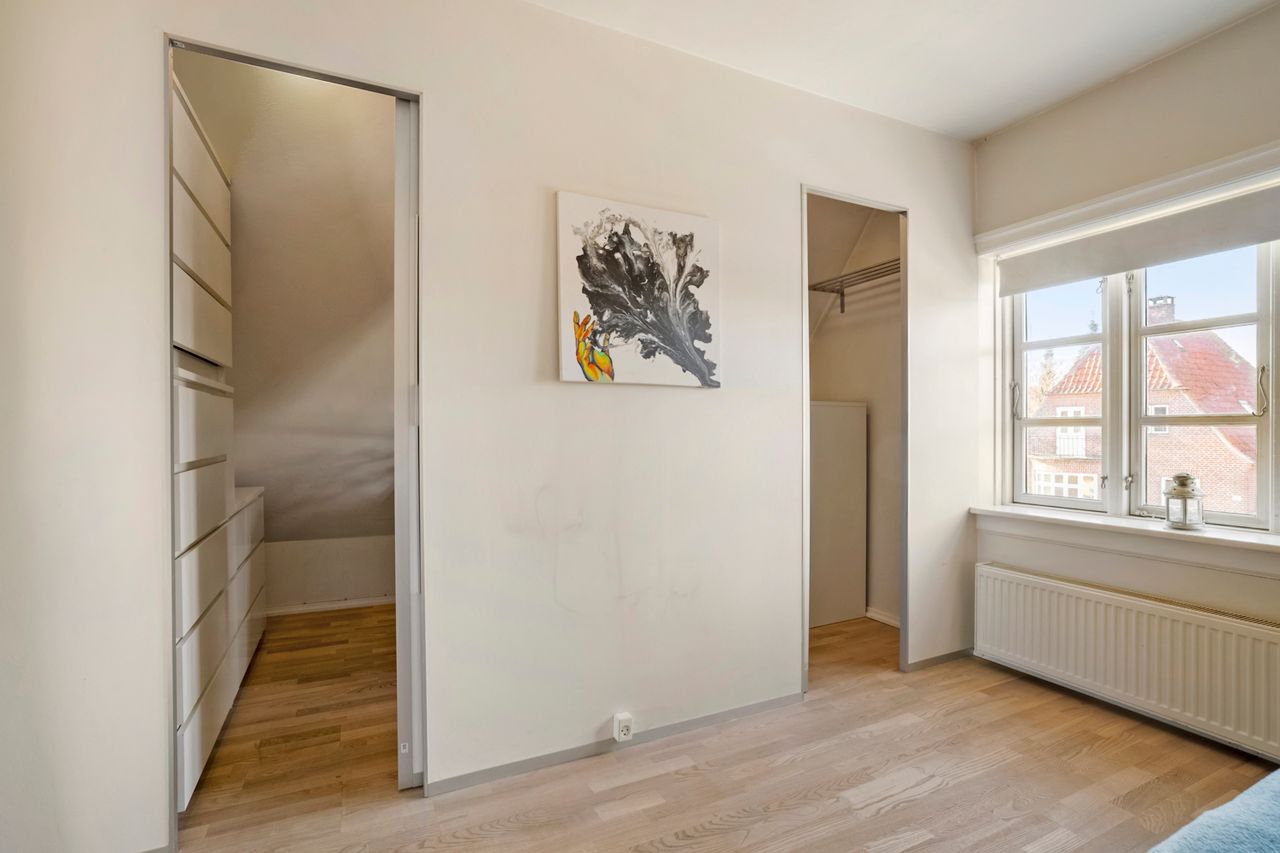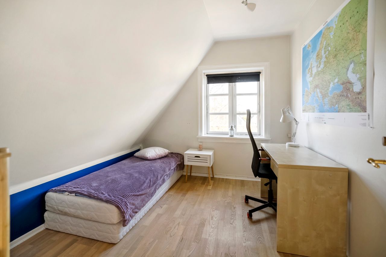 På førstesalen finder I en velfungerende værelsesafdeling med flere gode værelser samt et soveværelse med walk-in-closet – ideelt til familien, der ønsker både børneværelser, kontor eller gæsteværelse. Herudover er der et ekstra toilet.