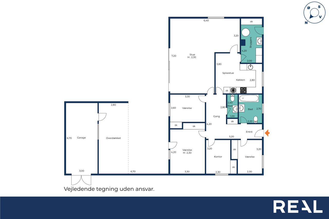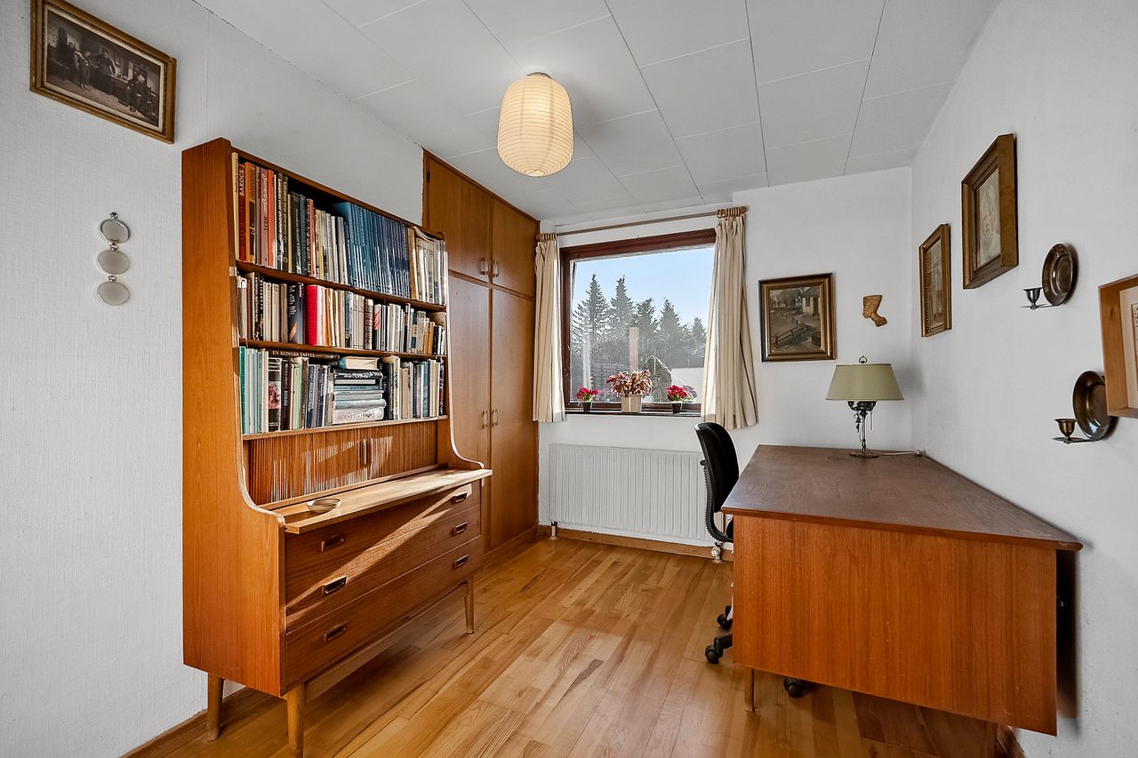 Planløsningen rummer 4 værelser, som kan indrettes fleksibelt – hvad enten behovet er børneværelser, kontor eller hobbyrum. Her er med andre ord et godt udgangspunkt for familien, der ønsker at sætte sit eget præg.