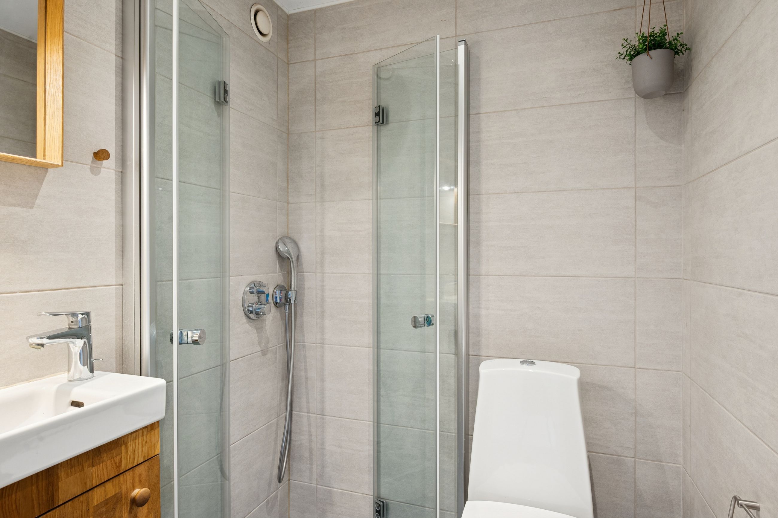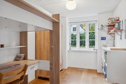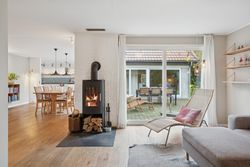 Stor stue med åbent køkken. Hygge/fjernsynsstue i delvis åben forbindelse med stuen. Brændeovn. Stort bryggers i direkte forbindelse med køkken.. Soveværelse, stort badeværelse og børneværelse.