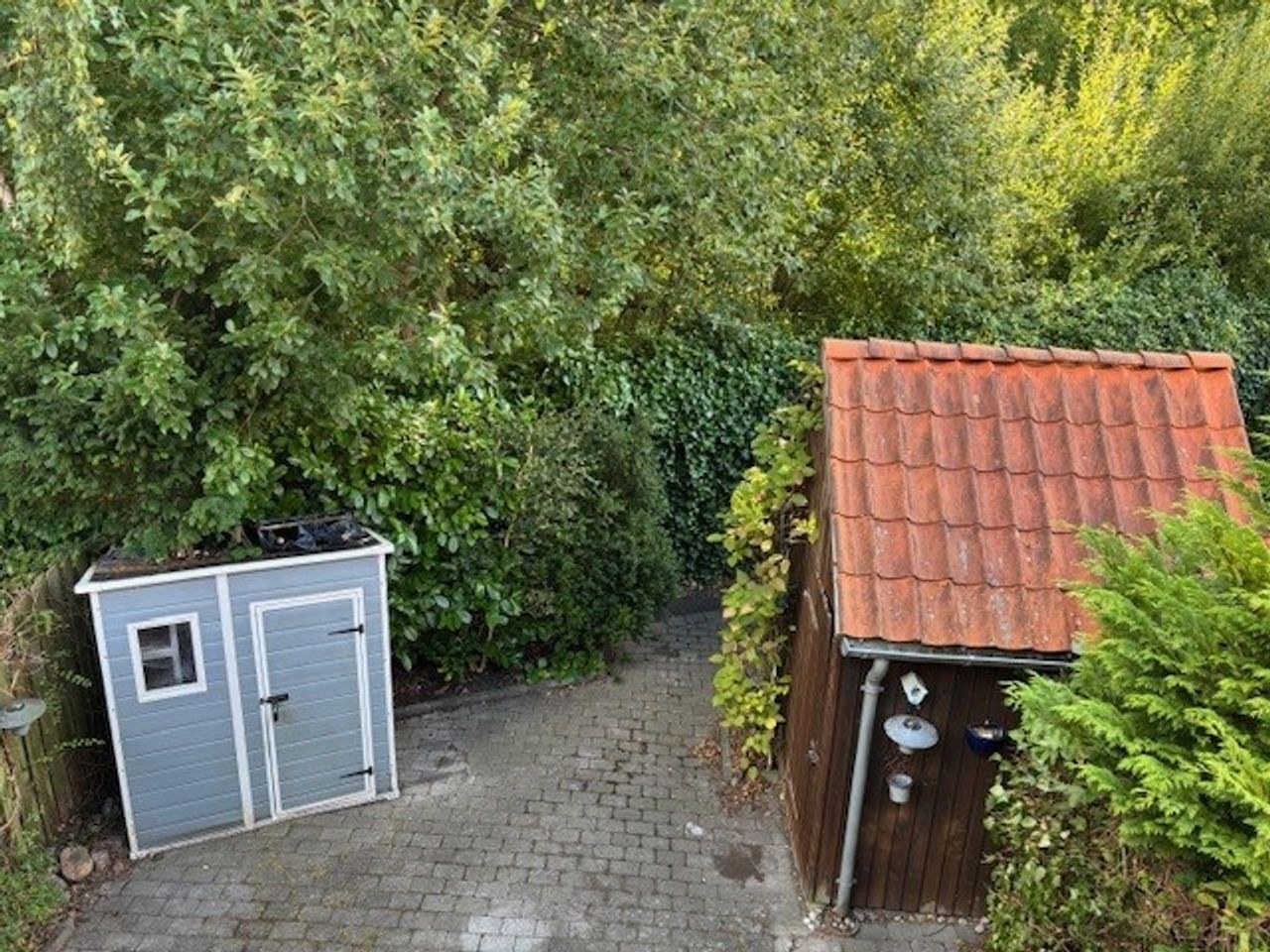 Fra stuen er der direkte udgang til en dejlig lille vestvendt have med terrasse – et skønt uderum til sommerens aftener og hyggelige stunder. Til boligen hører også et praktisk udhus/skur til opbevaring, og der er parkeringsplads lige ved ejendommen.