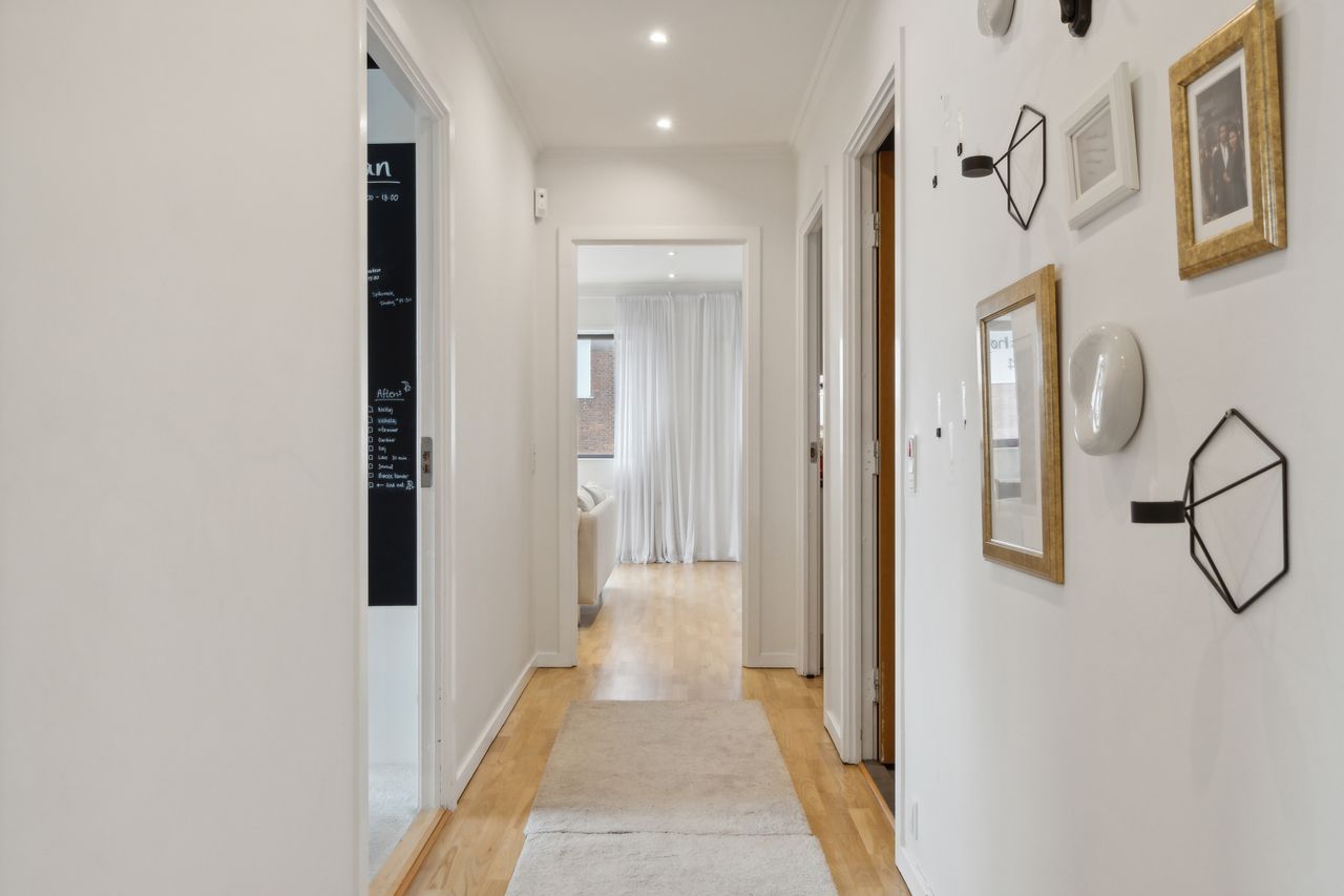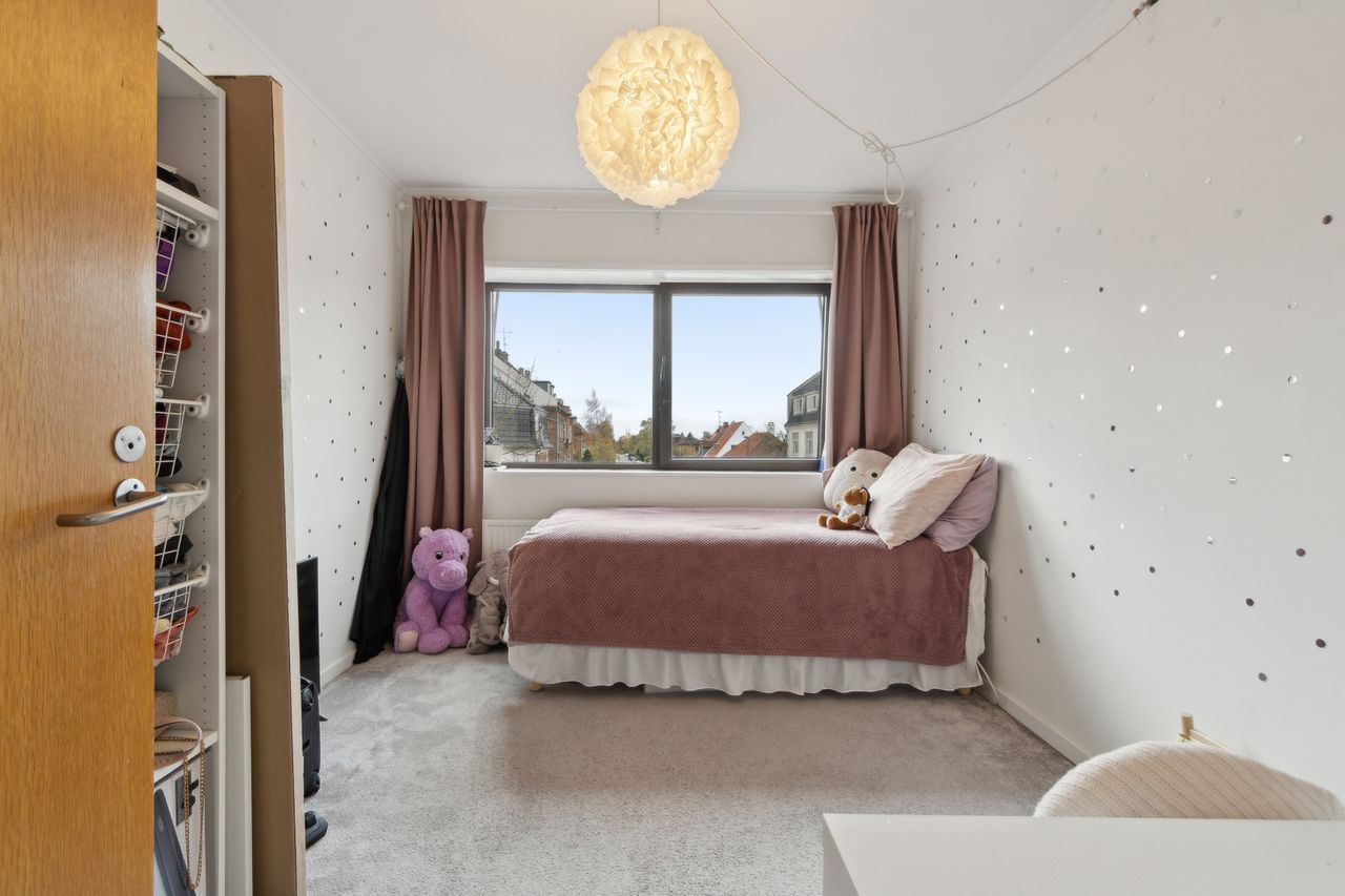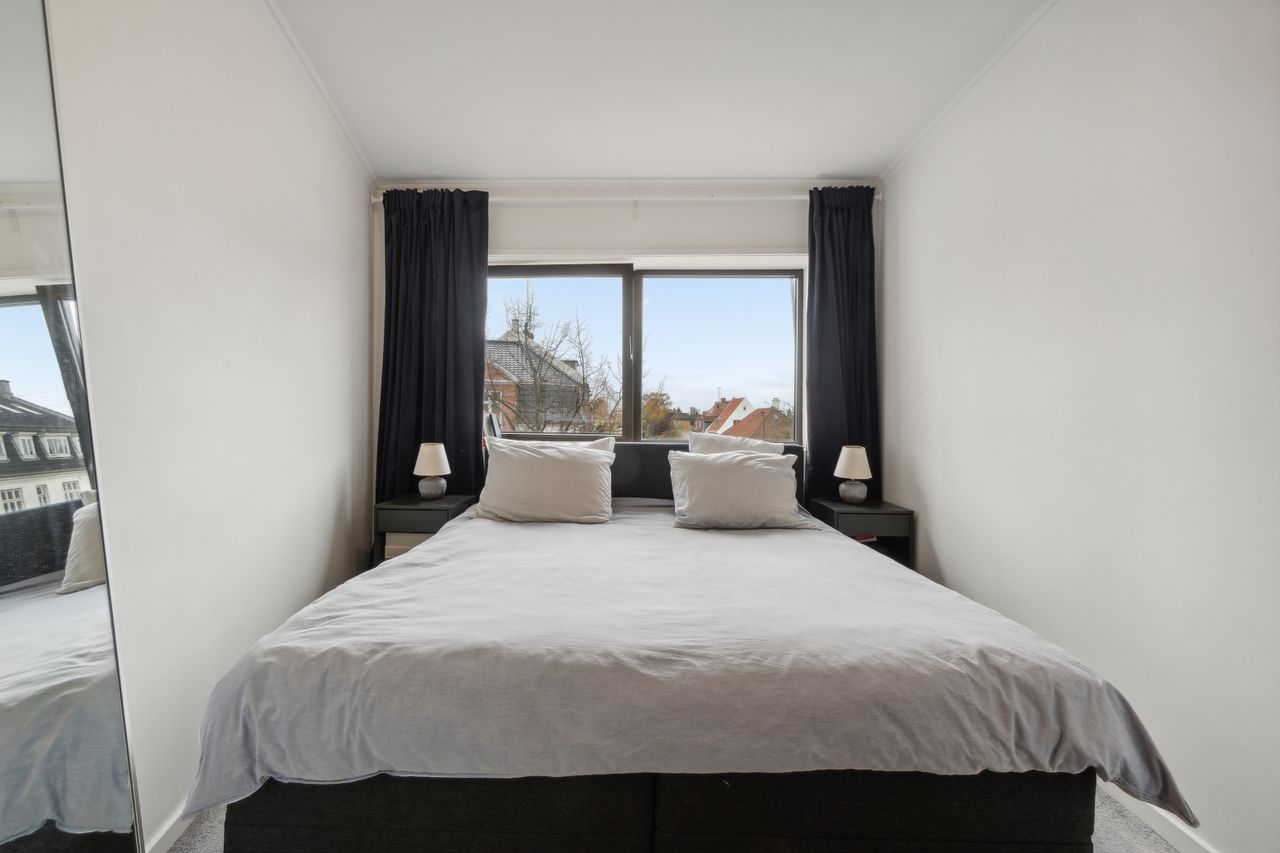Lejligheden indeholder tre soveværelser, med et godt lysindfald. Et skønt renoveret badeværelse der fremstår i stilrent design med væghængt toilet og vaskesøjle.