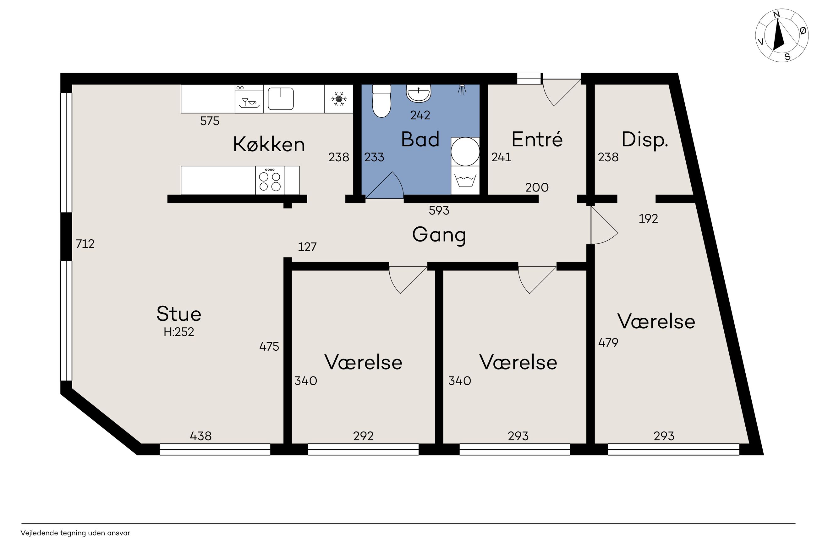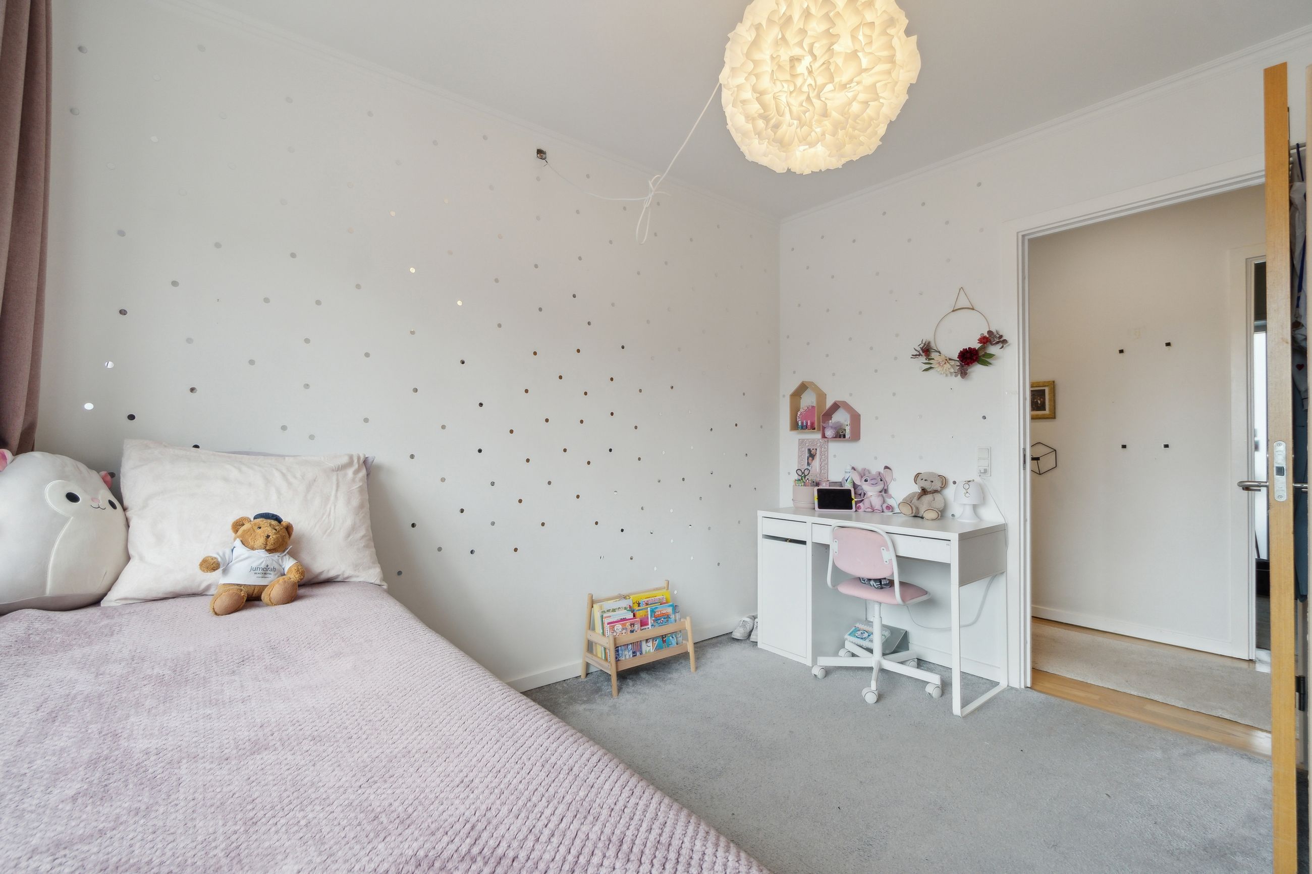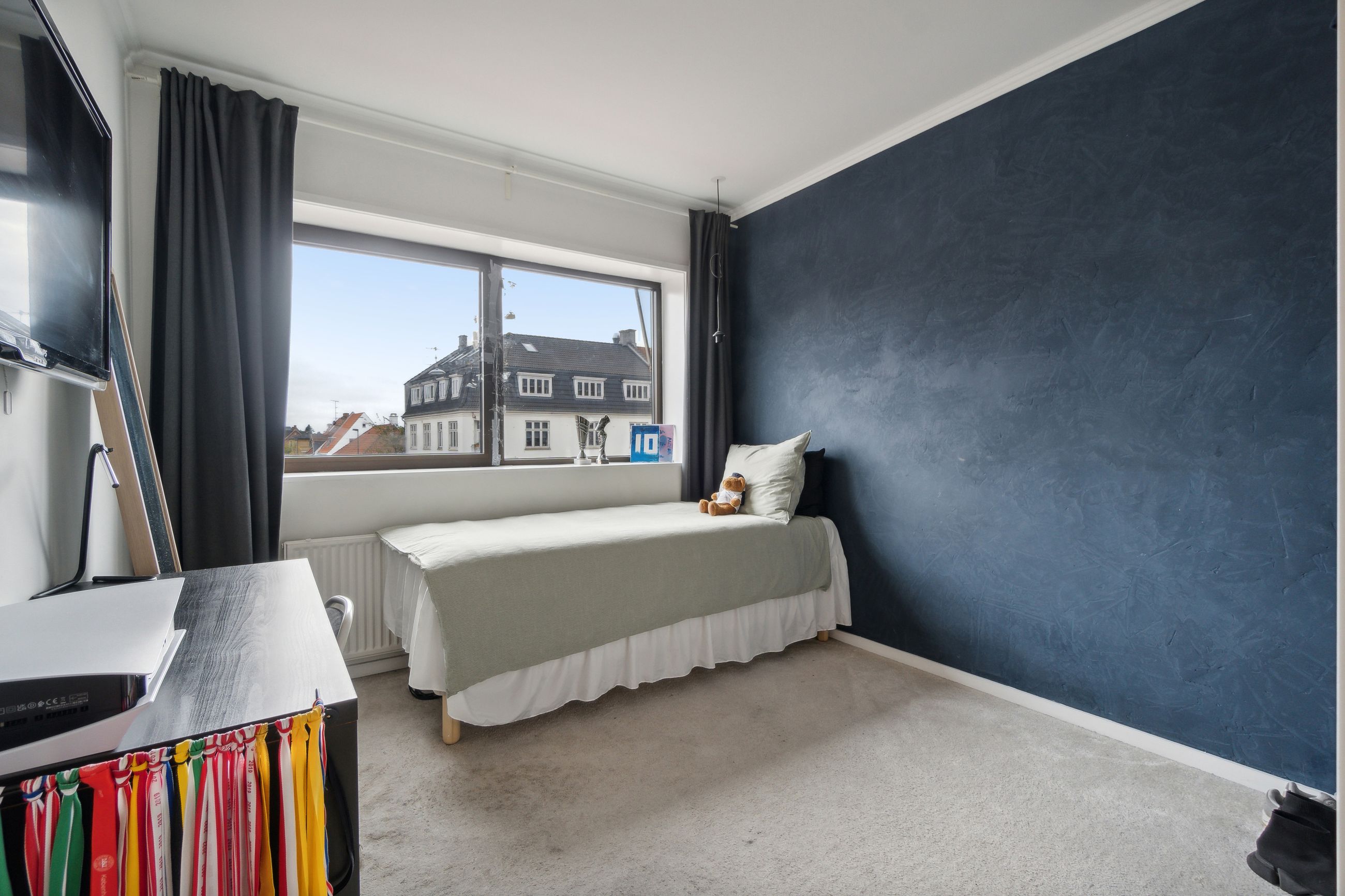 Lejligheden indeholder tre soveværelser, med et godt lysindfald. Et skønt renoveret badeværelse der fremstår i stilrent design med væghængt toilet og vaskesøjle.