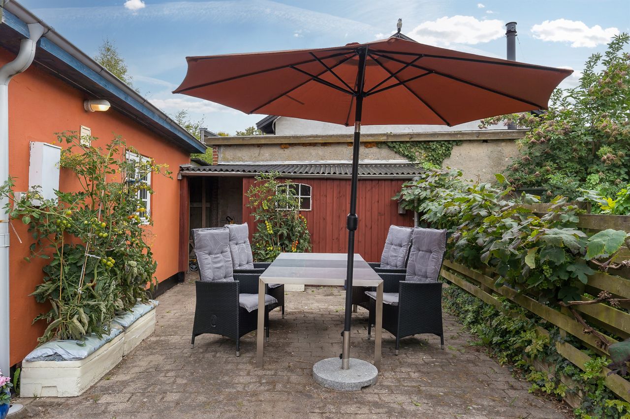 Ejendommen byder ligeledes på både skur og carport.
