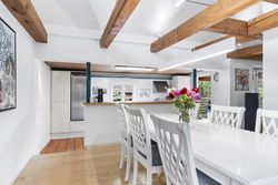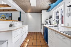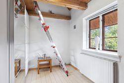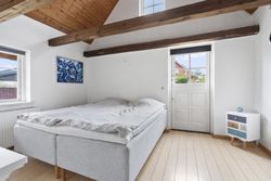 Det hyggelige køkken ligger i forskudt, men åben forbindelse til opholdsstuen og skaber en naturlig ramme om både dagligdag og gæster. Derudover byder boligen på to gode børneværelser, begge med hems. Herudover forældresoveværelse med direkte udgang og hvor der ligesom stuen, er loft-til-kip og fritliggende bjælker samt et nyt gavlvindue fra 2022, hvilket giver et flot lysindfald og en rummelig fornemmelse. Badeværelse med gulvvarme, som fremstår pænt og velholdt og opført i 2007. Der er ligeledes gulvvarme i entré.