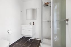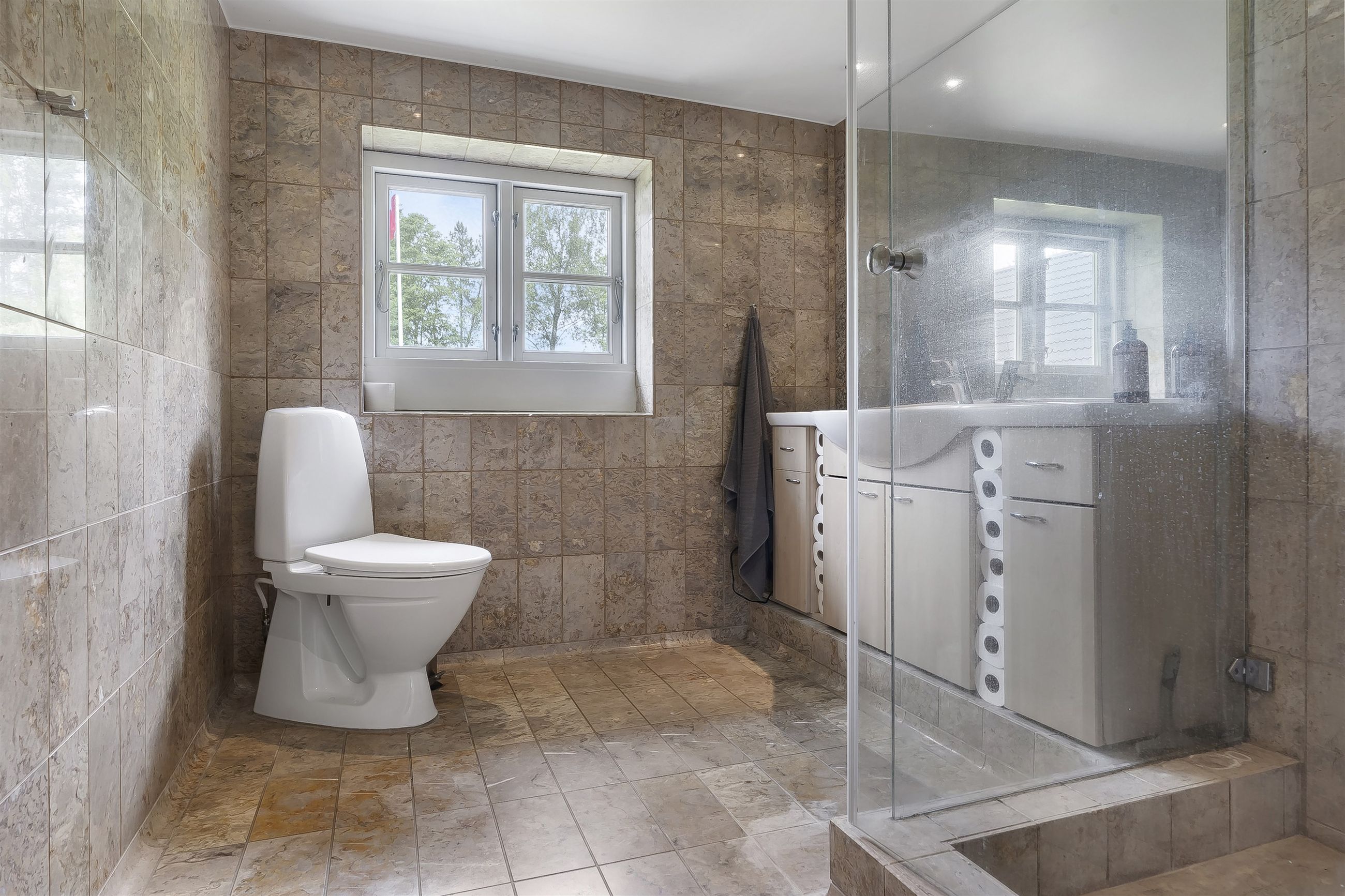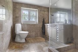 Det ene af de to badeværelser i ekstra bygningen, mangler brusenichen at blive færdigetableret.