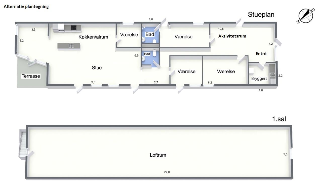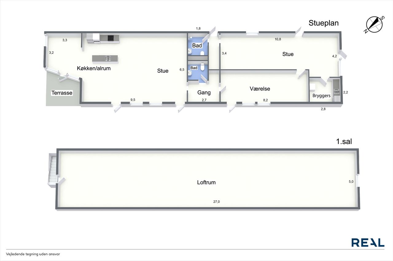 Ejendommens første sal byder ydermere på 96 m2 uudnyttet loftrum.