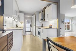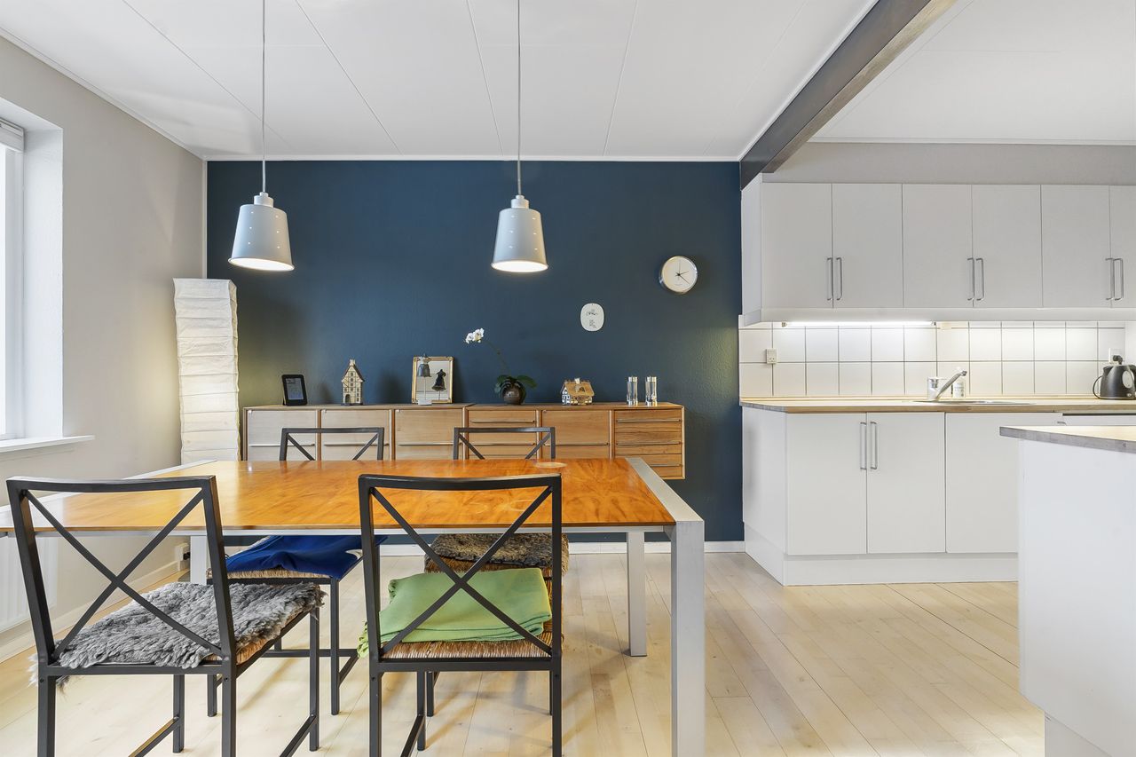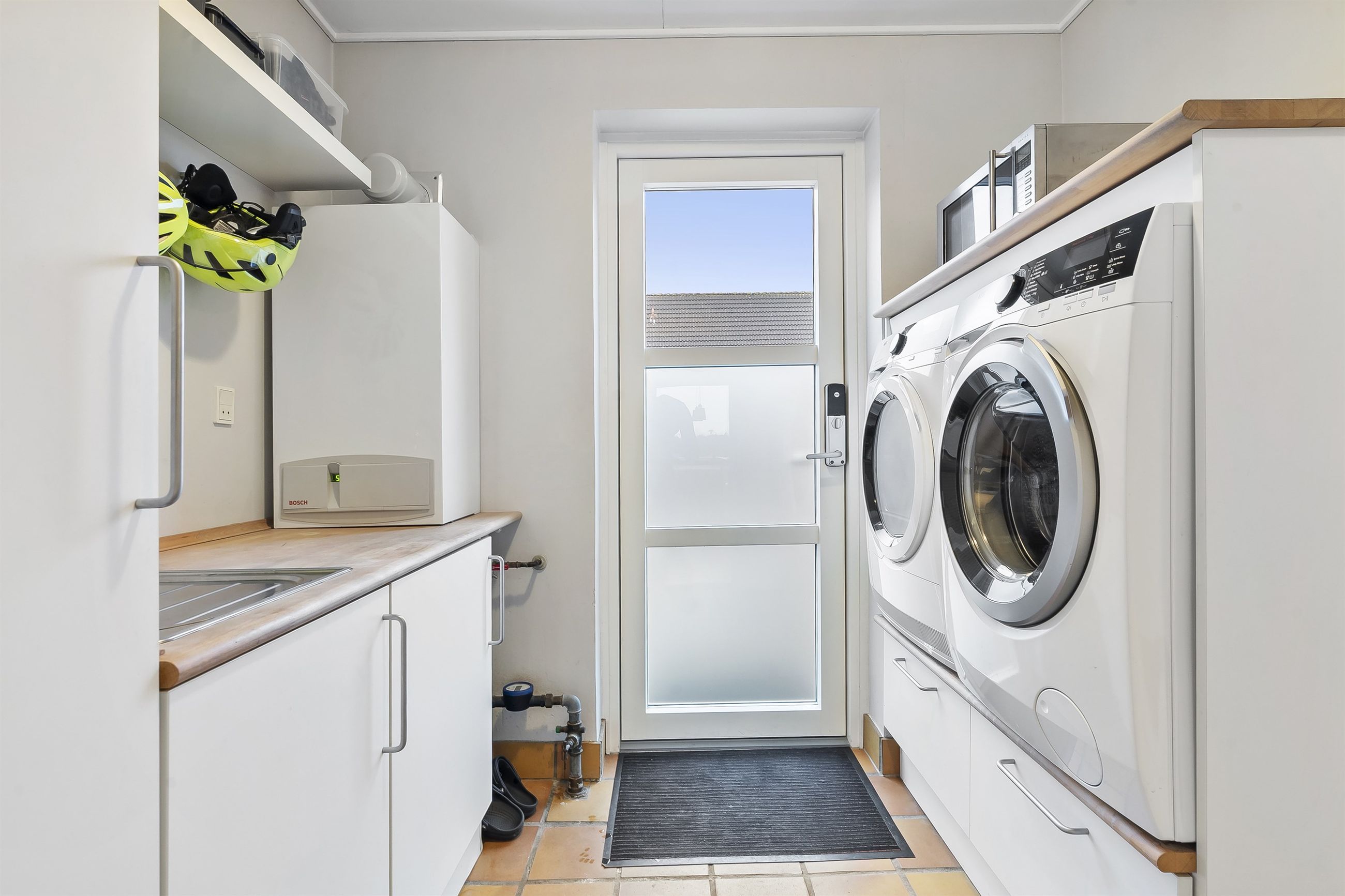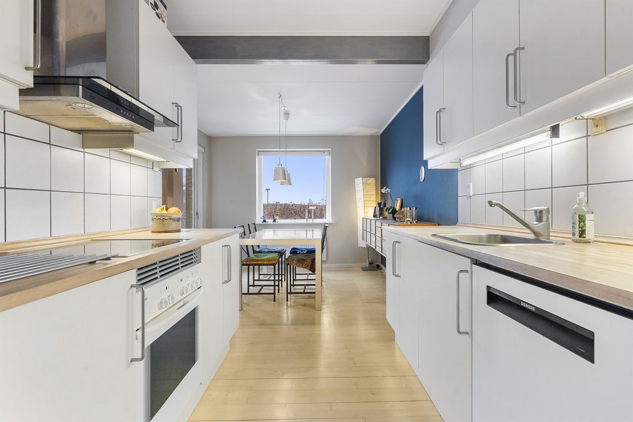 Ejendommen indeholder: Rummelig entre med trappe til 1. sal, gæstetoilet, dejlig opholdsstue med flot lysindfald fra store vinduespartier og udgang til terrasse/flisebelagt have. Åbent køkken i forbindelse med spiseafdelingen/opholdsstue. Køkken indeholder alt i hårde hvidevarer.