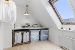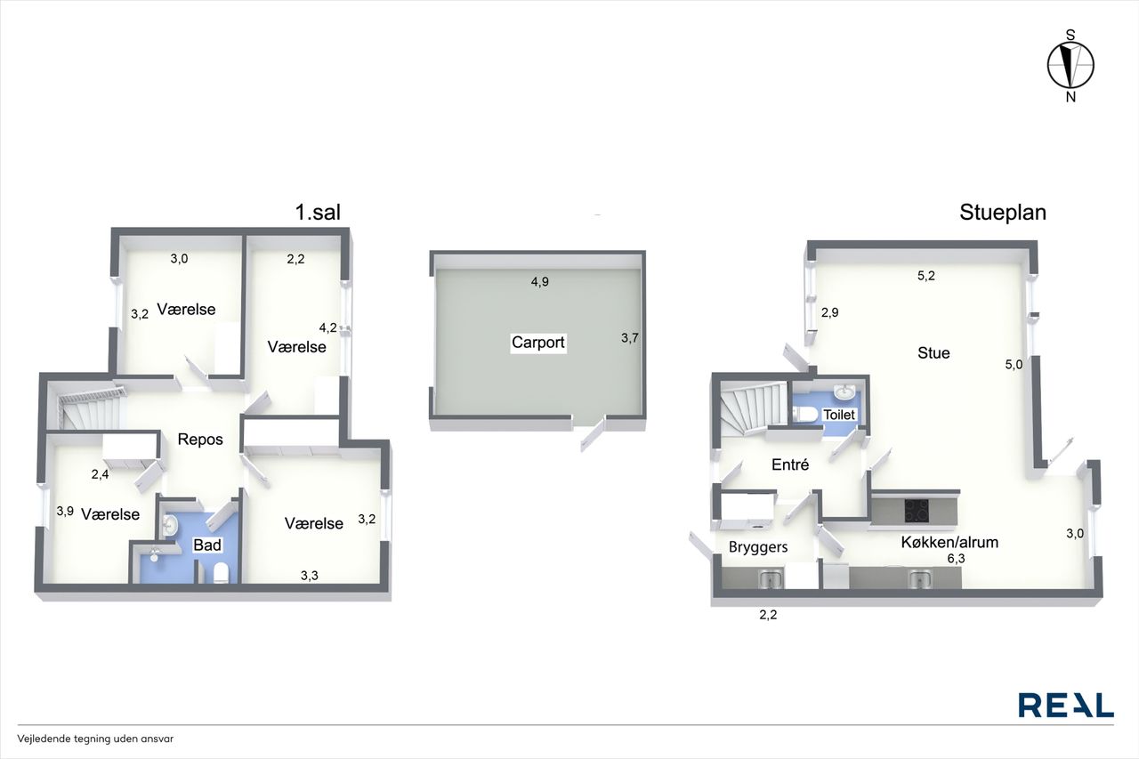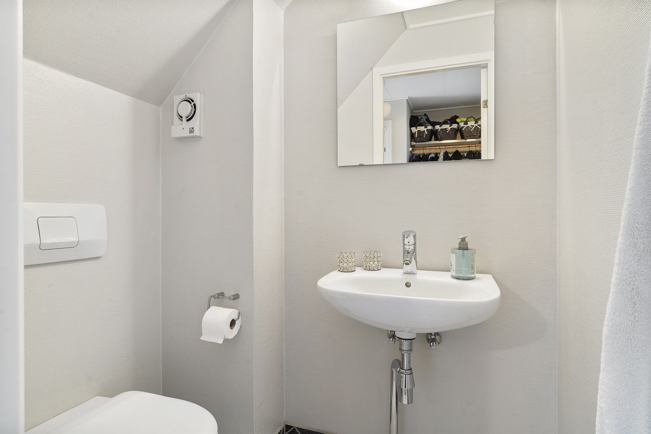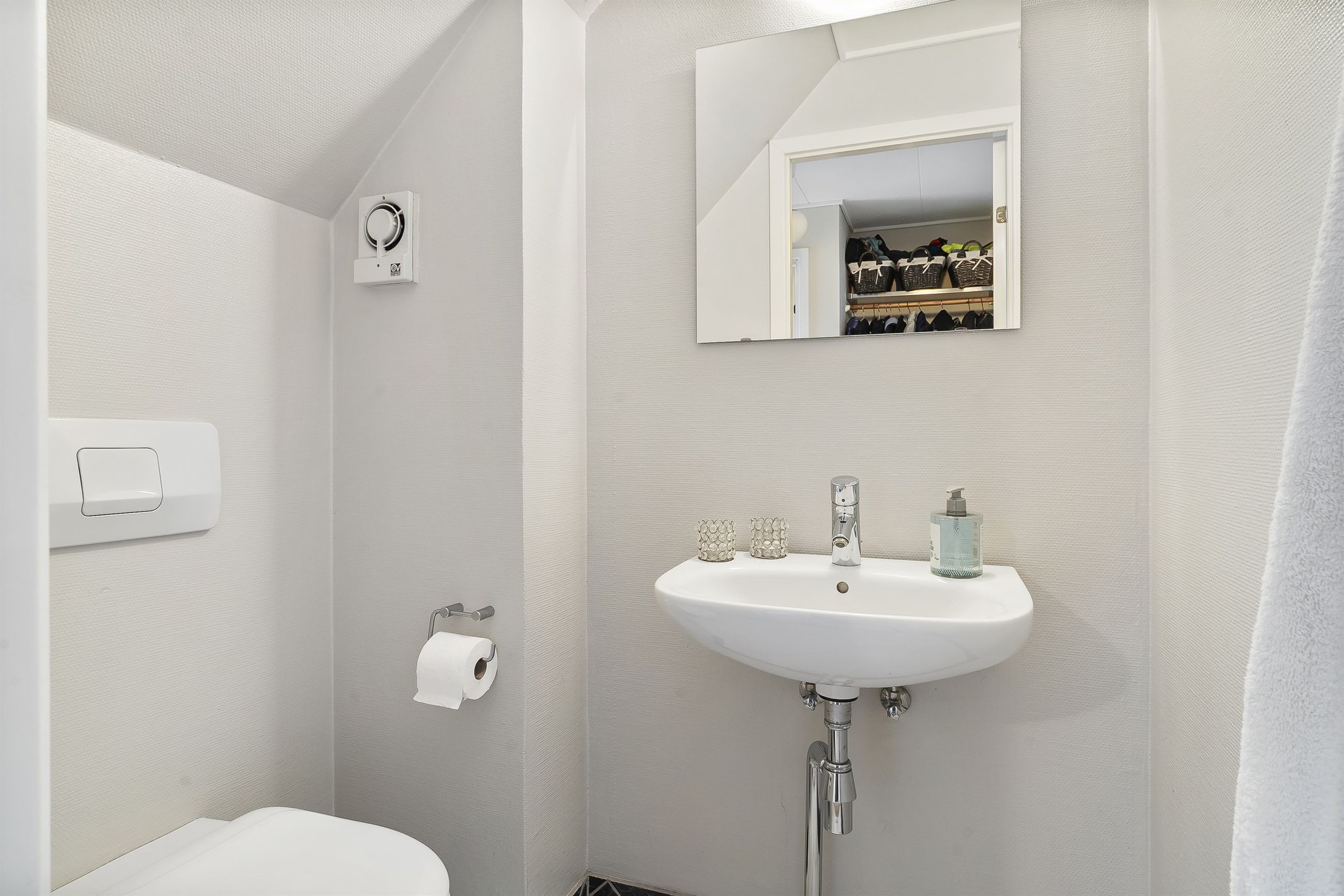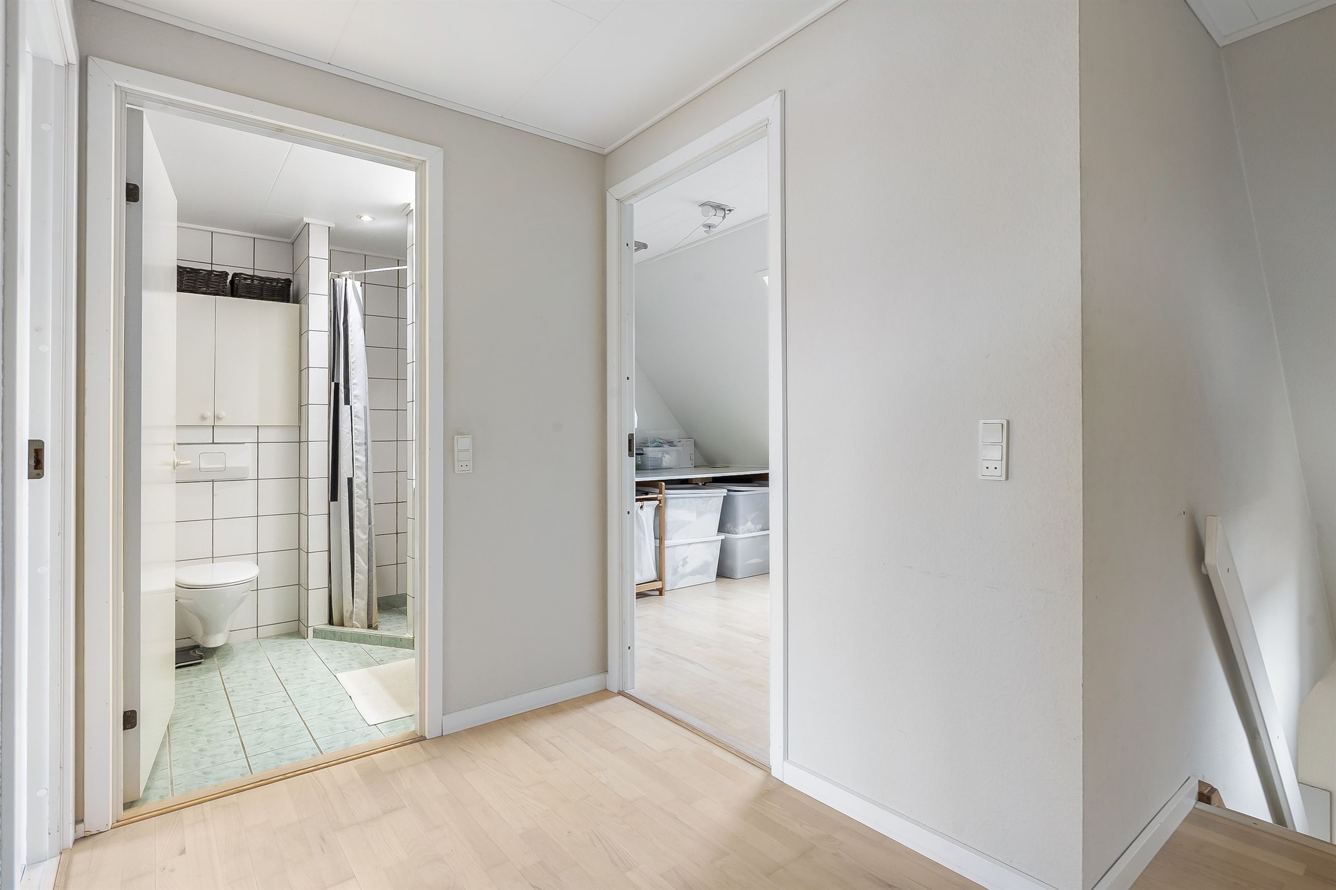 1. sal: repos med adgang til stort loftsrum, hele tre gode børneværelser, stort forældresoveværelse, flisebadeværelse med bruseniche.