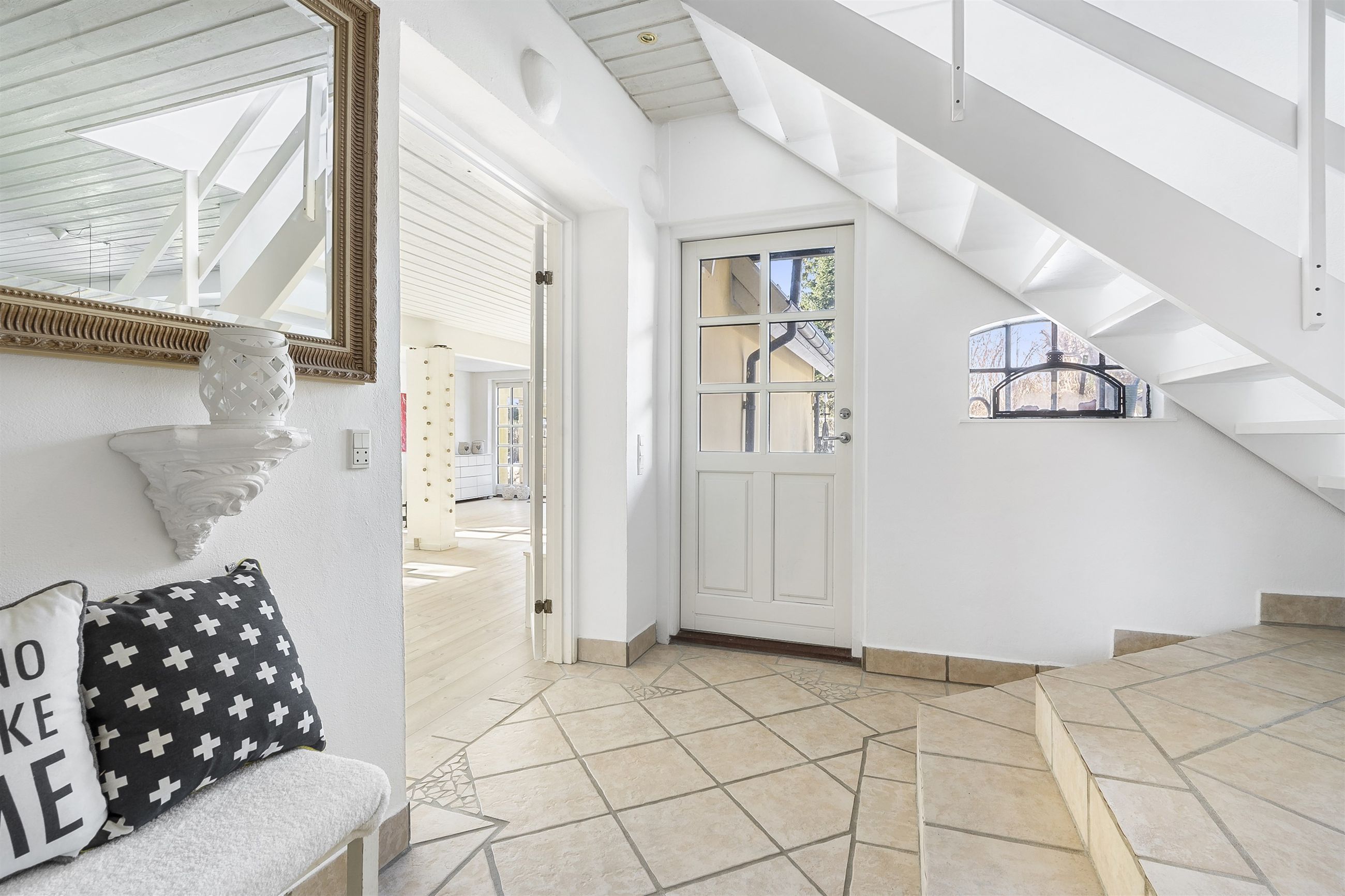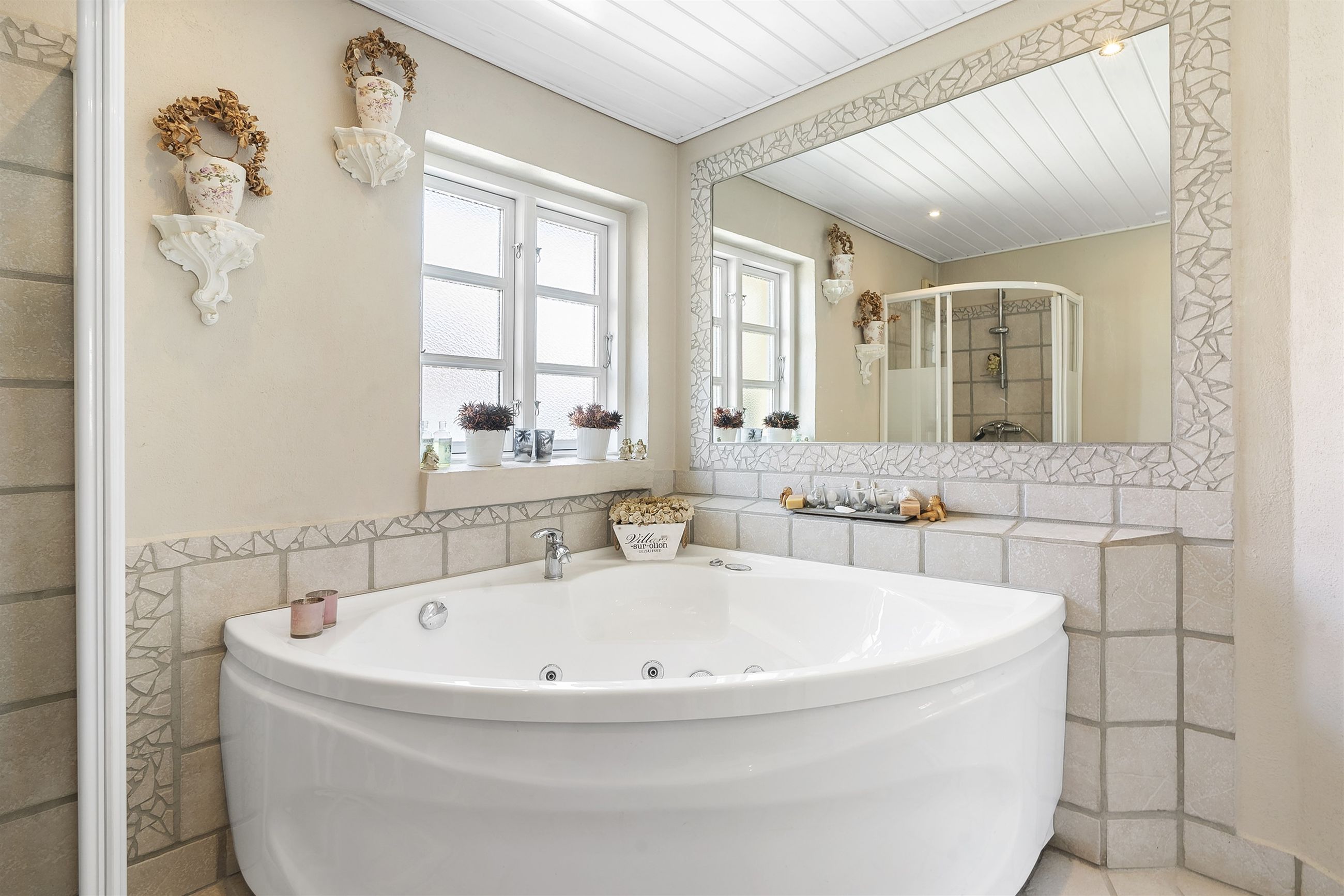 I denne bykendte murermestervilla med dets iøjnefaldende udtryk og placering, møder sjæl og charme i allerhøjeste grad rustik og moderne kvalitet. Huset har en lang historie og byggeåret er ukendt, men tingbogsført første gang i 1900. Første salen blev etableret i 1975. Huset er istandsat, men karakteristika fra det gamle hus er bibeholdt og står den dag i dag meget indbydende, med dets brune betontag, flotte gulpudsede facade, hvide sprossede vinduer (gulv-til-loft i både køkken-alrum og opholdsstue), adskillige Velux vinduer på første sal, brændeovn i både køkken-alrum og opholdsstue samt loft-til-kip og fritlæggende bjælker på første sal. Indeholder: Huset har en spændende planløsning i forskudt niveau og fordeler sig over hele 282 m2 under tag, idet 35 m2 udhus er integreret i huset. Huset byder på to skønne sociale rum, både det hyggelige køkken-alrum og den store opholdsstue, i det forskudte niveau.Her er plads til den store familie, med to soveværelser i stueplan og tre soveværelser på første sal. Herudover aktivitetsrum eller kontor på første sal. Flotte badeværelser, på både stueplan og første sal. Stueplan- Entré- Køkken-alrum med brændeovn- Opholdsstue med brændeovn- Badeværelse med spabad- 2 gode værelser - Bryggers - Disponibelt rum- Integreret udhus 1. sal- Repos- Aktivitetsrum- Badeværelse- 3 gode værelser 1. salen er med loft-til-kip og fritliggende spær. Udvendigt- Stor og indbydende have på en 929 m2 stor grund- Overdækket fliseterrasse Landsbyen Ledøje: Her får du glæde af fredfyldte omgivelser blandt søer, marker, gadekær og ikke mindst den områdekendte og særdeles populære 'Jordbærgården'. Der er sti langs marker direkte til Vestskoven og den gamle Vikinge landsby i Risby. Derudover er der cykelsti til Smørum, hvor du på ganske kort tid kommer direkte til Smørum Golfklub. Herudover Boesagerskolen, Smørum Centret, Smørum Idrætshal og bibliotek. Der er børnehave/vuggestue lokalt i Ledøje. Trods de landlige omgivelser, er der under 5 minutters kørsel til indkøb i Netto. Nogenlunde samme tid tager det, at tage den nyere vej (Smørum Parkvej) mellem Smørum og Ledøje, til Smørum Centeret eller Idrætsklubben. På omkring 10 minutters kørsel når du Ballerup Centeret og Ballerup Station. Der er ca. 25 minutters kørsel til indre København, via den nyere motorsvejstilkørsel mellem Ledøje og Smørum.