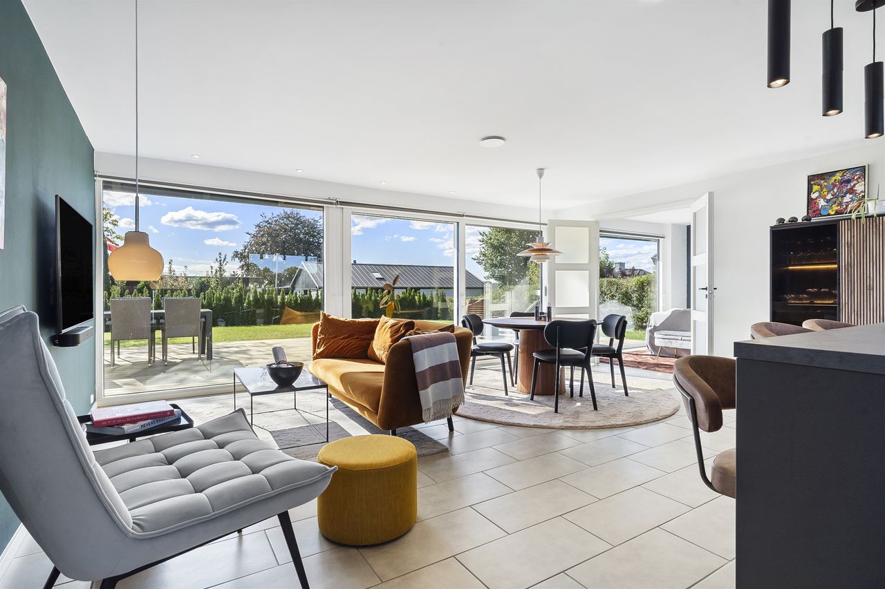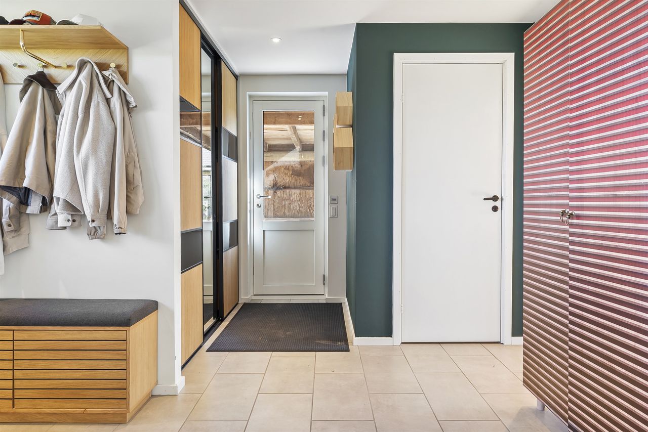 Velkommen til denne gennem istandsatte luksusvilla i Ledøje! Dette eksklusive hjem er beliggende med kig til marker og græssende heste. Når du træder ind i villaen, vil du straks blive mødt af en følelse af elegance, luksus og ikke mindst natur! De store vinduespartier giver et overvældende naturligt lys og en udsigt over det omkringliggende landskab.Her kombinerer vi altså de luksuriøse materialer, teknologi i topklasse, moderne design og en naturrig beliggenhed med udsigt! Hver eneste detalje er omhyggeligt udvalgt for at skabe en unik oplevelse af komfort, stil og udsigt. Alt sammen endda i en energivenlig ejendom med klassificering 'B', som opvarmes med luft-til-vand varmepumpe, via gulvvarme i hele boligen. Tillagt mekanisk ventilationsanlæg. Husets 118 m2 er istandsat fra top til tå, fra 2022 og frem til i dag. Grunden er på 802 idylliske kvadratmeter. Der er lavet følgende istandsættelser på ejendommen: - Gulvvarme i hele huset- Luft-til-vand varmepumpe- Ventilationsanlæg fra 2024- Nye lavenergivinduer og døre i hele huset (2022)- Nyt køkken fra 2022 - To nye badeværelser fra 2022- Nye gulve, vægge, lofter og indvendige døre i 2022- Nye elinstallationer i 2022- Ny fliseindkørsel i 2025- Ny træterrasse i 2025 Husets hjerte er opholdsstuen og det åbne køkken, som er udstyret med masser af skabs- og bordplads samt luksus hårde hvidevarer. I forbindelse med husets istandsættelse, er planløsning lavet helt forfra. Alle vægge er taget ned og etableret på ny og dermed har man kunne sikre sig en optimal udnyttelse af pladsen, hvilket har givet plads til følgende: - Åben entre med indbygget skab, hvor vaskefaciliteter er installeret- Badeværelse- To børneværelser i husets ene ende- Åbent køkken med køkken ø- Opholdsstue med gulv-til-loft vinduespartier mod syd- Forældreafdeling med walk-in closet og eget badeværelse med dobbelt bruser NB! Der er lavet følgende bemærkninger i tilstandsrapporten: Pkt. 1 vedr. tag (rød bemærkning). Pkt. 7 vedr. ydervægge (rød bemærkning). Pkt. 8 vedr. ydervægge (gul bemærkning). Pkt. 15 vedr. gulve (gul bemærkning). Landsbyen Ledøje: Her får du glæde af fredfyldte omgivelser blandt søer, marker, gadekær og ikke mindst den områdekendte og særdeles populære 'Jordbærgården'. Få hundrede meter væk, ligger stien, der langs åbne vidder og marker, bringer dig til Vestskoven og Vikingelandsbyen i Risby.Derudover er der cykelsti til Smørum, hvor der er skoler, Smørum centret, idrætsklub, golfklub og bibliotek. Der er børnehave og integreret vuggestue lokalt i Ledøje. Trods de landlige omgivelser, er der under 5 minutters kørsel til indkøb i Netto. Nogenlunde samme tid tager det, at tage den nyere tværvej til Smørum Centeret eller Idrætsklubben. På omkring 10 minutters kørsel når du Ballerup Centeret og Ballerup Station. Der er ca. 25 minutters kørsel til indre København, via den nyere motorsvejstilkørsel mellem Ledøje og Smørum.