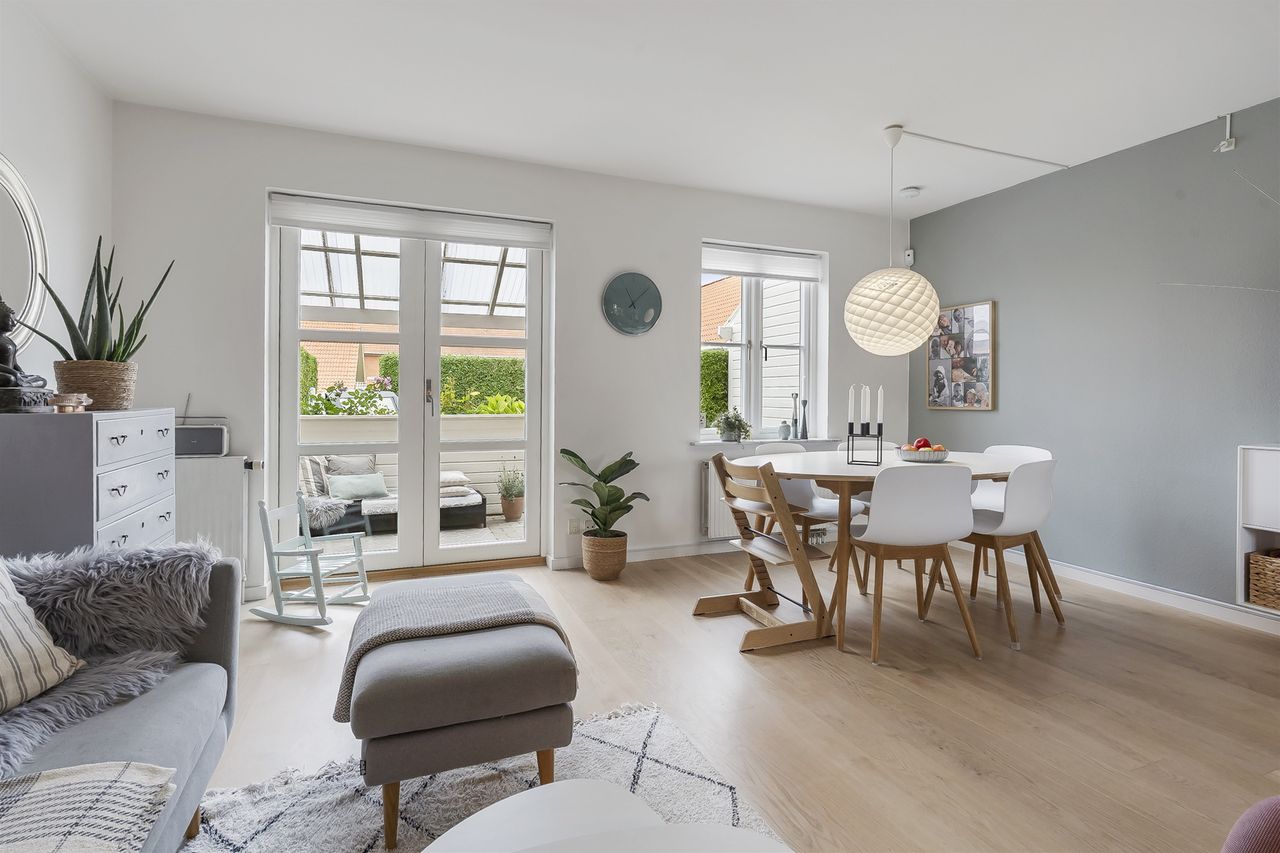 Moderniseret rækkehus i Nøddelunden - parkering på egen grund