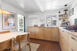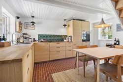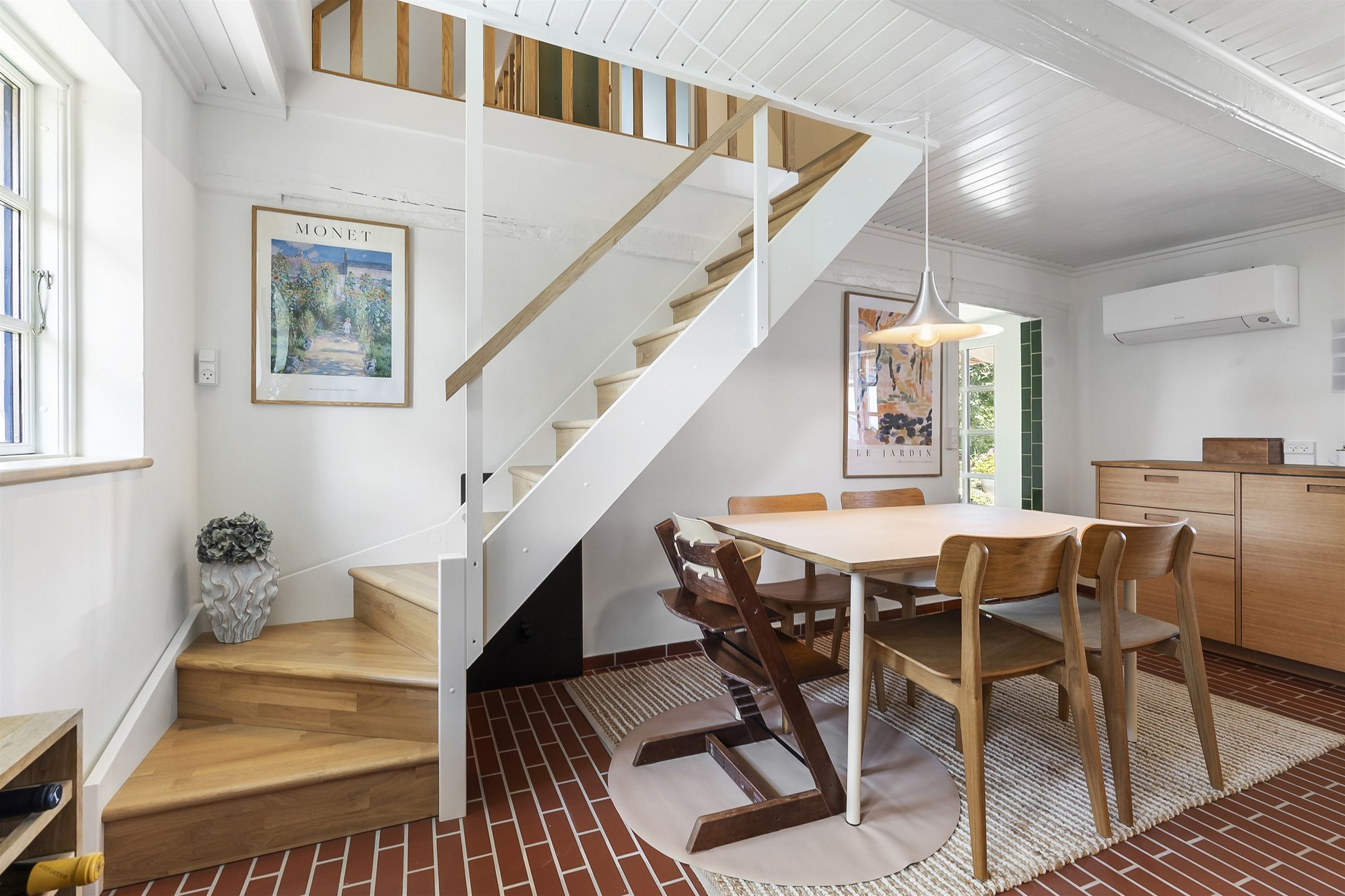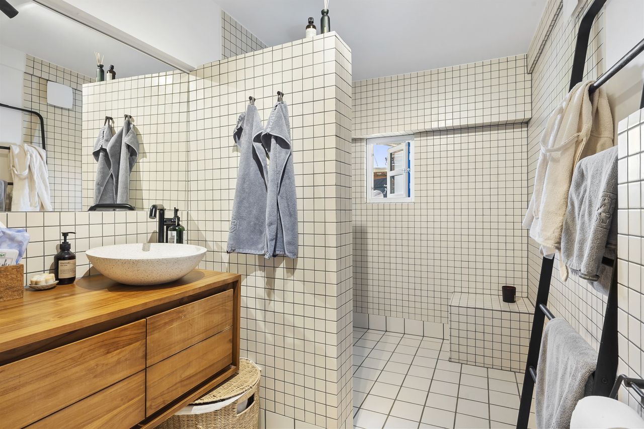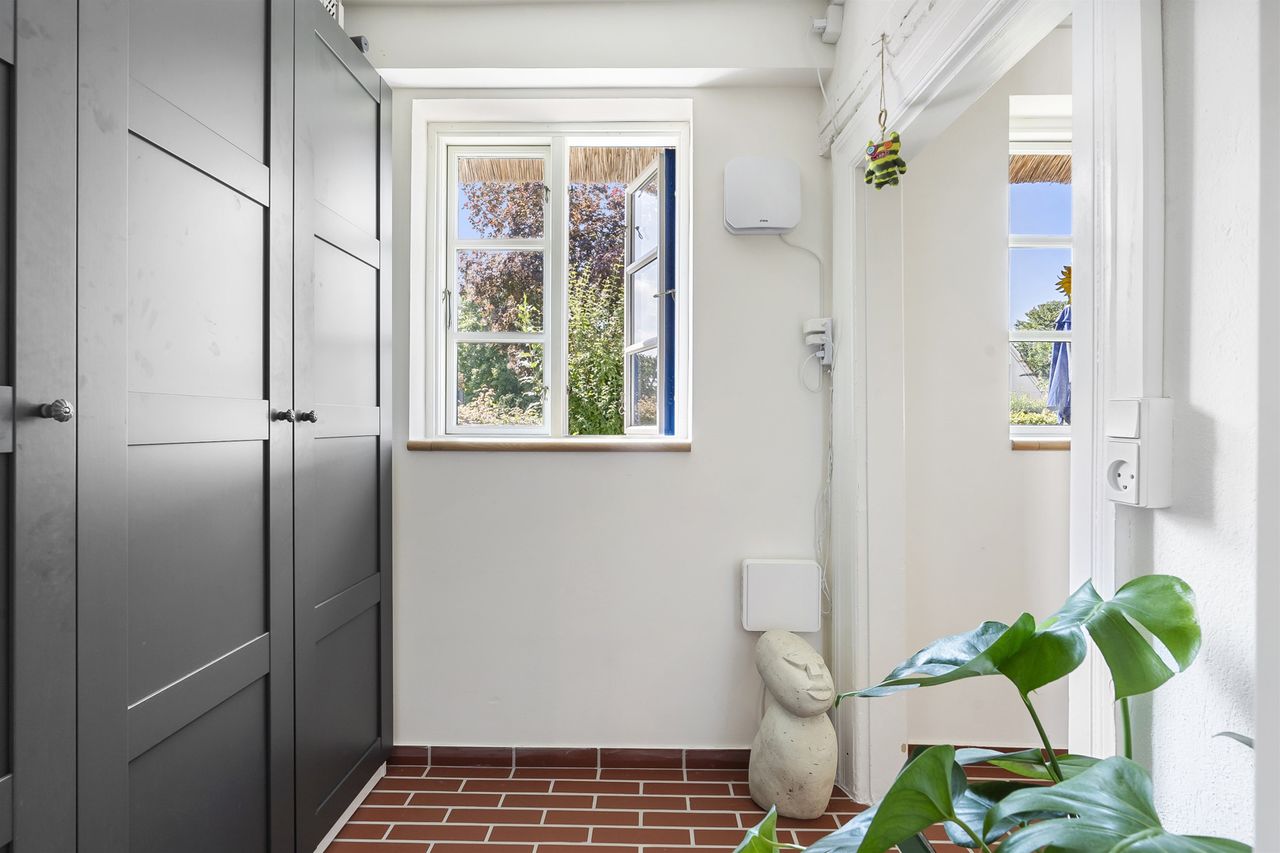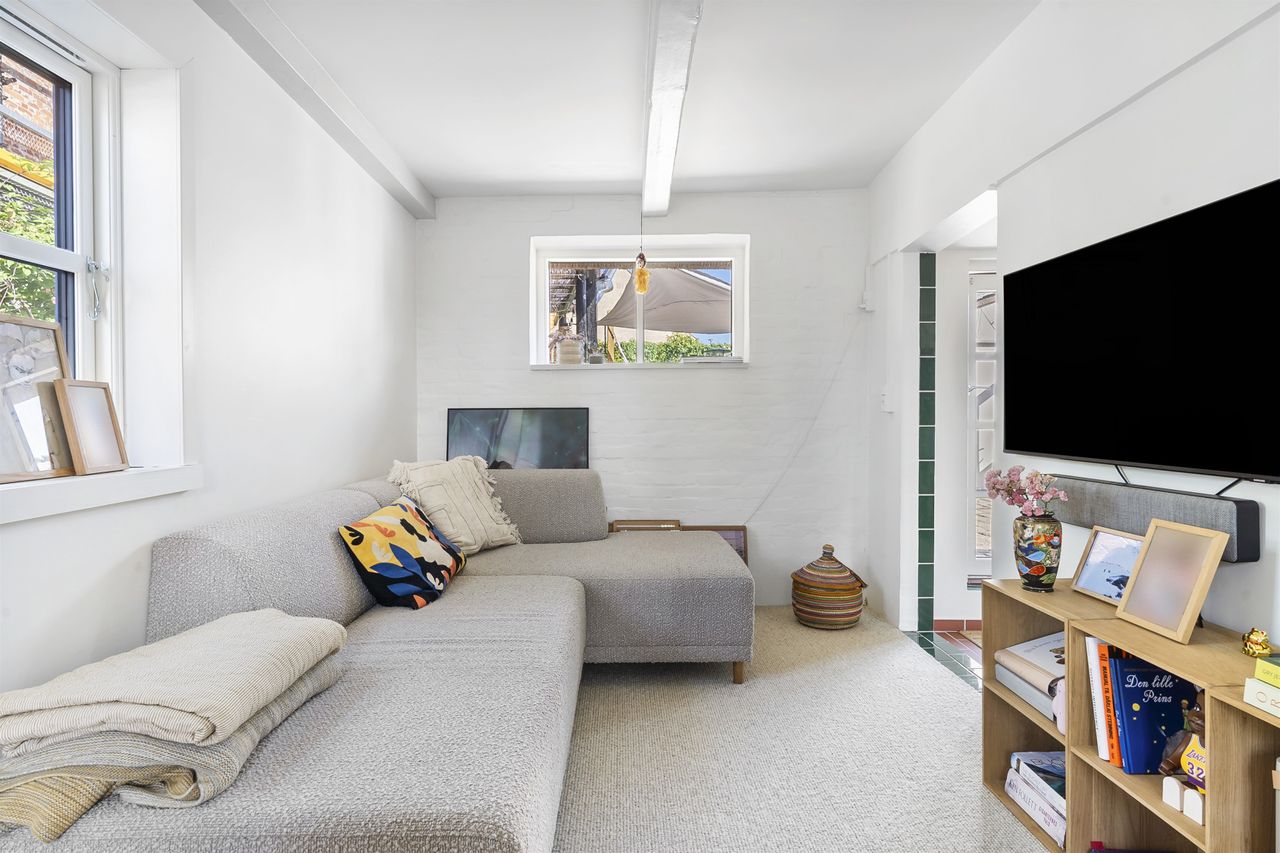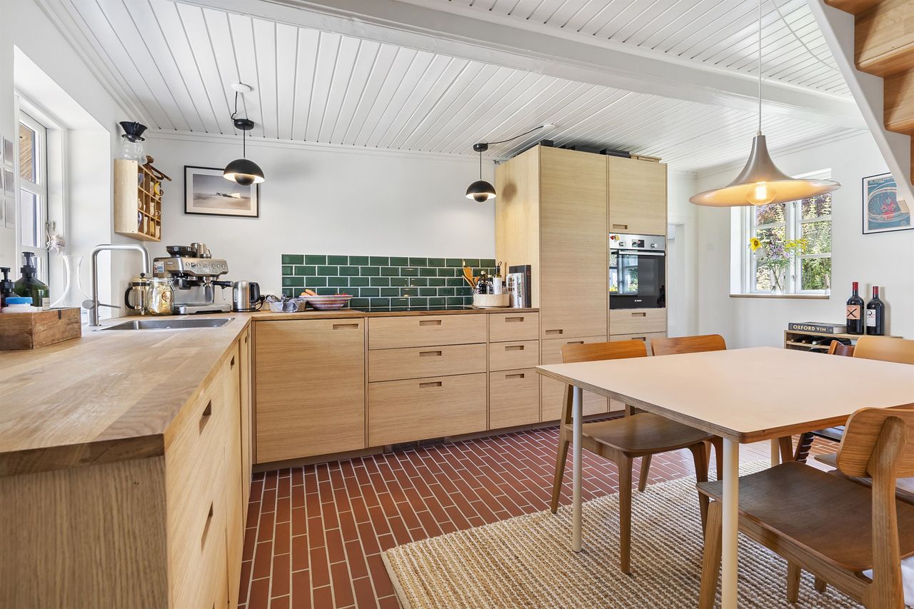 Inde i huset bliver du mødt af en atmosfære, hvor autentisk charme og topmoderne stil smelter sammen. Huset er gennemistandsat i 2024, med sans for både detaljerne i materialevalgene, men ligeså meget med fokus på effektiv udnyttelse af pladsen.