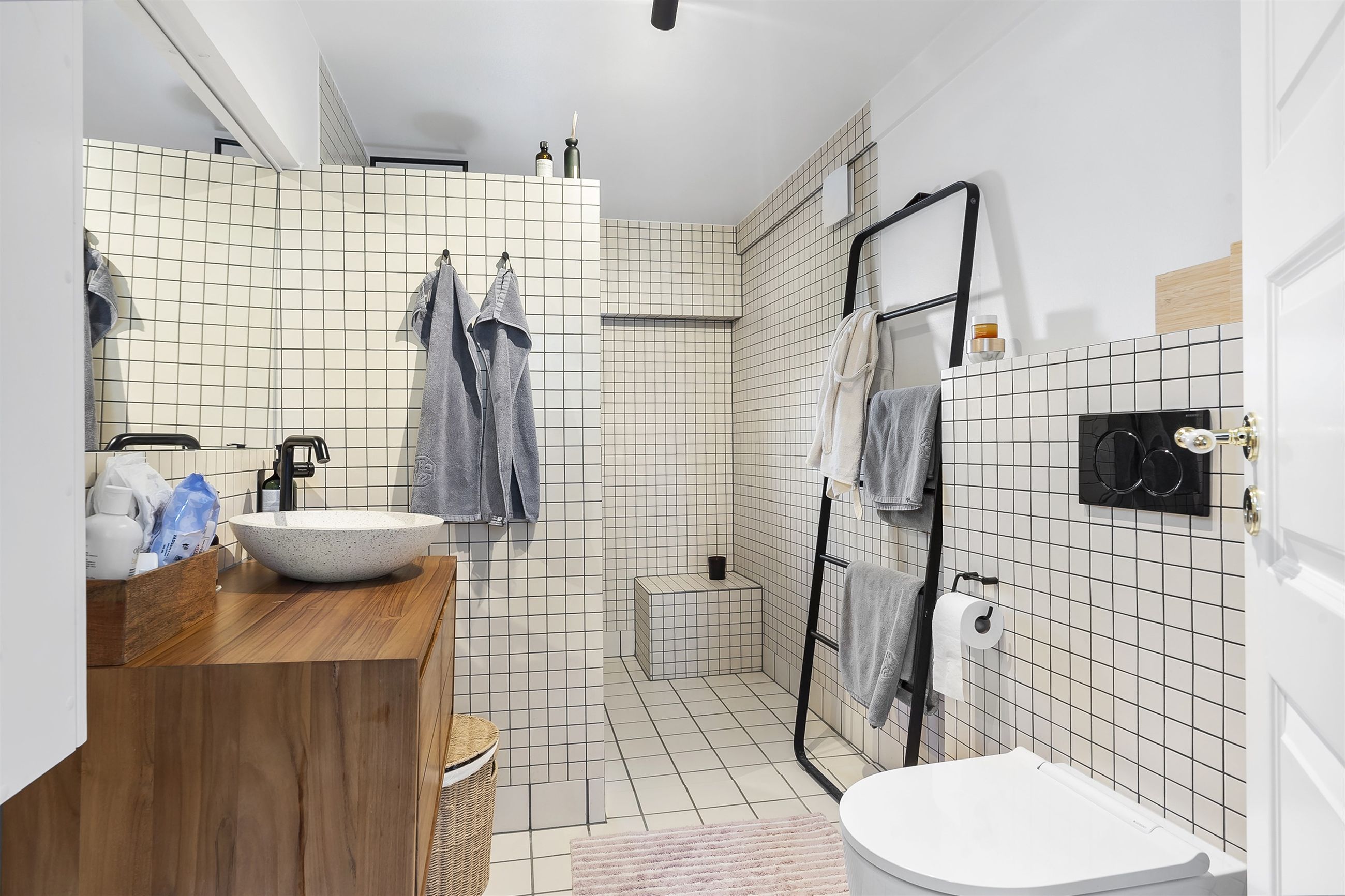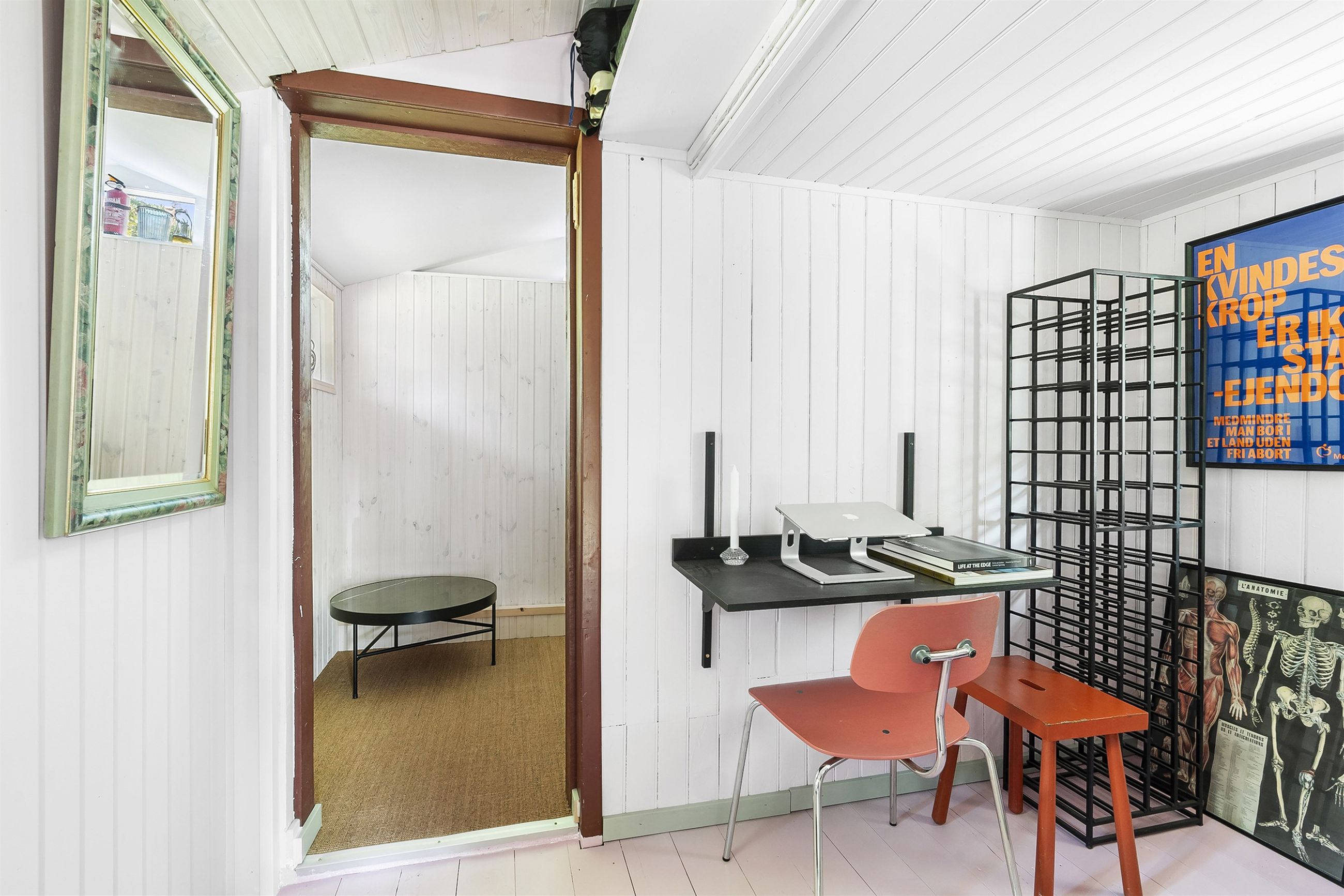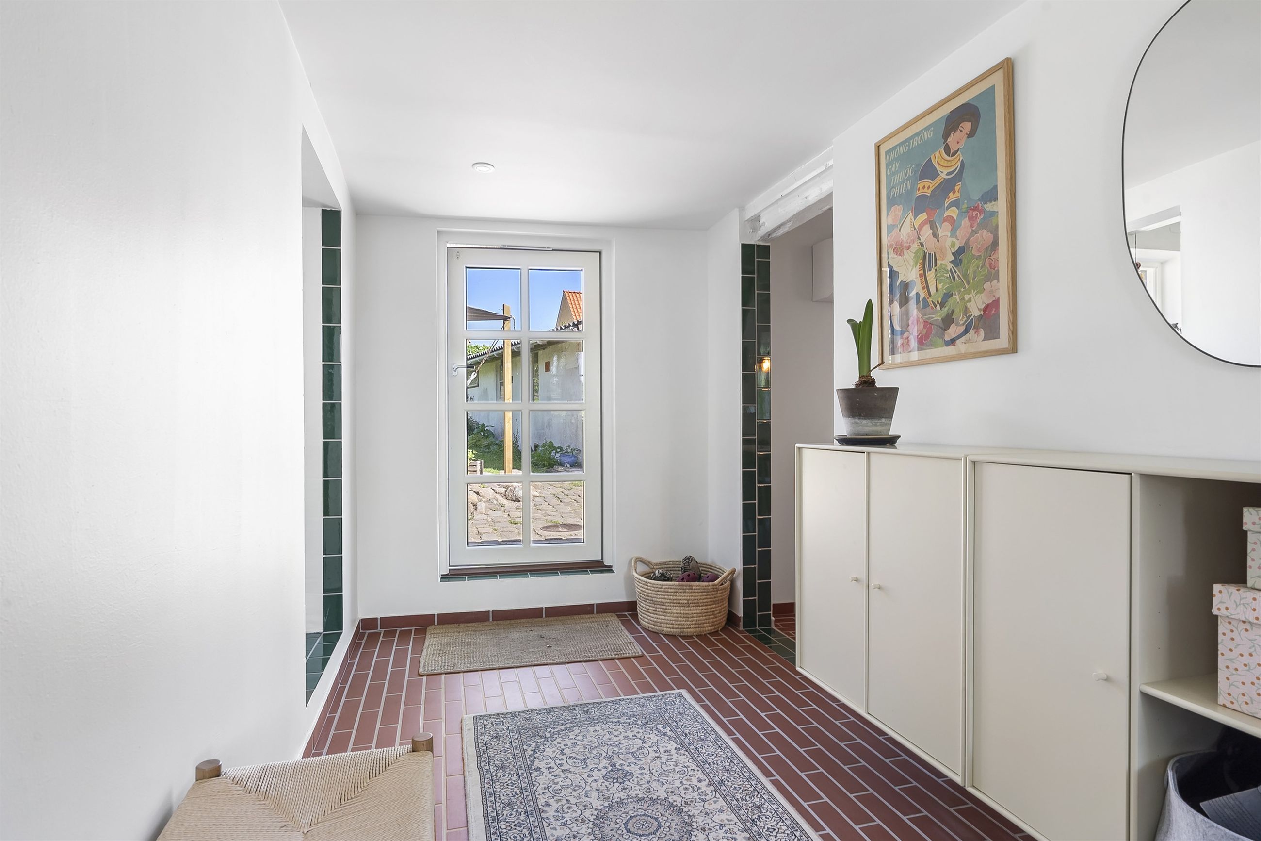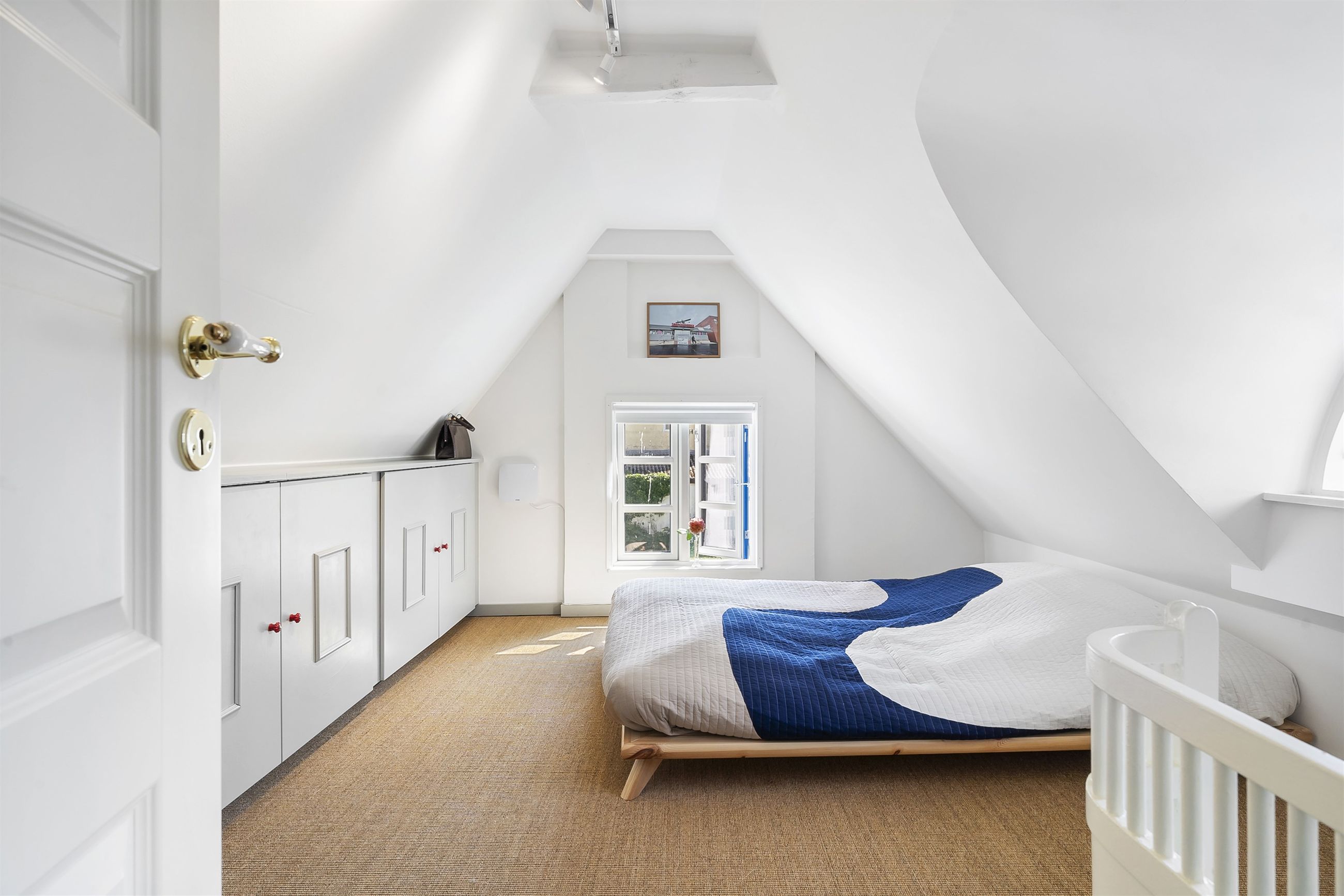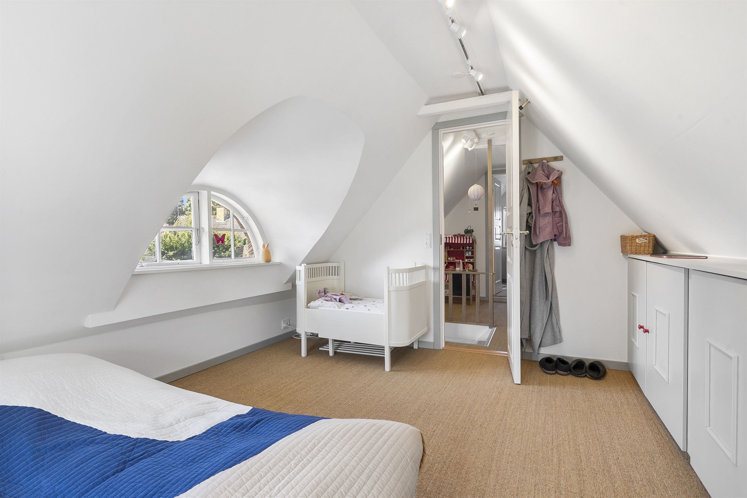 Inde i huset bliver du mødt af en atmosfære, hvor autentisk charme og topmoderne stil smelter sammen. Huset er gennemistandsat i 2024, med sans for både detaljerne i materialevalgene, men ligeså meget med fokus på effektiv udnyttelse af pladsen.