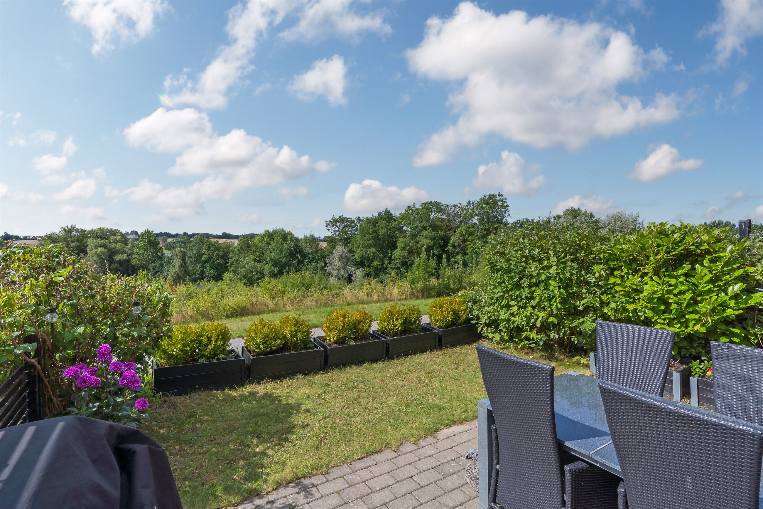 Haven består af en stor fliseterrasse samt mindre græsareal. Haven er placeret mod sydvest, således at solen kan nydes mere eller mindre hele dagen.